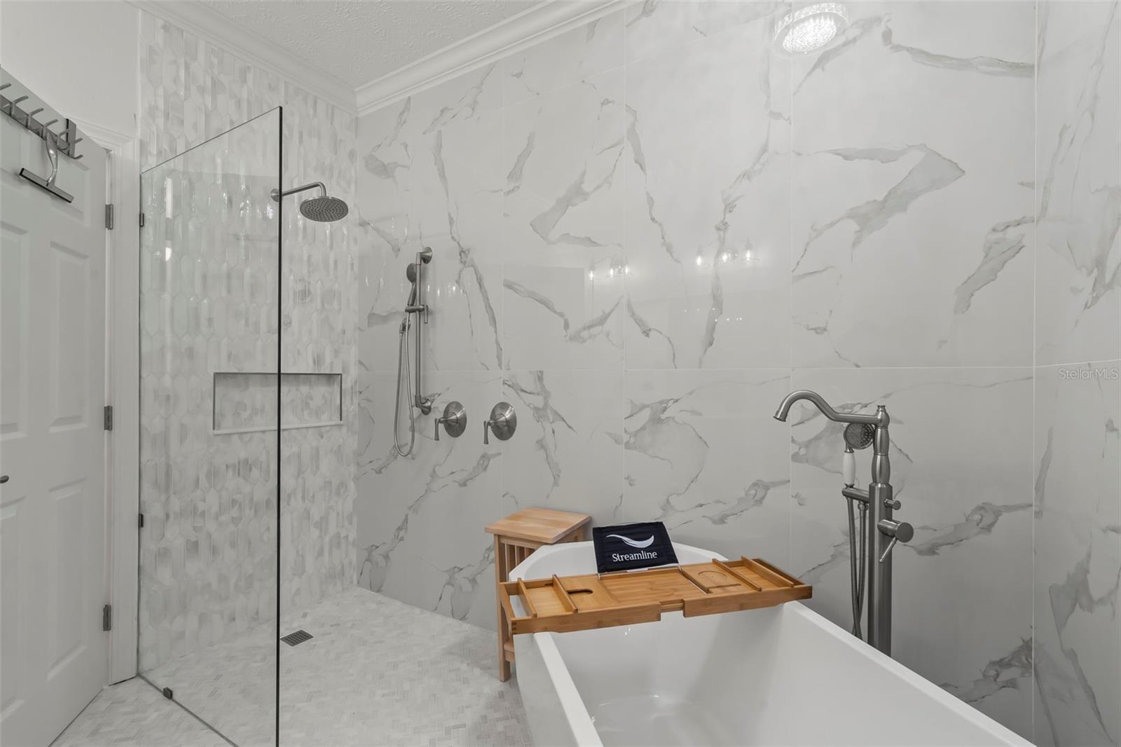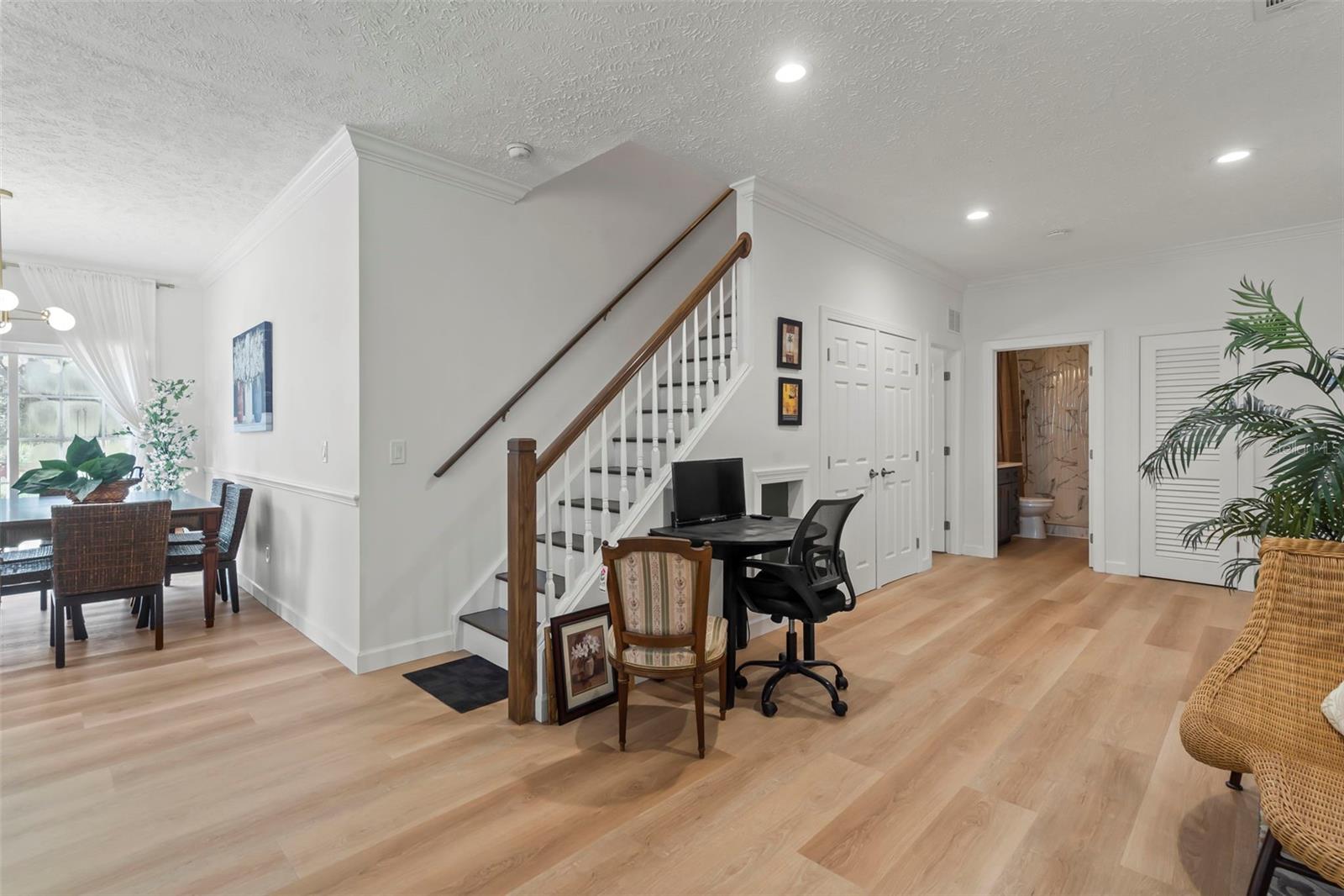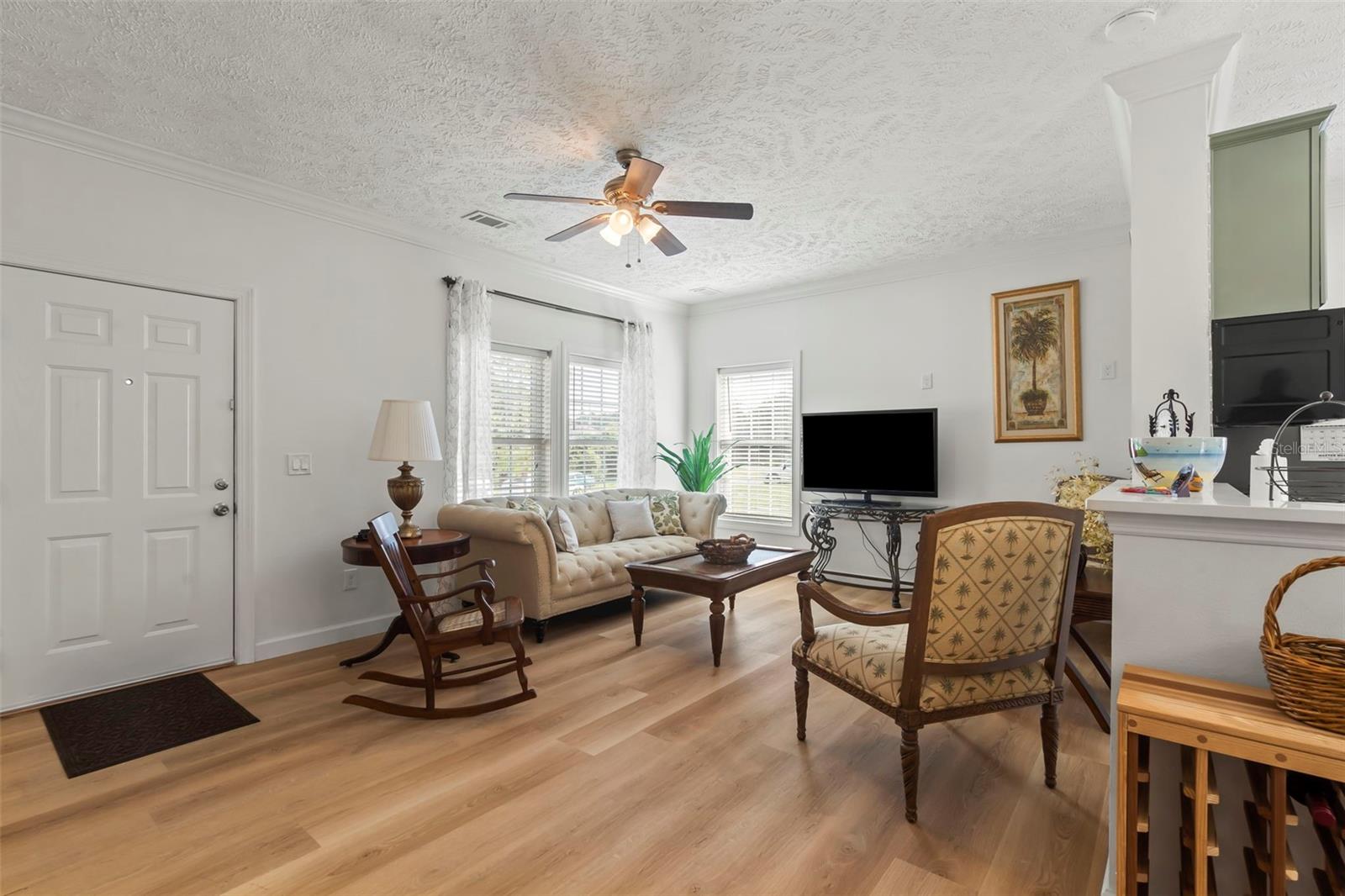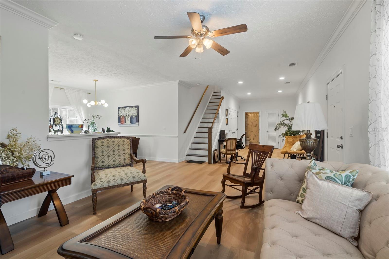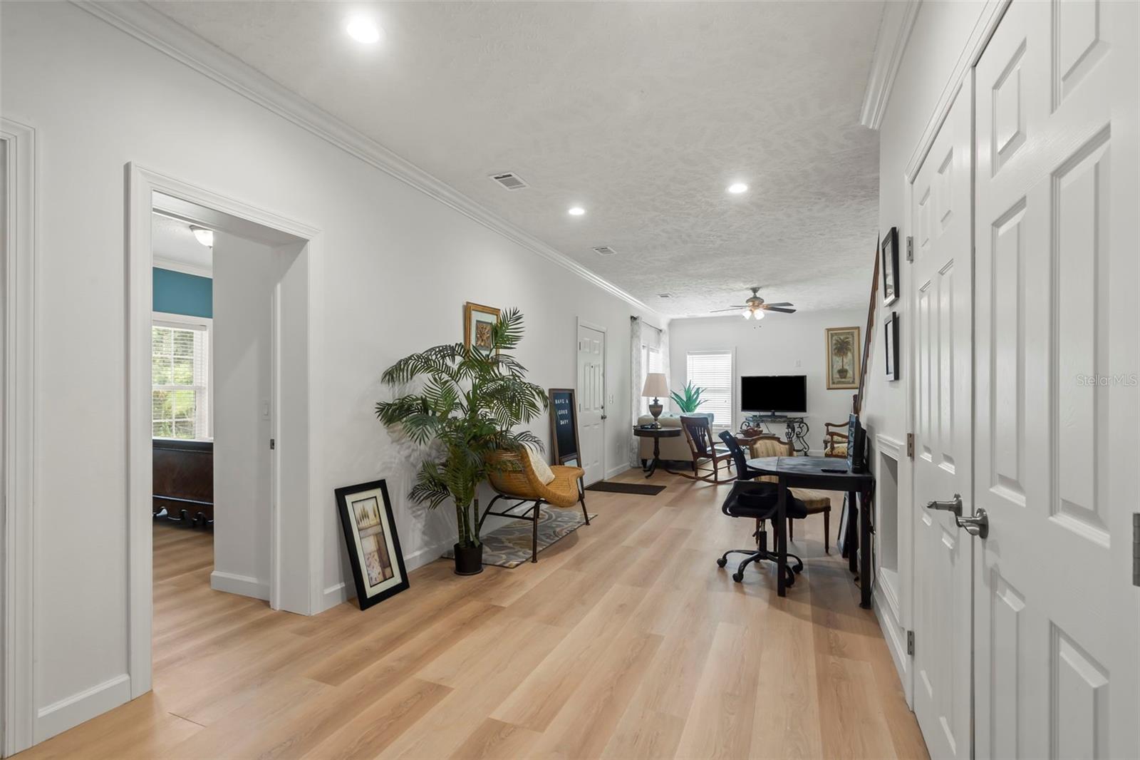 A COUNTRY HOME in North Port! See this beautiful and spacious home in a peaceful and quiet neighborhood in North Port. Enjoy biking and hiking trails with your pets - stroll along Myakkahatchee Creek and Oaks Park just around the corner! This home is all 1st Floor living with a spacious, bright and airy floor plan complete with a brand new Primary Suite, Luxurious Bathroom and two additional bedrooms with ample closet space. Entire home is freshly painted with new luxury vinyl plank flooring throughout. Prepare gourmet meals in the spacious designer kitchen ideal for preparing meals and entertaining. The kitchen features stainless steel appliances, upgraded quartz countertops, ample counter space, and a breakfast bar great for casual get-togethers. Let the pet in/out using the side door. The semi-open floor plan with 9ft ceilings and crown molding throughout seamlessly connects the kitchen and dining room but allows for separate gathering in the formal living room and great room creating a welcoming and inviting space for you and guests. You'll love the easy access to the deck with sliding doors from the kitchen and primary bedroom. Step outside to enjoy the expansive 12 x 24 deck ideal for that cookout, relaxing, sun tanning or relaxing in a Jacuzzi hot tub! The home has been thoughtfully upgraded including a new roof, water system, appliances, and designer tiled bathrooms. Take the beautifully refinished stairs up to the huge attic space where you can build a HOME THEATER or ADDITIONAL 1-2 BEDROOMS (rough plumbing located upstairs). The house is on a large lot. The long driveway and yard are big enough to store a boat! No street parking necessary there is room for at least six cars. PERFECT INVESTMENT PROPERTY - SNOW BIRDS. Convenient location - I75, Police, Fire and Post Office, Schools, Aquatic Center, Community Centers and Local Shopping! There is NO HOA or CDD!Home Video Available in "Video & Virtual Tour" field.