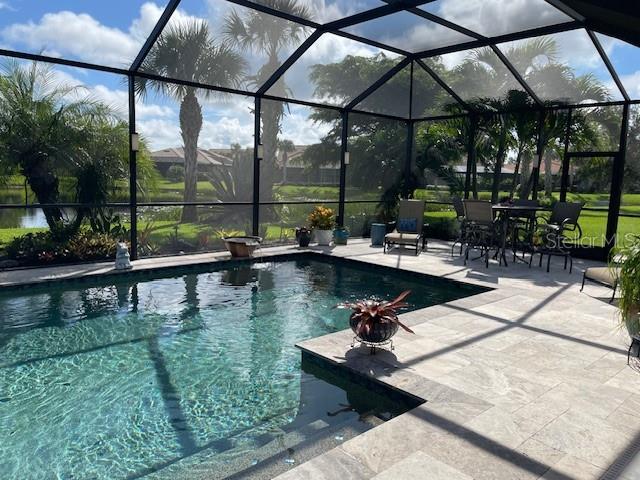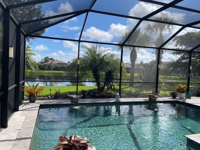 In every neighborhood there is a gem, welcome to 5872 Snowy Egret Dr, located in the highly sought-after gated community of Sandhill Preserve on Palmer Ranch. This light-filled, airy home is the perfect blend of modern style and cozy warmth. This popular Pinnacle floor plan with a zero-corner slider door boasts over 2500 sq. ft. with 3 bedrooms, 3 full baths, den and an open concept layout designed for easy living. The ultimate in hurricane protection features all impact windows, doors, and storm smart (electrically controlled) shades on the covered lanai. This stunning maintenance-free home sits on one of the premier lake view lots in the neighborhood, offering a peaceful water view and a desirable Northeast exposure. A custom salt water pool was installed 2020 with upgraded pool equipment including an AquaCal heat pump. In 2024, solar panels were installed to, alternatively, heat the pool water. New water heater was installed 2025. Upgraded tile placed on a diagonal in the main living area with vinyl wood flooring in all the bedrooms. Custom landscaping, irrigation, and lighting surround this home with an added Zen Garden adjacent to the pool. All windows feature 3" plantation shutters. Sandhill Preserve is known for its exceptional resort-style amenities. Residents enjoy a beautiful, newly renovated clubhouse, state-of-the-art fitness center, resort style heated/cooled pool, tennis and pickleball courts, fire pit lounge and a lively calendar of social events. The community is also guarded by a gate attendant for added peace of mind and convenience. The home is ideally situated just minutes from a new Publix and Costco, the world-famous beaches of Siesta Key. Nokomis and the vibrant night life of downtown Sarasota.