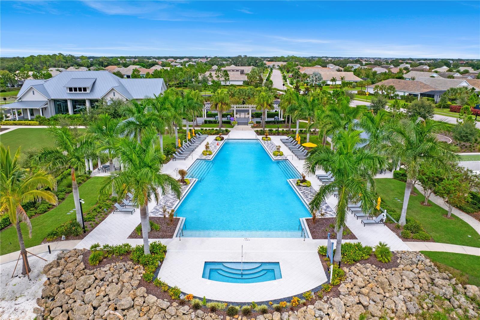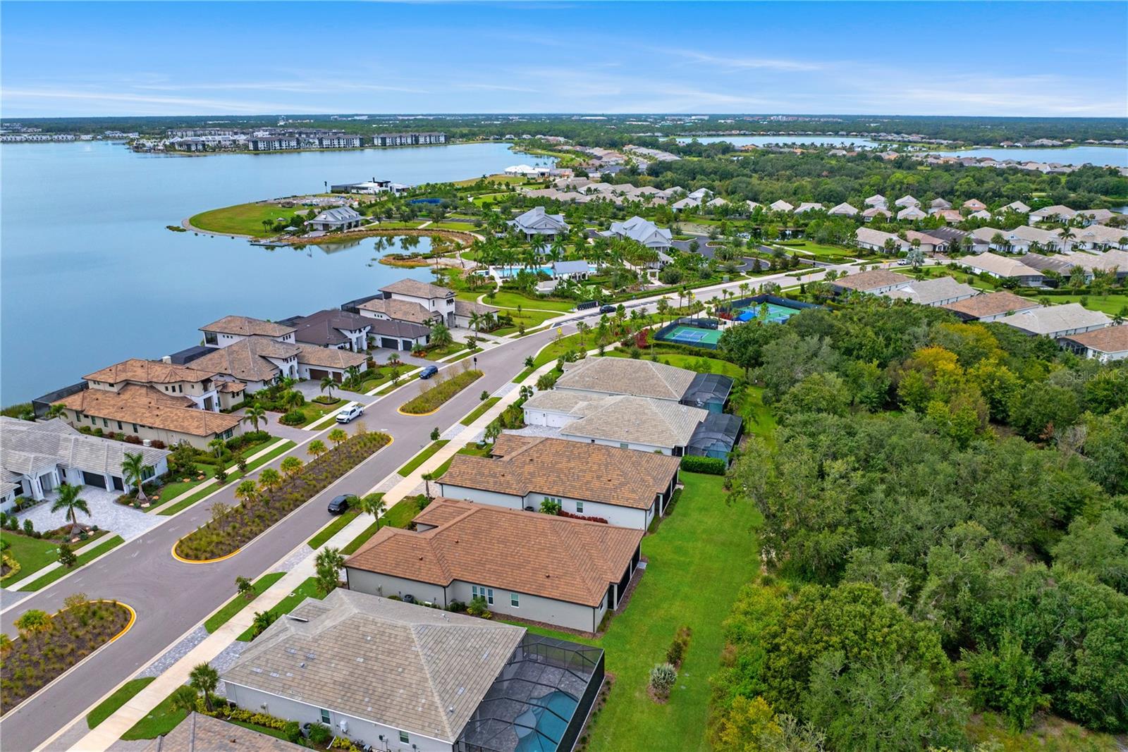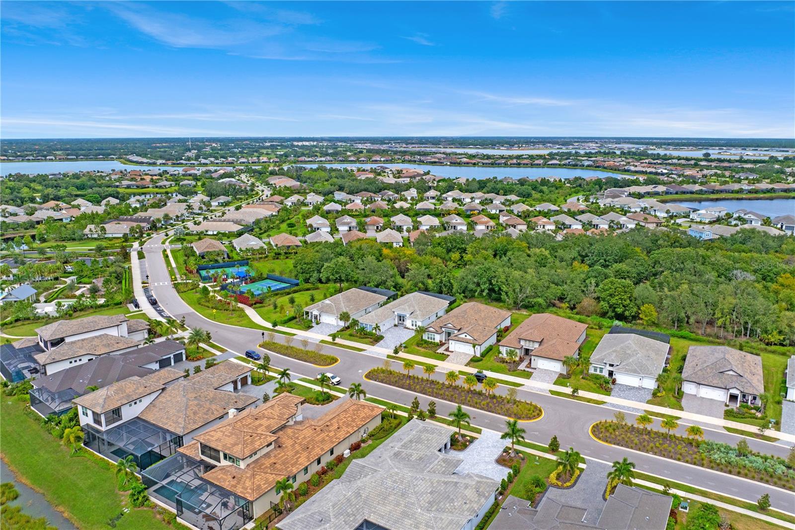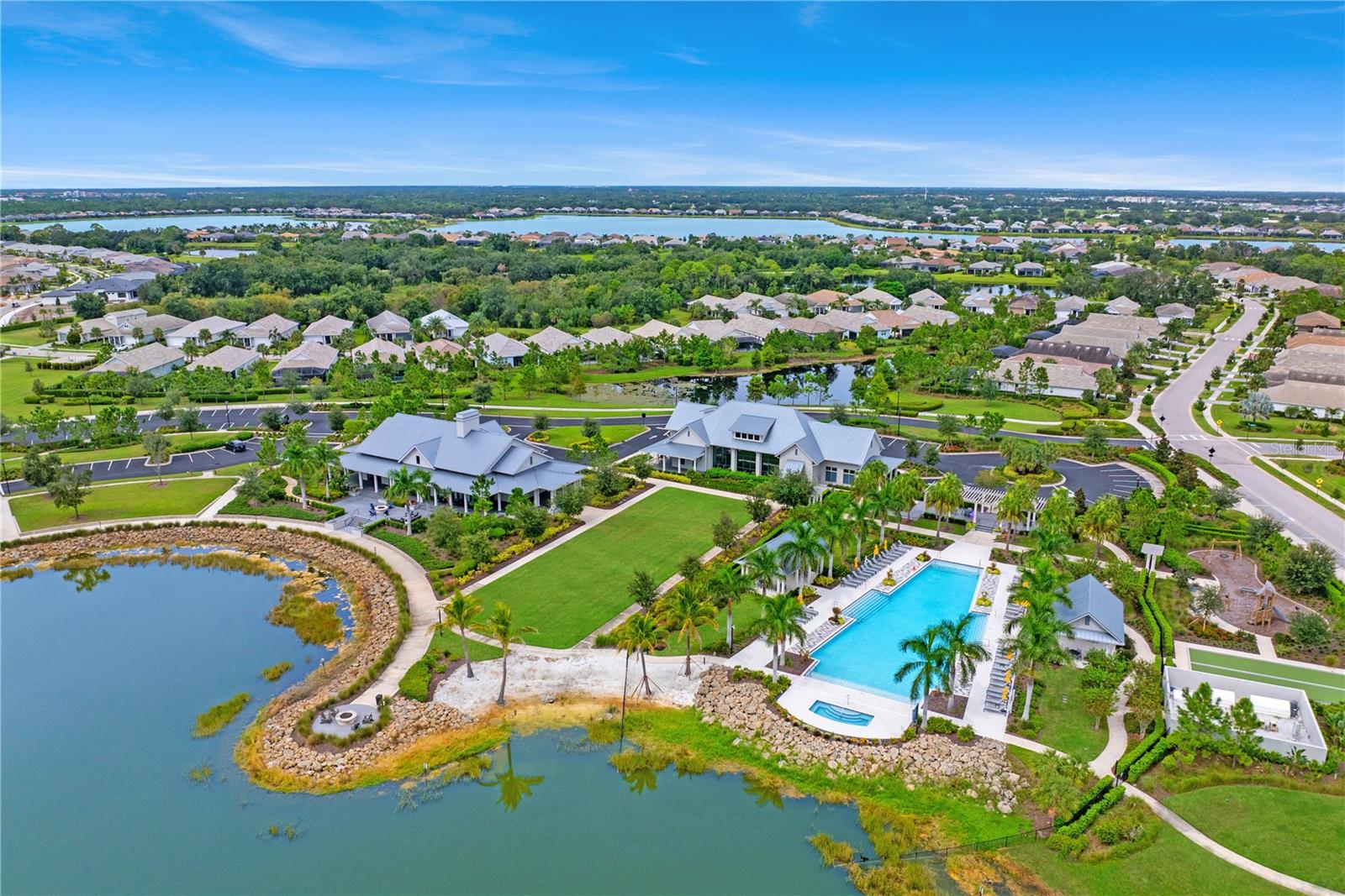 Welcome to this beautifully crafted Islander floorplan by Homes by Towne, located in the desirable LakeHouse Cove at Waterside Lakewood Ranch. Offering 2,667 square feet of thoughtfully designed living space, this home perfectly blends upscale features with a warm, livable feel.From the moment you arrive, the side-load three-car garage, stacked stone detail, West Indies elevation, and lush landscaping create an inviting first impression. Inside, you're greeted by 12- and 14-foot ceilings with elegant tray details, wood-look tile floors throughout, and a bright, open layout that's ideal for both daily living and entertaining.At the heart of the home is an oversized chef's kitchen featuring built-in Monogram appliances, a gas range, soft-close shaker cabinets with wood pullouts, and sleek quartz countertops. The kitchen flows effortlessly into the spacious dining area and great room, where a modern accent wall and built-in electric fireplace add a touch of style and warmth. Hurricane-impact sliders open to the lanai, making it easy to enjoy Florida's indoor-outdoor lifestyle.The owner's suite is a peaceful retreat, complete with a large walk-in closet and a spa-inspired bath featuring dual quartz vanities and a luxurious walk-in shower. Two guest suites, each with their own full bath and walk-in closet, provide plenty of comfort and privacy for family or visitors. A versatile study with French doors is perfect for a home office, den, or hobby space.Step outside to your own private oasis: a heated saltwater pool and spa overlooking a tranquil preserve. The outdoor kitchen--with a built-in gas grill, Le Griddle, beverage refrigerator, ice maker, and custom cabinetry--makes it easy to entertain or simply relax and unwind.Extra features include Hurricane Impact Windows, plantation shutters, a walk-in pantry with built-in shelving, a spacious laundry room with cabinetry and storage, and pre-wiring for a whole-house generator for added peace of mind.Living in LakeHouse Cove means enjoying incredible amenities right in the neighborhood, including a heated pool and spa, bocce and pickleball courts, dog parks, scenic walking trails, and a boathouse with water access for kayaking and fishing. The clubhouse and fitness center overlook the lake and feature a wraparound veranda with outdoor fire pits--perfect for gathering with friends or enjoying sunset views.Located just minutes from Waterside Place, residents can take a golf cart or water taxi to enjoy farmers markets, live music, dining, and shopping. Quick access to Center Point, UTC Mall, SRQ Airport, Mote Aquarium, and the area's beautiful Gulf Coast beaches ensures that everything you love about Lakewood Ranch living is close to home.This stunning property offers a rare combination of luxury finishes, smart design, and resort-style amenities--a place where every day feels like a vacation.