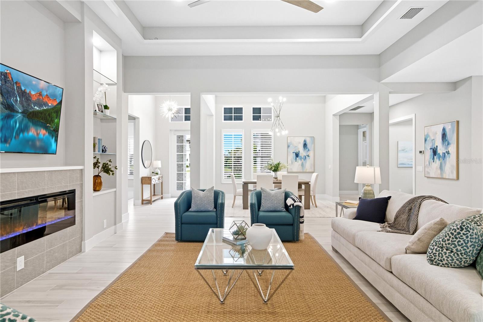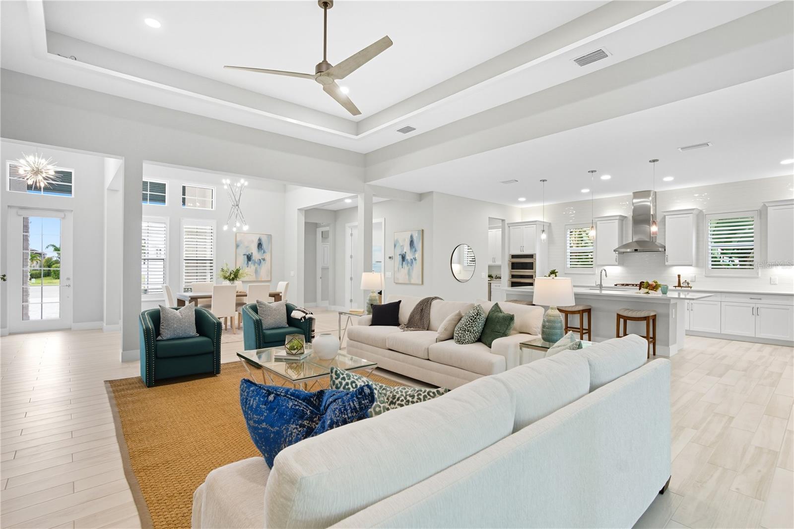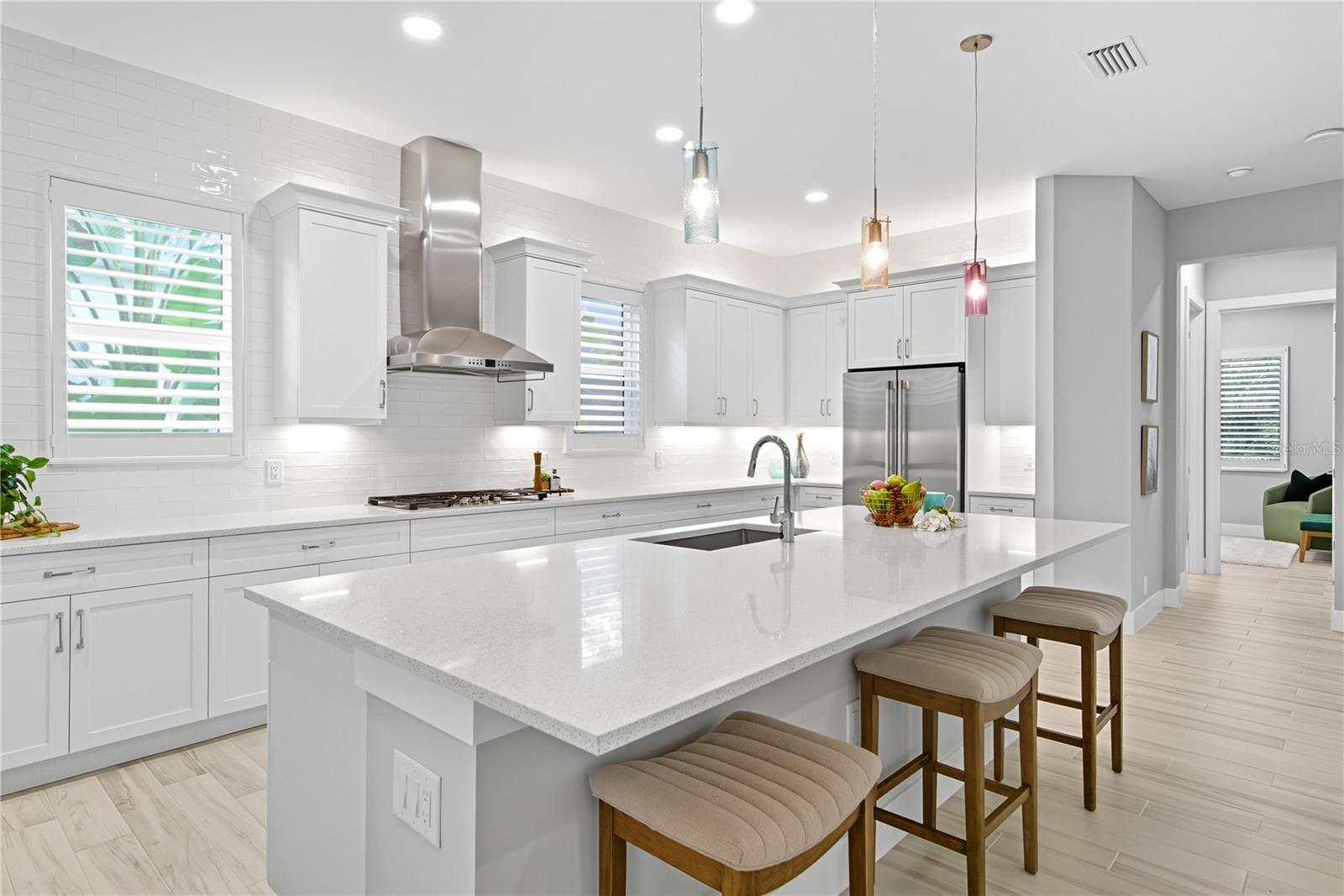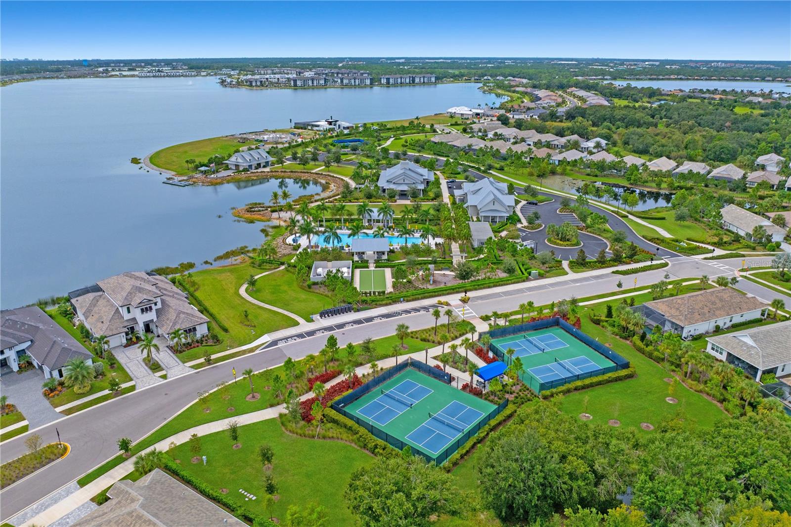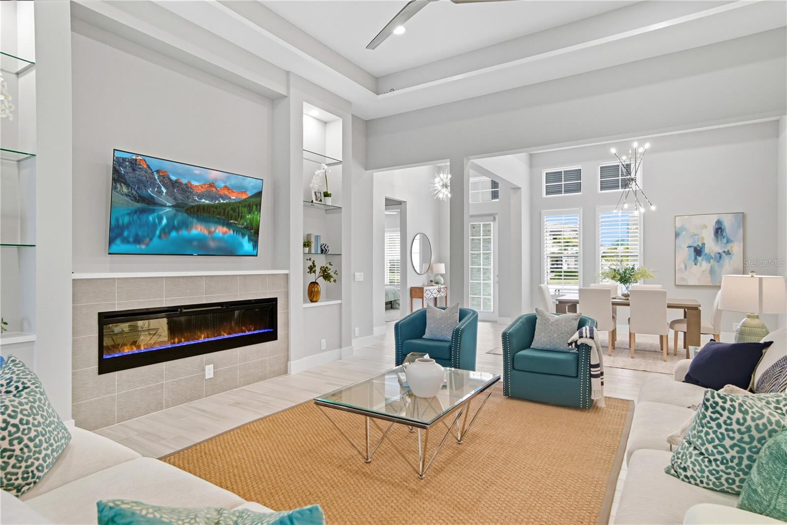 Welcome to this beautifully crafted Islander floorplan by Homes by Towne, located in the desirable LakeHouse Cove at Waterside Lakewood Ranch. Offering 2,667 square feet of thoughtfully designed living space, this home perfectly blends upscale features with a warm, livable feel.From the moment you arrive, the side-load three-car garage, stacked stone detail, West Indies elevation, and lush landscaping create an inviting first impression. Inside, you're greeted by 12- and 14-foot ceilings with elegant tray details, wood-look tile floors throughout, and a bright, open layout that's ideal for both daily living and entertaining.At the heart of the home is an oversized chef's kitchen featuring built-in Monogram appliances, a gas range, soft-close shaker cabinets with wood pullouts, and sleek quartz countertops. The kitchen flows effortlessly into the spacious dining area and great room, where a modern accent wall and built-in electric fireplace add a touch of style and warmth. Hurricane-impact sliders open to the lanai, making it easy to enjoy Florida's indoor-outdoor lifestyle.The owner's suite is a peaceful retreat, complete with a large walk-in closet and a spa-inspired bath featuring dual quartz vanities and a luxurious walk-in shower. Two guest suites, each with their own full bath and walk-in closet, provide plenty of comfort and privacy for family or visitors. A versatile study with French doors is perfect for a home office, den, or hobby space.Step outside to your own private oasis: a heated saltwater pool and spa overlooking a tranquil preserve. The outdoor kitchen--with a built-in gas grill, Le Griddle, beverage refrigerator, ice maker, and custom cabinetry--makes it easy to entertain or simply relax and unwind.Extra features include Hurricane Impact Windows, plantation shutters, a walk-in pantry with built-in shelving, a spacious laundry room with cabinetry and storage, and pre-wiring for a whole-house generator for added peace of mind.Living in LakeHouse Cove means enjoying incredible amenities right in the neighborhood, including a heated pool and spa, bocce and pickleball courts, dog parks, scenic walking trails, and a boathouse with water access for kayaking and fishing. The clubhouse and fitness center overlook the lake and feature a wraparound veranda with outdoor fire pits--perfect for gathering with friends or enjoying sunset views.Located just minutes from Waterside Place, residents can take a golf cart or water taxi to enjoy farmers markets, live music, dining, and shopping. Quick access to Center Point, UTC Mall, SRQ Airport, Mote Aquarium, and the area's beautiful Gulf Coast beaches ensures that everything you love about Lakewood Ranch living is close to home.This stunning property offers a rare combination of luxury finishes, smart design, and resort-style amenities--a place where every day feels like a vacation.