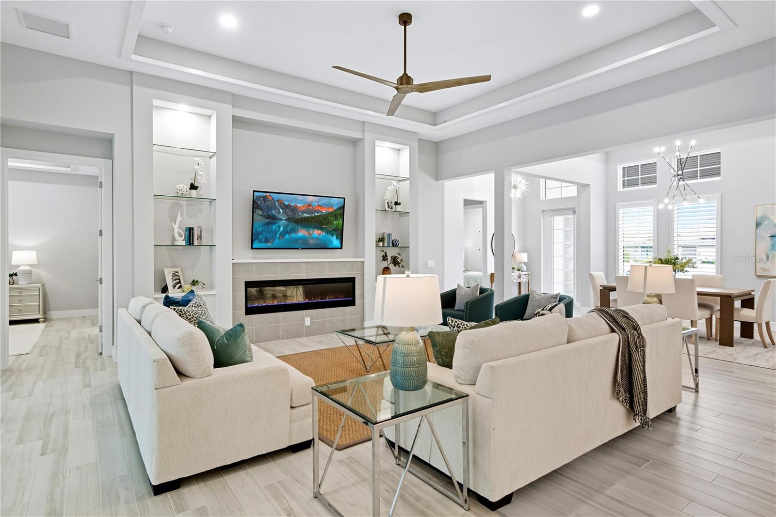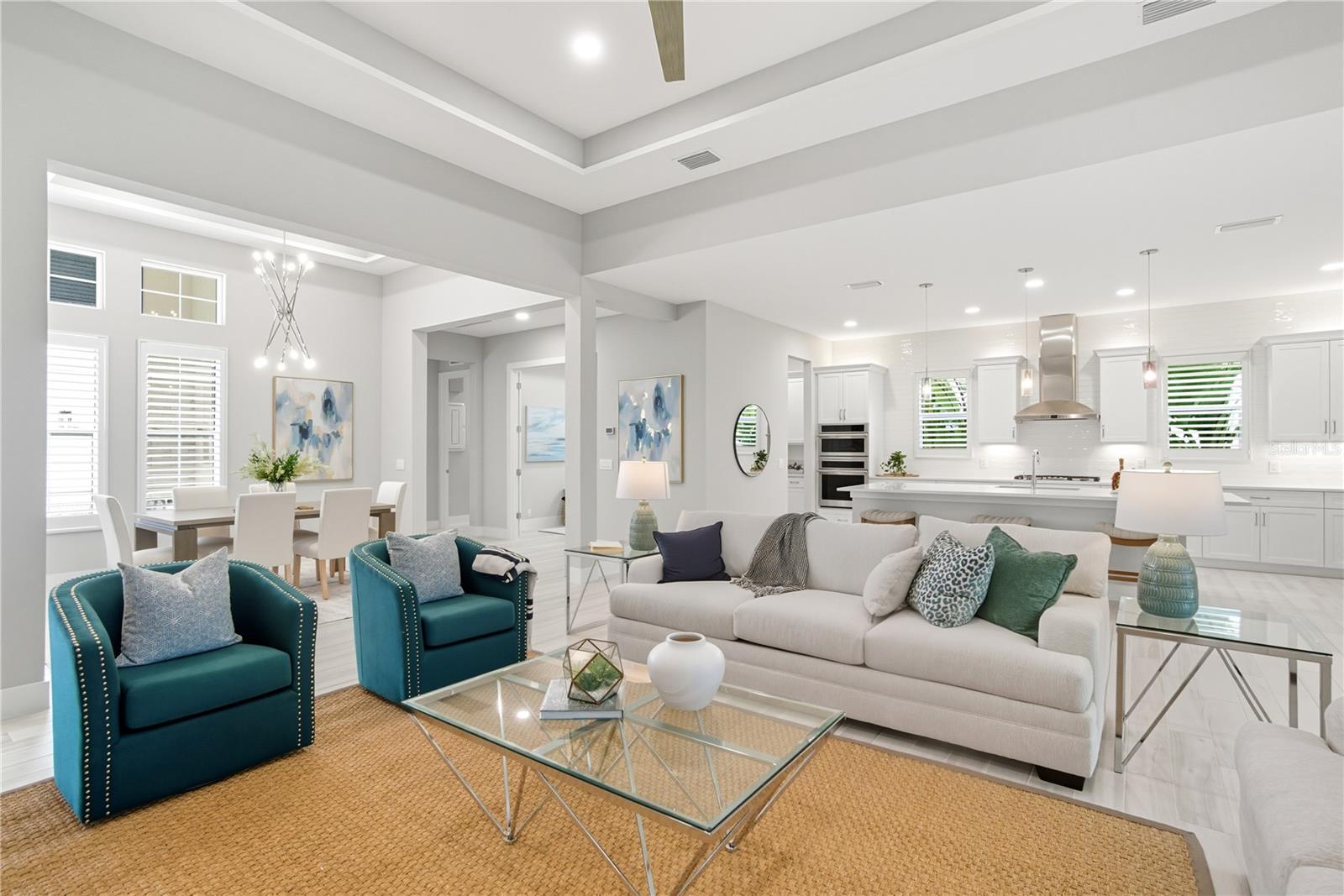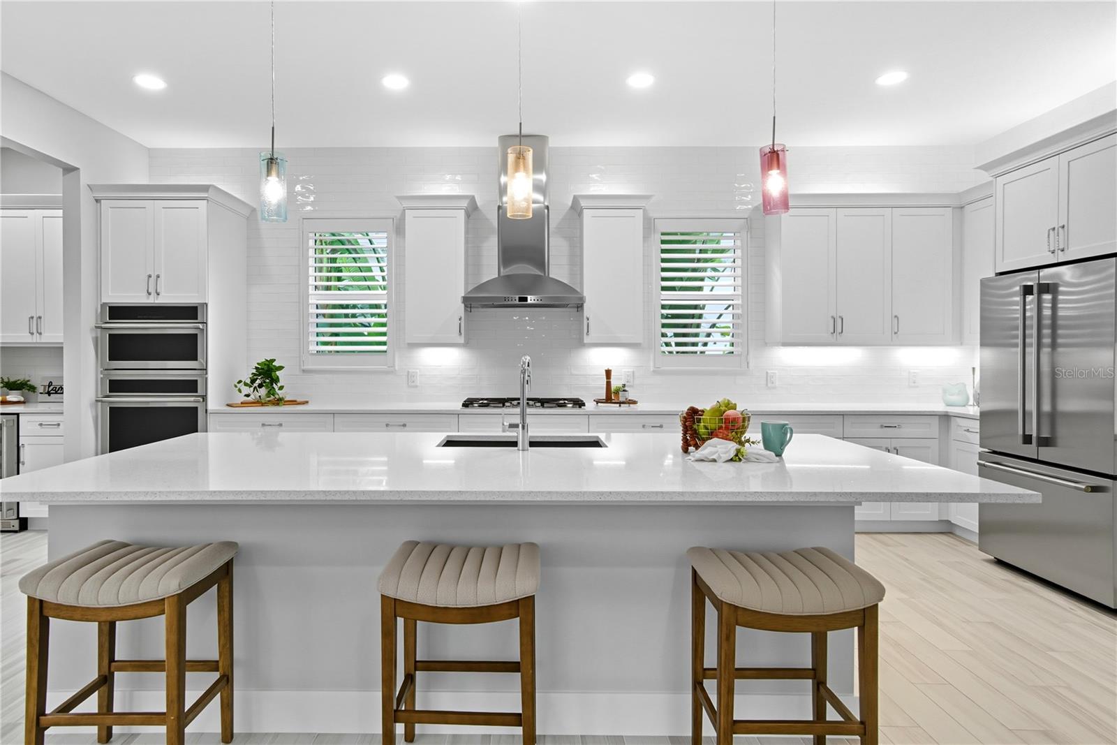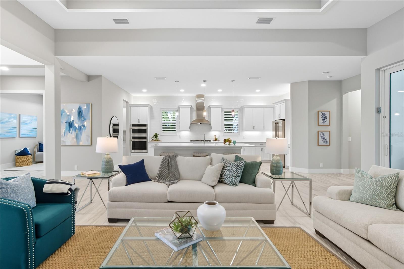 Welcome to this beautifully crafted Islander floorplan by Homes by Towne, located in the desirable LakeHouse Cove at Waterside Lakewood Ranch. Offering 2,667 square feet of thoughtfully designed living space, this home perfectly blends upscale features with a warm, livable feel.From the moment you arrive, the side-load three-car garage, stacked stone detail, West Indies elevation, and lush landscaping create an inviting first impression. Inside, you're greeted by 12- and 14-foot ceilings with elegant tray details, wood-look tile floors throughout, and a bright, open layout that's ideal for both daily living and entertaining.At the heart of the home is an oversized chef's kitchen featuring built-in Monogram appliances, a gas range, soft-close shaker cabinets with wood pullouts, and sleek quartz countertops. The kitchen flows effortlessly into the spacious dining area and great room, where a modern accent wall and built-in electric fireplace add a touch of style and warmth. Hurricane-impact sliders open to the lanai, making it easy to enjoy Florida's indoor-outdoor lifestyle.The owner's suite is a peaceful retreat, complete with a large walk-in closet and a spa-inspired bath featuring dual quartz vanities and a luxurious walk-in shower. Two guest suites, each with their own full bath and walk-in closet, provide plenty of comfort and privacy for family or visitors. A versatile study with French doors is perfect for a home office, den, or hobby space.Step outside to your own private oasis: a heated saltwater pool and spa overlooking a tranquil preserve. The outdoor kitchen--with a built-in gas grill, Le Griddle, beverage refrigerator, ice maker, and custom cabinetry--makes it easy to entertain or simply relax and unwind.Extra features include Hurricane Impact Windows, plantation shutters, a walk-in pantry with built-in shelving, a spacious laundry room with cabinetry and storage, and pre-wiring for a whole-house generator for added peace of mind.Living in LakeHouse Cove means enjoying incredible amenities right in the neighborhood, including a heated pool and spa, bocce and pickleball courts, dog parks, scenic walking trails, and a boathouse with water access for kayaking and fishing. The clubhouse and fitness center overlook the lake and feature a wraparound veranda with outdoor fire pits--perfect for gathering with friends or enjoying sunset views.Located just minutes from Waterside Place, residents can take a golf cart or water taxi to enjoy farmers markets, live music, dining, and shopping. Quick access to Center Point, UTC Mall, SRQ Airport, Mote Aquarium, and the area's beautiful Gulf Coast beaches ensures that everything you love about Lakewood Ranch living is close to home.This stunning property offers a rare combination of luxury finishes, smart design, and resort-style amenities--a place where every day feels like a vacation.