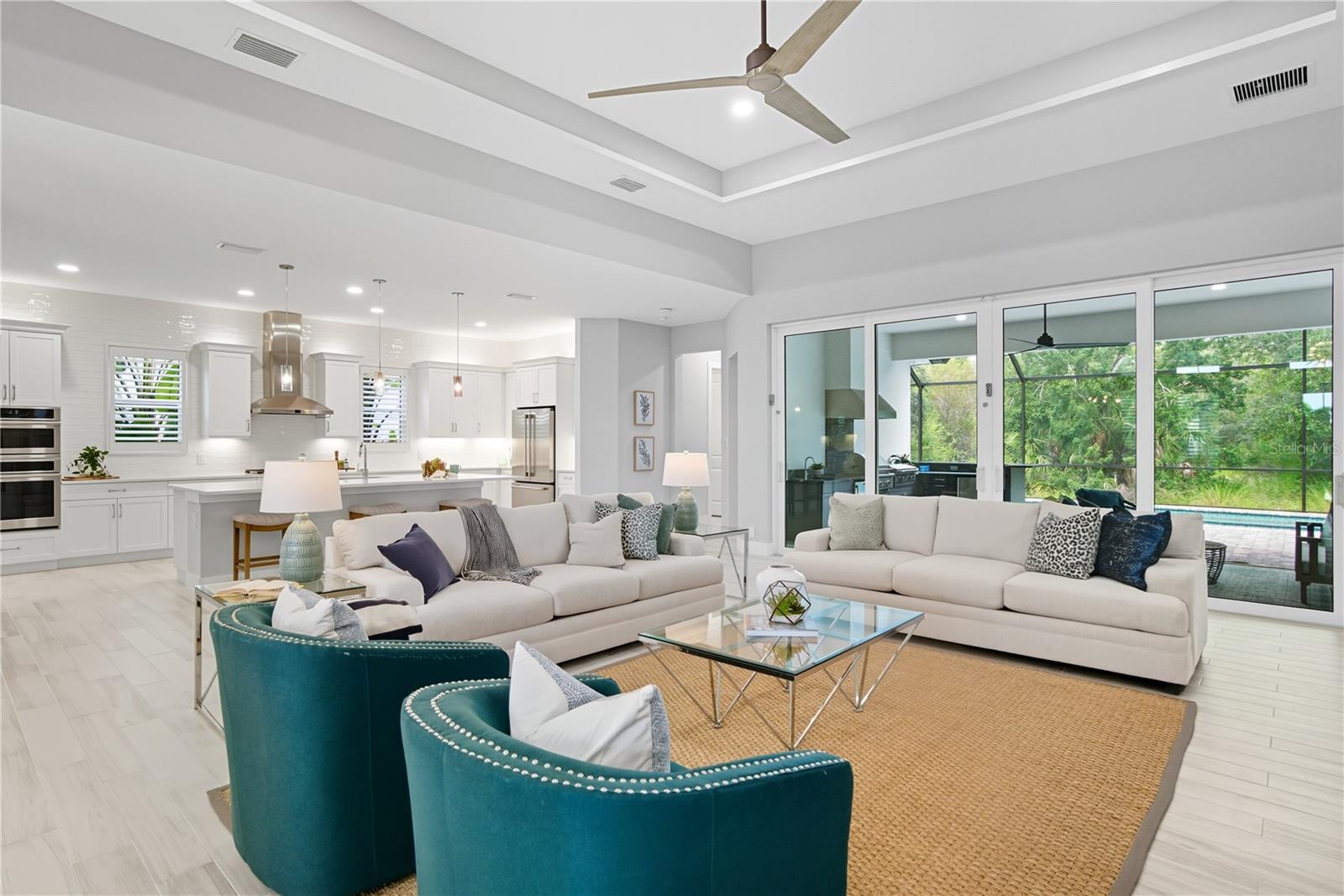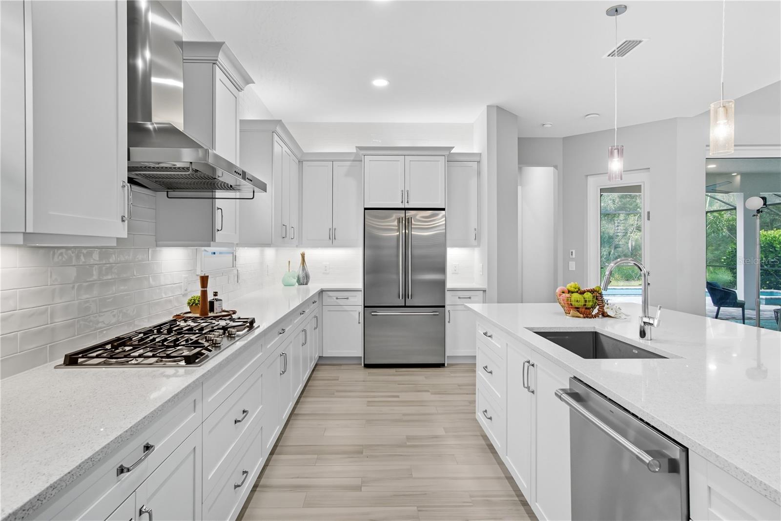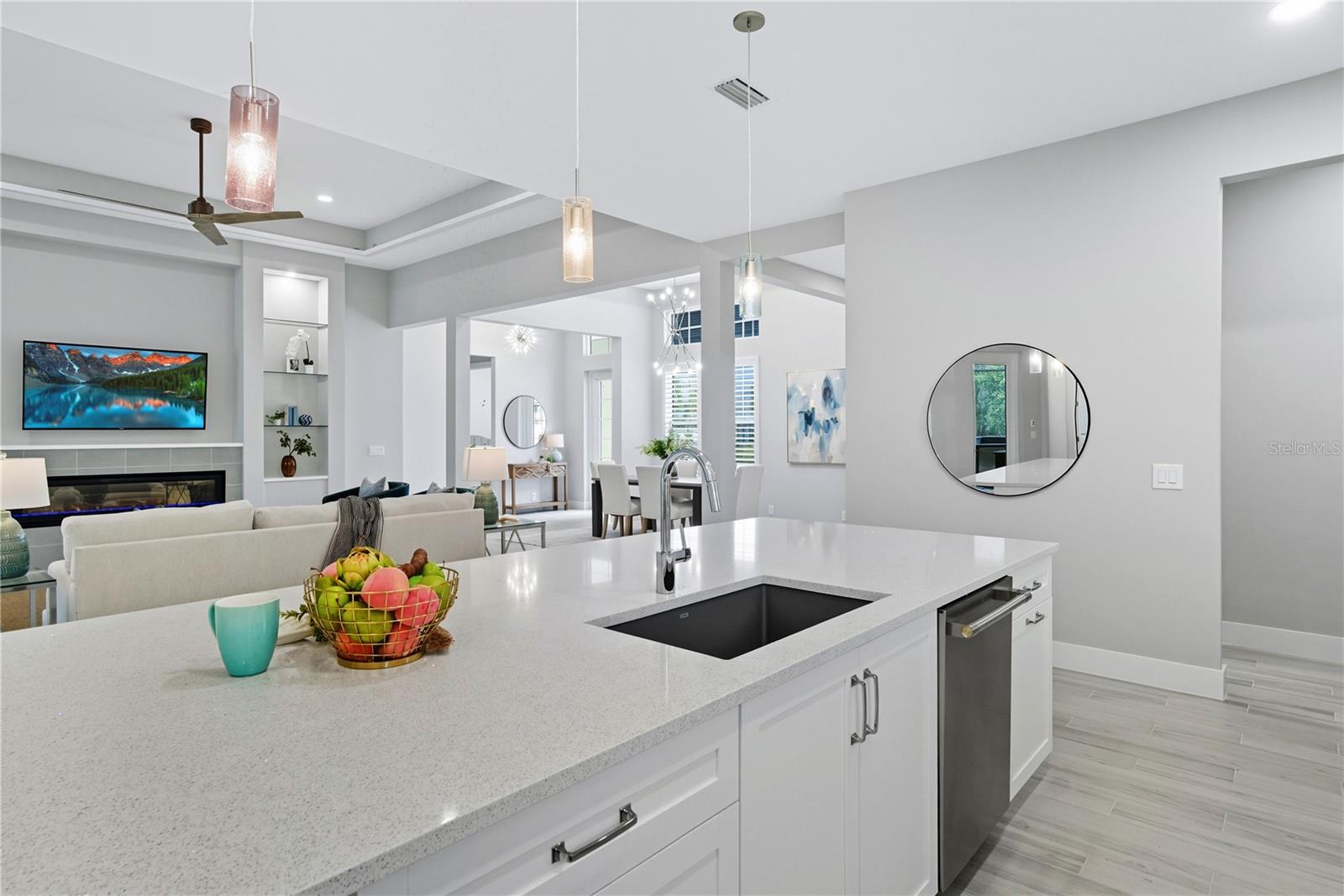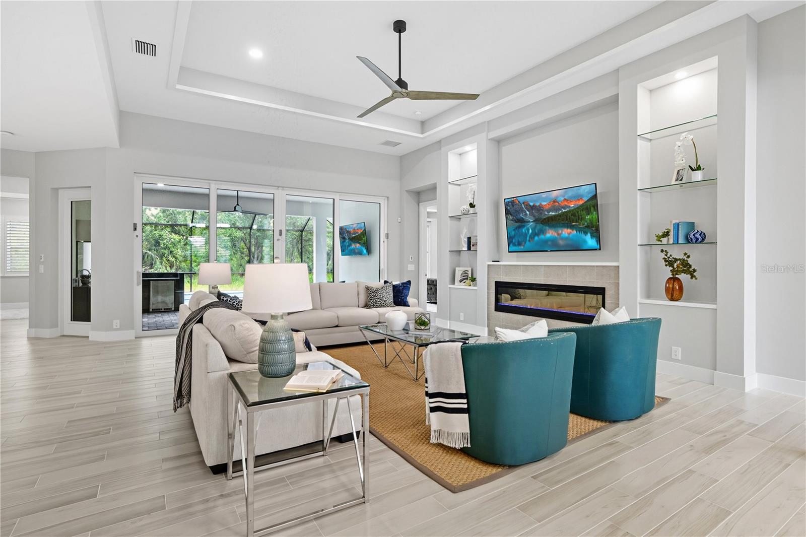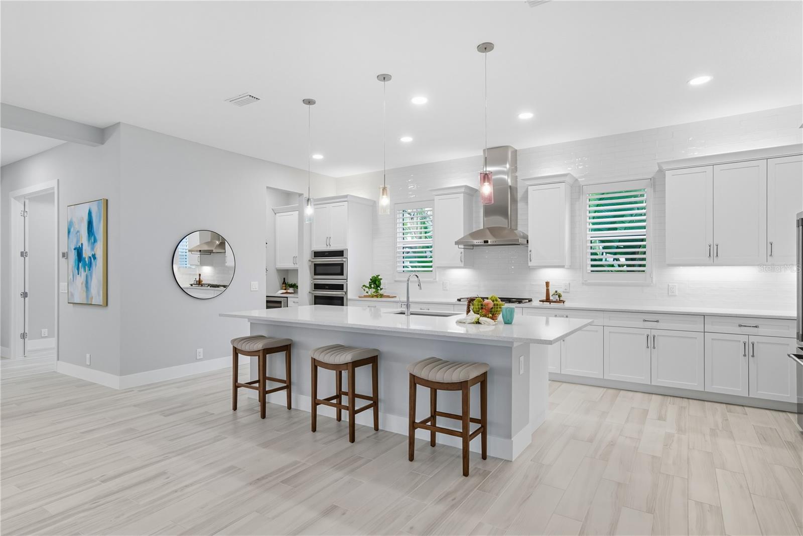 Welcome to this beautifully crafted Islander floorplan by Homes by Towne, located in the desirable LakeHouse Cove at Waterside Lakewood Ranch. Offering 2,667 square feet of thoughtfully designed living space, this home perfectly blends upscale features with a warm, livable feel.From the moment you arrive, the side-load three-car garage, stacked stone detail, West Indies elevation, and lush landscaping create an inviting first impression. Inside, you're greeted by 12- and 14-foot ceilings with elegant tray details, wood-look tile floors throughout, and a bright, open layout that's ideal for both daily living and entertaining.At the heart of the home is an oversized chef's kitchen featuring built-in Monogram appliances, a gas range, soft-close shaker cabinets with wood pullouts, and sleek quartz countertops. The kitchen flows effortlessly into the spacious dining area and great room, where a modern accent wall and built-in electric fireplace add a touch of style and warmth. Hurricane-impact sliders open to the lanai, making it easy to enjoy Florida's indoor-outdoor lifestyle.The owner's suite is a peaceful retreat, complete with a large walk-in closet and a spa-inspired bath featuring dual quartz vanities and a luxurious walk-in shower. Two guest suites, each with their own full bath and walk-in closet, provide plenty of comfort and privacy for family or visitors. A versatile study with French doors is perfect for a home office, den, or hobby space.Step outside to your own private oasis: a heated saltwater pool and spa overlooking a tranquil preserve. The outdoor kitchen--with a built-in gas grill, Le Griddle, beverage refrigerator, ice maker, and custom cabinetry--makes it easy to entertain or simply relax and unwind.Extra features include Hurricane Impact Windows, plantation shutters, a walk-in pantry with built-in shelving, a spacious laundry room with cabinetry and storage, and pre-wiring for a whole-house generator for added peace of mind.Living in LakeHouse Cove means enjoying incredible amenities right in the neighborhood, including a heated pool and spa, bocce and pickleball courts, dog parks, scenic walking trails, and a boathouse with water access for kayaking and fishing. The clubhouse and fitness center overlook the lake and feature a wraparound veranda with outdoor fire pits--perfect for gathering with friends or enjoying sunset views.Located just minutes from Waterside Place, residents can take a golf cart or water taxi to enjoy farmers markets, live music, dining, and shopping. Quick access to Center Point, UTC Mall, SRQ Airport, Mote Aquarium, and the area's beautiful Gulf Coast beaches ensures that everything you love about Lakewood Ranch living is close to home.This stunning property offers a rare combination of luxury finishes, smart design, and resort-style amenities--a place where every day feels like a vacation.