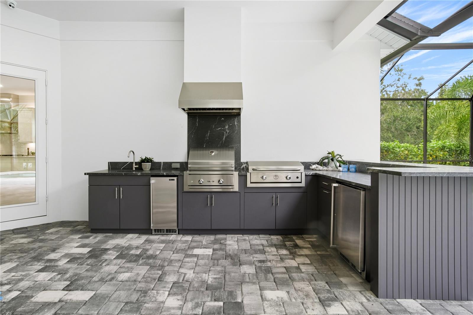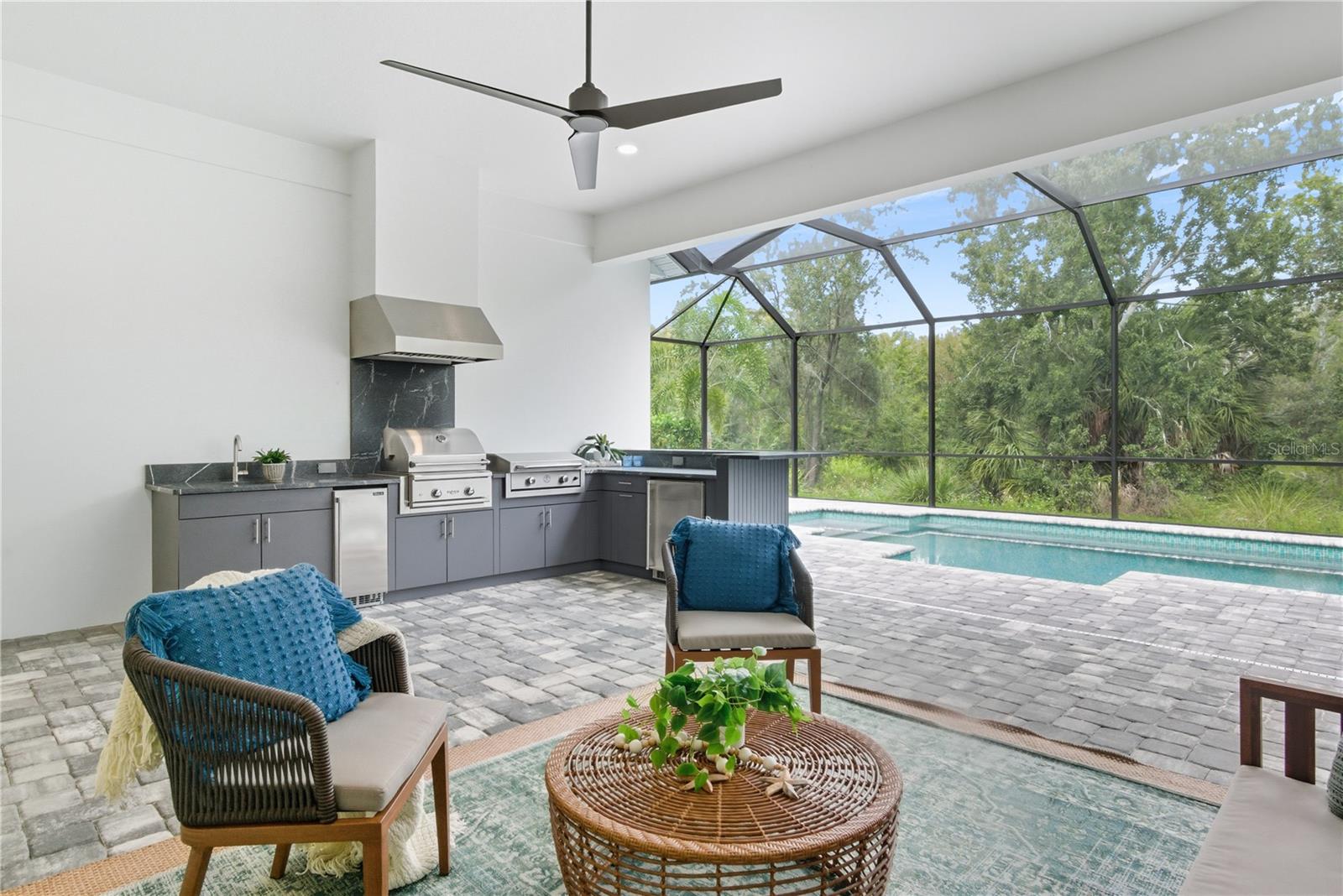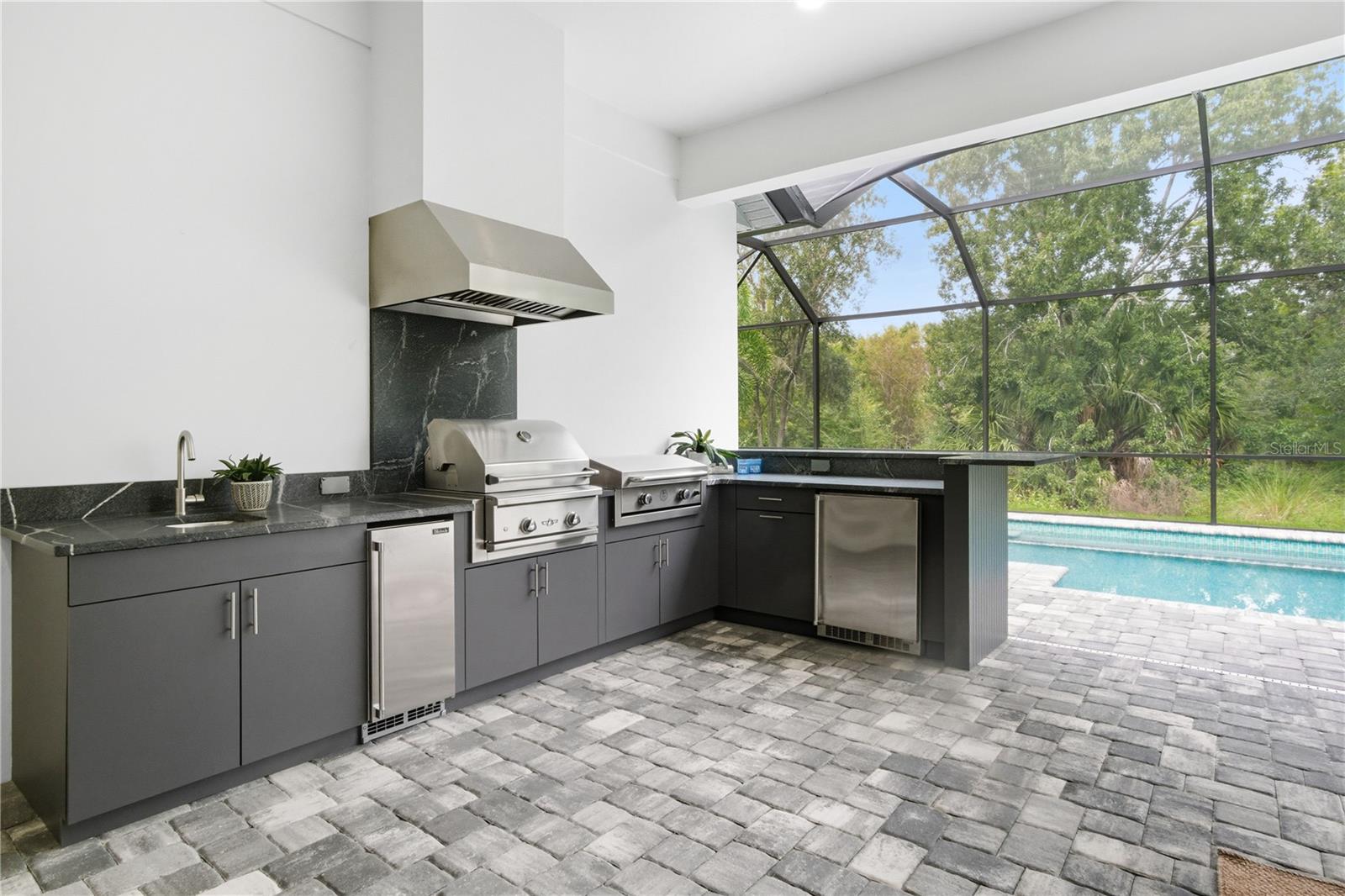 Exterior: Outdoor Kitchen, Sidewalk, Sliding Doors