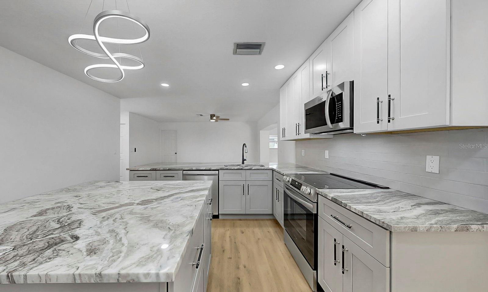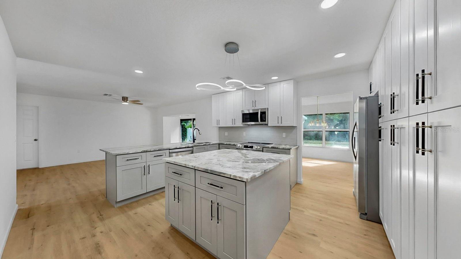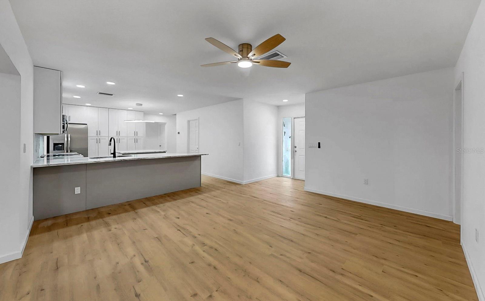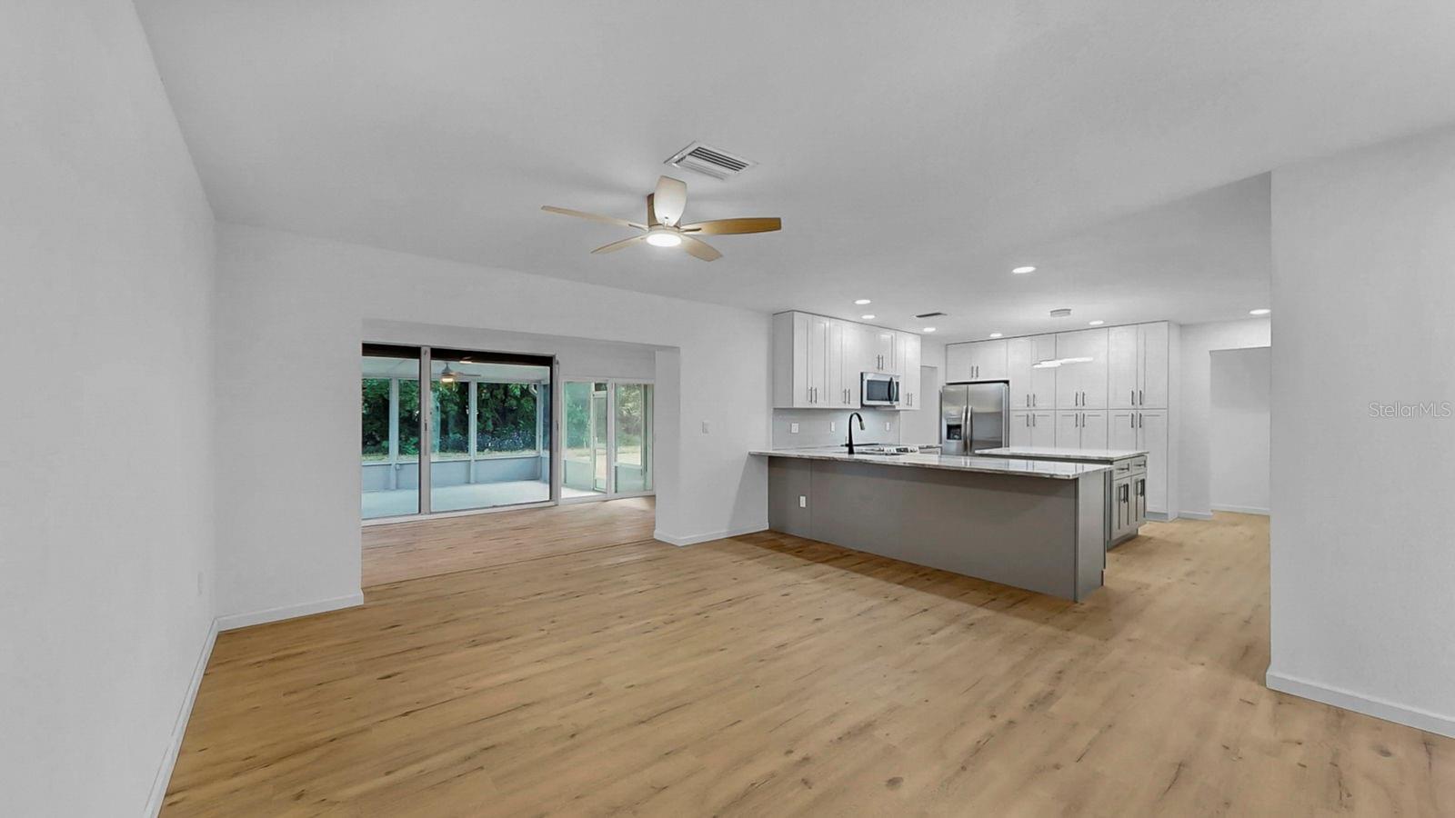 One or more photo(s) has been virtually staged. Welcome to 1809 67th St W in Bradenton, FL! Beautifully updated 4-bedroom, 2-bathroom home in the highly sought-after Village Green neighborhood. Inside, you'll find a spacious open layout with brand-new flooring throughout and plenty of natural light. The heart of the home is the huge updated kitchen, complete with a large island, breakfast bar, and ample storage, making it perfect for cooking, entertaining, or gathering with family and friends. Multiple living areas include both a family room and living room, plus a versatile Florida room that expands your space and offers endless possibilities. The primary suite provides comfort and privacy, while three additional bedrooms give you flexibility for guests, family, or a home office. A new roof adds peace of mind, and the backyard is a true retreat with no rear neighbors, offering privacy and room to relax. Situated in the desirable Village Green community, this home is just minutes from schools, shopping, dining, golf, and the sandy beaches of Anna Maria Island and Longboat Key. Move-in ready and loaded with updates, schedule your showing today!