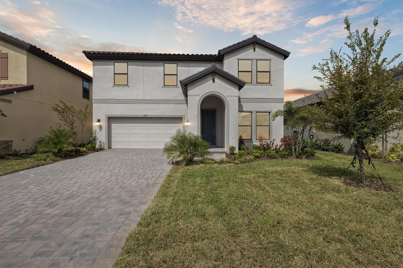 Kingfisher -This Kingfisher is move-in-ready! This home is an exciting design fit for a variety of lifestyles and families, capturing true Florida style. The expansive and open two-story floor plan begins with the dining room, which flows seamlessly into the grand room. This space is filled with natural light and features a sliding door that opens to a large lanai, perfect for enjoying the beautiful weather. From the grand room, you'll find the stunning kitchen, complete with Sonoma Duraform Harbor cabinets, Frost Whte MSI Quartz countertops, and Polaris Plus LVP flooring. The kitchen features a large island, plenty of counter space, and a walk-in pantry, all overlooking a spacious and bright breakfast room. All four bedrooms, the laundry room, and a versatile bonus room are located upstairs. The owner's retreat is a private haven, featuring an oversized walk-in closet and a luxurious bathroom with dual vanities, a large walk-in shower, for ultimate relaxation. This home is designed for comfort, style, and making lasting memories. Don't miss the chance to make this home yours!
