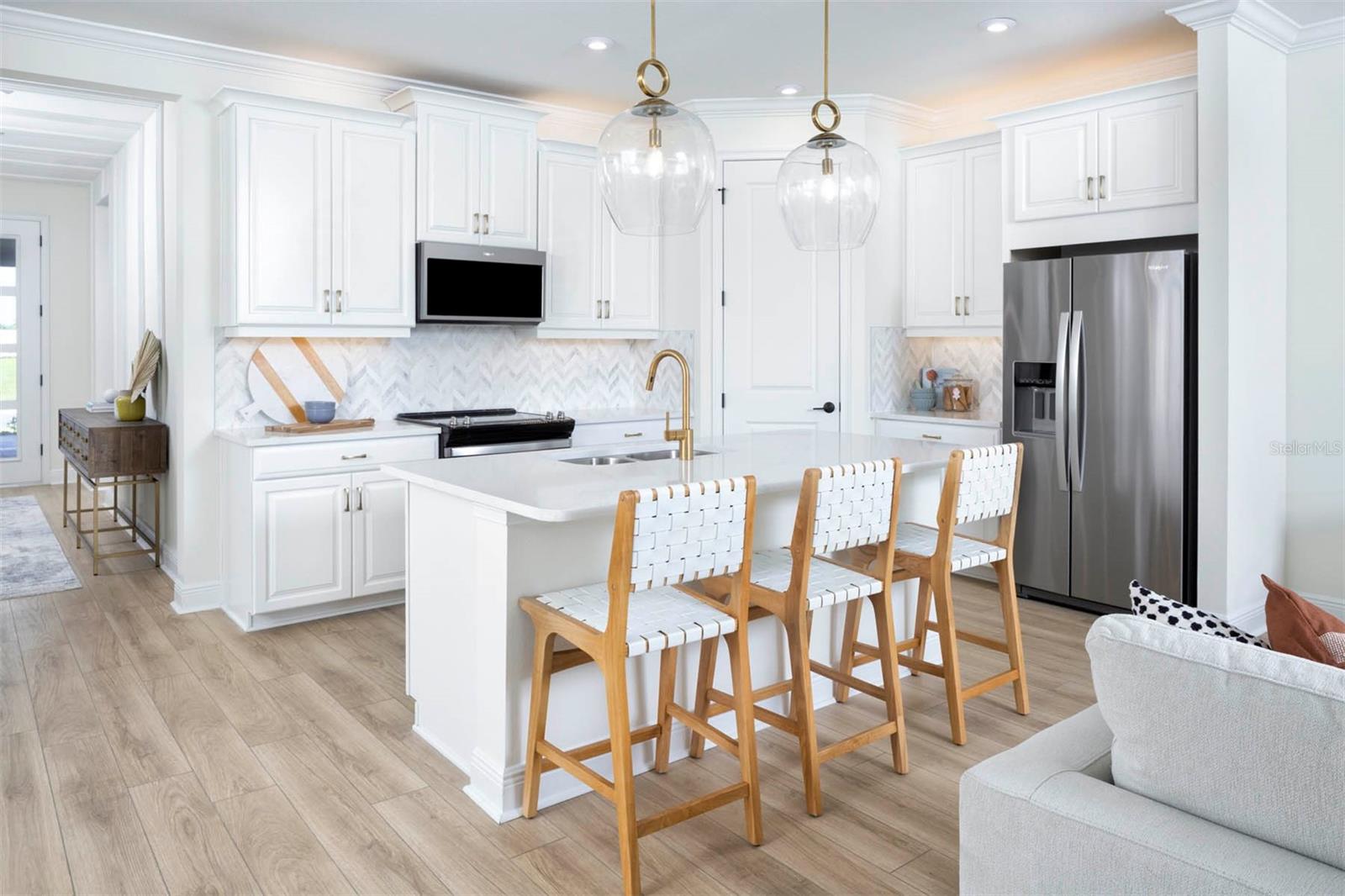 READY NOW - This beautiful 3-bedroom, 2-bathroom home with a 2-car garage showcases a timeless Craftsman elevation and a thoughtfully designed floorplan that balances comfort and style. Offering 2,005 sq. ft. of living space, the Glades design welcomes you with a foyer that leads into the expansive Great Room, dining area, and open kitchen. The kitchen features linen shaker-style cabinets, lightly veined quartz countertops, a coordinating gray brickset tile backsplash, and a large island with breakfast bar--perfect for both everyday meals and entertaining. Oversized glass sliders open to the covered lanai, where serene preserve views create an inviting backdrop. The owner's suite provides a private retreat with a raised dual-sink vanity, glass-enclosed shower with transom window, and spacious walk-in closet. Two secondary bedrooms are thoughtfully placed off the foyer at the front of the home, offering privacy for family or guests, while a study tucked just beyond the fully equipped laundry room adds versatility for a home office, hobby space, or fitness room. Throughout the main living areas, tile floors with a gray stone appearance combine modern elegance with easy care. With its Craftsman charm, versatile design, and tranquil setting, this home is move-in ready and waiting for you. ***Photos, renderings and plans are for illustrative purposes only and should never be relied upon and may vary from the actual home. Pricing, dimensions and features can change at any time without notice or obligation. The photos are from a furnished model home and not the home offered for sale.