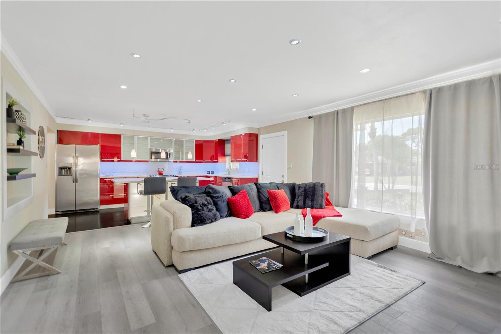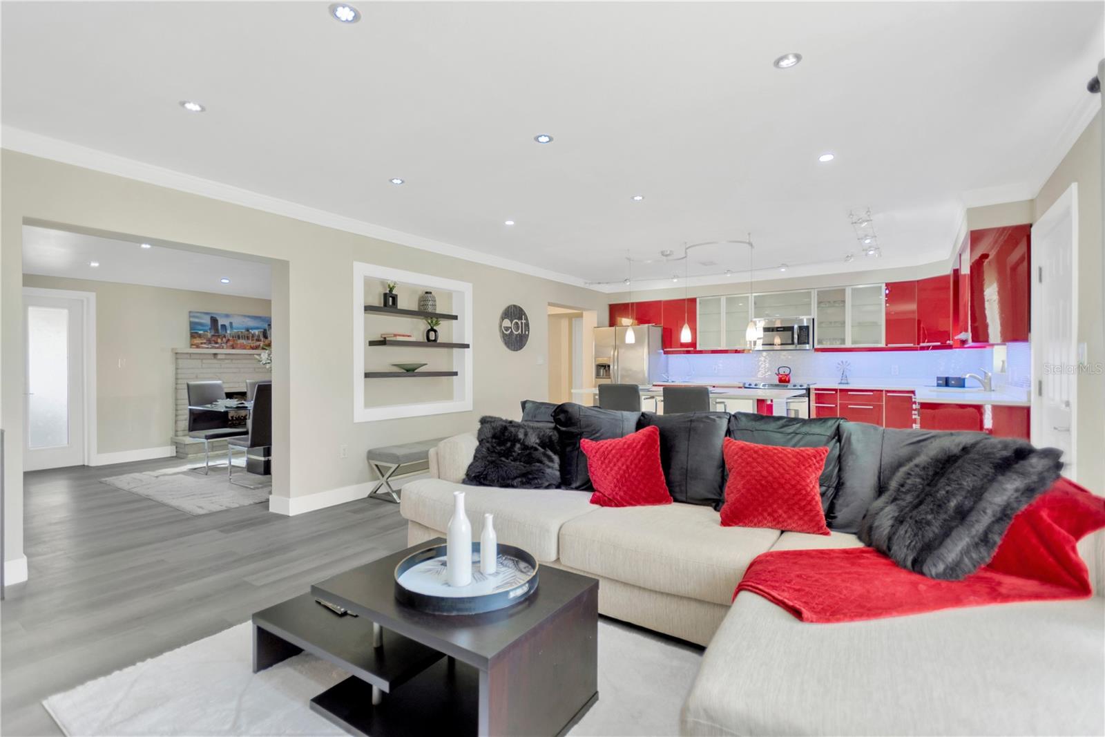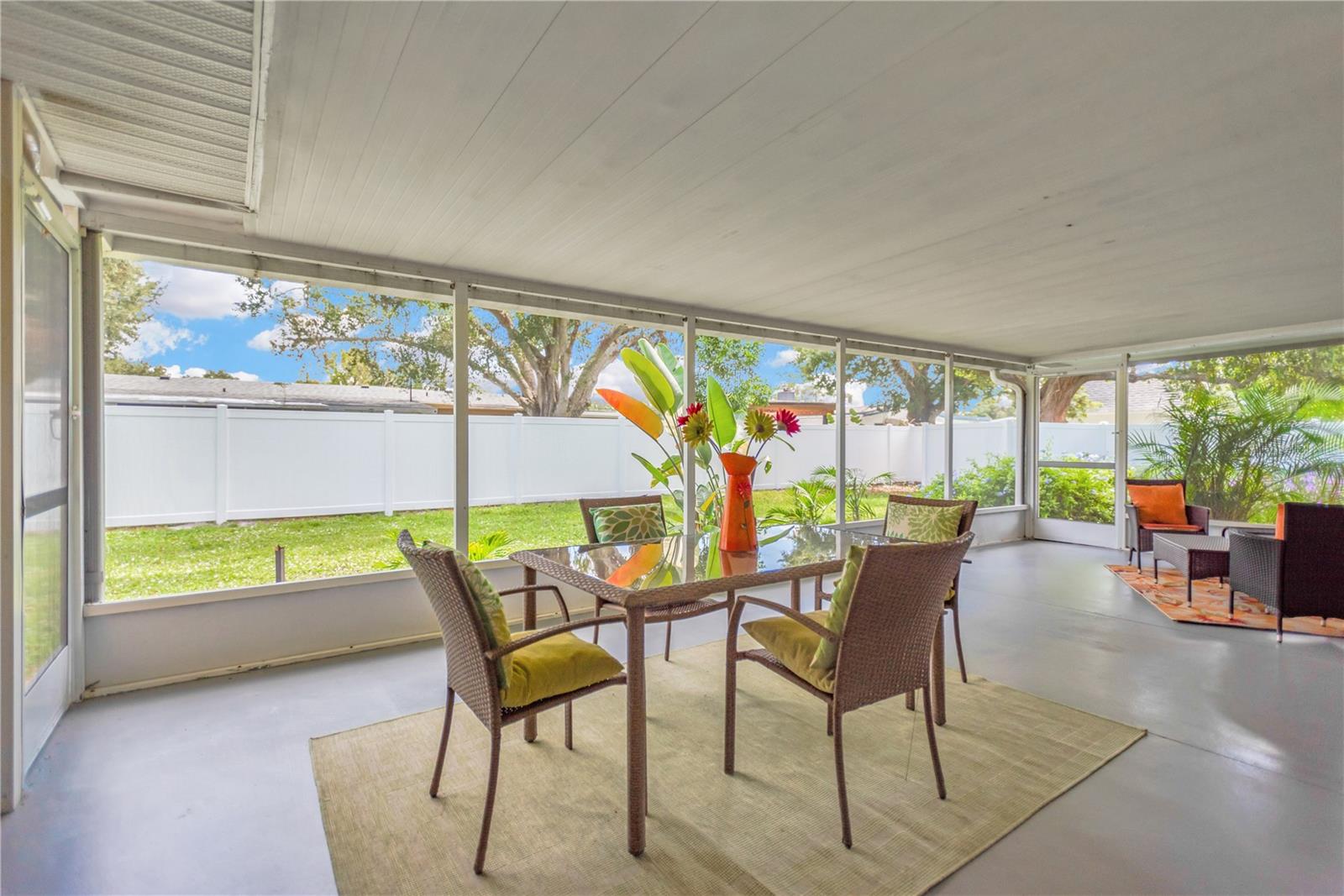 This home has had a MAJOR OVERHAUL!!! Purchasing this home should give you great peace of mind. New ROOF and New AC, both with full, transferable warranty, NEW vinyl fence, NEW luxury vinyl flooring, freshly renovated main bathroom! This mid century modern had fun and fresh modern touches all the way through. Also has a TANKLESS water heater for continually hot water in the home! HUGE lot with a large lanai and room to roam! Lots of mature trees and a very quiet neighborhood. Minutes from the beach and St Armands Key. No HOA or CDD!! Come take a look and make this beauty yours today!