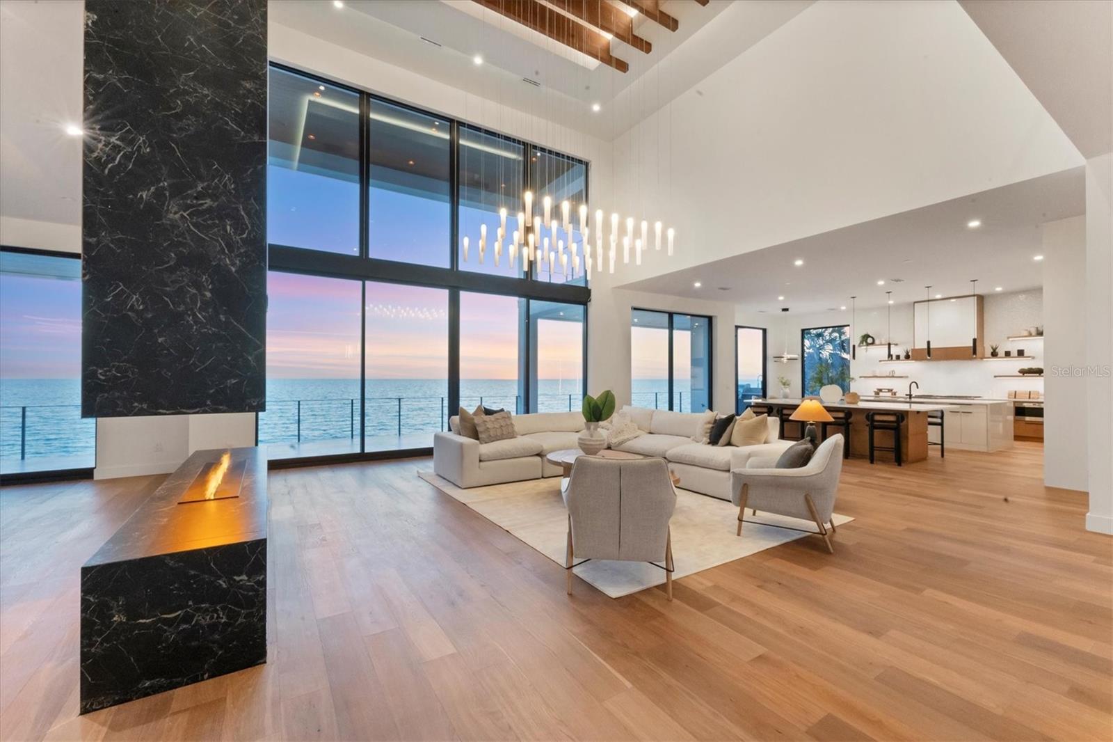 WELCOME TO ONE OF THE FEW BRAND-NEW GULF FRONT HOMES FOR SALE ON THE WEST CENTRAL COAST OF FLORIDA. A rare opportunity, where cutting-edge design meets wide Gulf vistas. Nestled on the prestigious barrier island of Casey Key, this newly constructed Modern Coastal estate by Modesta Homes exemplifies modern beachfront living. Positioned directly on the sand with sweeping Gulf views, this striking residence offers elevated living space, showcasing the pinnacle of craftsmanship and architectural innovation. Built with block construction, pilings, impact-rated windows and doors, and a four-stop elevator, every detail of this home has been thoughtfully curated for style, function, and resilience. Inside, soaring 24-foot ceilings welcome you into the grand foyer and great room, anchored by a dramatic floating staircase and a 24-foot feature fireplace wall. With en-suite bedrooms, state-of-the-art home theater, lounge, bar, and a wine wall, this home offers both grand entertaining and serene retreat. The chef's kitchen is a design showpiece, featuring European cabinetry, dual waterfall-edge islands clad in book-matched 3cm quartz, and premium Sub-Zero & Wolf appliances. Dual laundry rooms, breakfast nook, and custom built-in vanities provide elevated everyday living. The primary suite is a personal sanctuary, complete with a spa-like bathroom featuring a 71-inch freestanding tub, dual rainfall showers, a makeup vanity, and a large walk-in closet. Every bathroom throughout the home is appointed with bespoke cabinetry, quartz surfaces, and backlit mirrors. Designed to impress from every angle, the home is finished with smooth stucco, level 5 drywall, hardwood floors, imported tile, and integrated LED tray ceilings. A sleek rooftop terrace crowns the home, offering panoramic views of the Gulf and beyond. Step outside to your personal resort: an expansive terrace with an oceanfront pool, floating spa, sun decks, outdoor fireplace, and fully equipped kitchen. Lush, tropical landscaping, Zoysia grass, and a concrete drive with turf inlays complete the impeccable exterior design. Sleek metal railings accentuate balconies and the rooftop for a modern edge. Set on a half-acre of prime waterfront. This is coastal modern luxury at its pinnacle--a rare opportunity to own a brand-new, Gulf-front estate on one of Sarasota's most desirable stretches of sand.