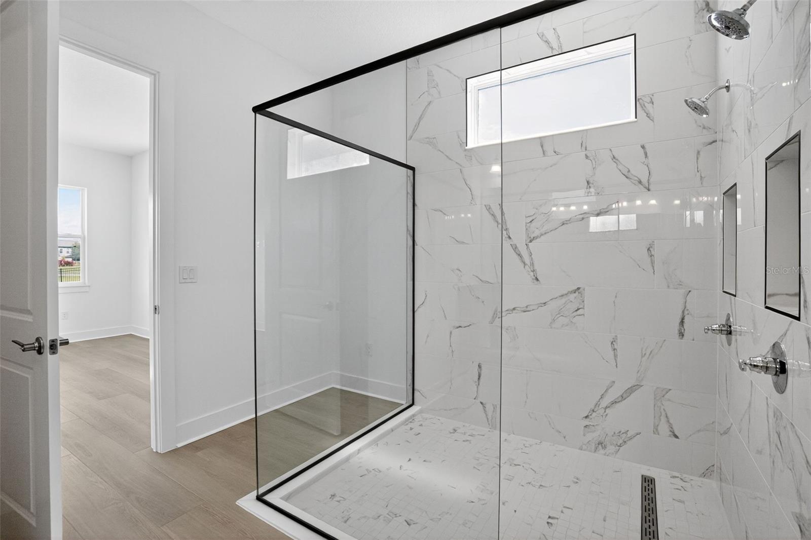 Be the first to occupy this brand new incredible 3 bed 2.5 bath home on a 15,000 sq ft cul-de-sac lot with direct pond frontage. A stunning foyer with 12' ceilings welcome you, opening up to a generously sized great room with tray ceiling feature and 16' glass sliders leading to a paver lanai with summer kitchen pre-wire. An oversized gourmet kitchen with expansive island and luxurious flat paneled cabinetry flows into a charming morning kitchen and incredible walk-in pantry. The master retreat showcases a generously appointed Roman Shower with dual shower heads. Additional features include: 10' ceilings, upgraded 9" beveled White Oak LVP floors, 8' doors and wall mounted TV outlets. With all comparable lots already sold, this is the sole opportunity available at this price point.