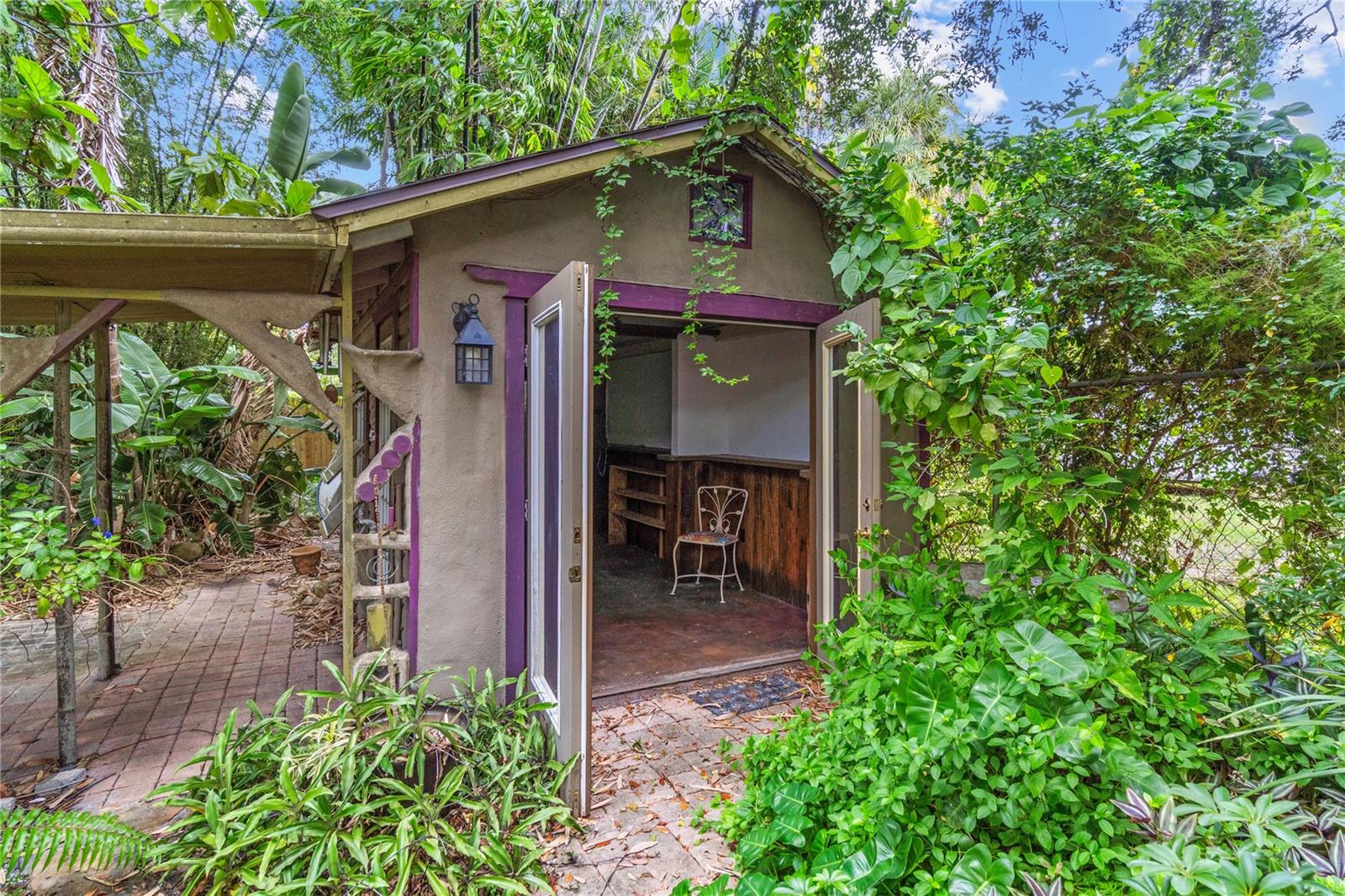 Charming Historic Cottage in the Heart of Bradenton's Village Of The Arts! Zoned BR_T4-R for both residential and commercial use, this adorable early 20th-century bungalow offers the perfect balance of character, creativity, and opportunity. Painted in artsy lime green with purple accents, the home beautifully reflects the colorful personality of the neighborhood where galleries, cafs, and studios line the streets. Located just a few blocks south of downtown Bradenton, this historic gem is a short drive to some of Florida's most coveted beaches and within walking distance to LECOM Park, home of the Pittsburgh Pirates' spring training. Step inside and you'll find all the vintage charm of a well-kept, 1930s bungalow paired with thoughtful updates for modern comfort. Original hardwood floors, built-in wood furniture, and large, wood-framed windows which flood the home with natural light. The spacious entryway features swing-out wood window display boxes, perfect for showcasing art or dcor. The cozy living area includes a wood-burning fireplace and adjustable ceiling spotlights designed for highlighting artwork. The kitchen, open to the dining room, offers a gas stove, full-size refrigerator, dishwasher, microwave, and granite counters. Just off the kitchen, the laundry area includes a full-size washer and dryer. Both bedrooms feature ceiling fans, nicely sized closets, and easy access to the updated full bathroom, which includes artistic tilework and a pebble-finish shower floor. This property has passed its 4 point inspection, qualifying for insurance. Enjoy tranquility in the attached, covered, screened-in porch off the back. Outside, a lush, fully fenced backyard shaded by mature oak, kapok and bamboo trees offers a tranquil retreat. Follow the stone pathway past exotic flowers and wild vines to a serene, stone-framed pond tucked into the corner of the garden. A separate stand-alone 8' x 15' building with electricity and its own A/C unit provides the perfect art studio, workshop or office and has previously been rented to local artists for extra income. With no HOA and no minimum rental period, this property offers excellent investment potential for short-term vacation rentals. The Village of the Arts allows both artists and non-artists alike to live, work, and play among Bradenton's most creative community. Enjoy the nearby bakeries, breweries, yoga studios, pottery shops, music venues, and award-winning restaurants, plus monthly Art Walks held every first Friday evening and first and third Saturday afternoons (and holidays) featuring live music and local vendors. As a bonus, homeowners in the Village of the Arts may qualify for city grants and incentive programs funding up to $2,500 for exterior upgrades, other home repair or down payment assistance. The city also provides free local electric car rides via the "Ride Freebee" app, offering easy access to downtown and the waterfront. This is more than just a bungalow- it's a piece of living art. With its architectural character, live/work flexibility, and location in the city's most creative and walkable district, it appeals to those who value lifestyle as much as structure. If you're an artist, creative professional, or someone who wants a unique home in a vibrant community, this property offers a rare blend of charm and potential. With its mix of historic charm, creative energy, and modern convenience, this enchanting Bradenton bungalow is more than a home - it's an experience!
