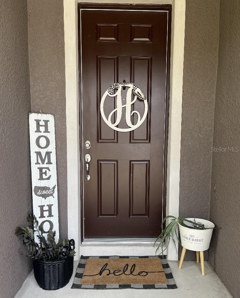 Exterior: Hurricane Shutters, Rain Gutters, Sidewalk, Sliding Doors