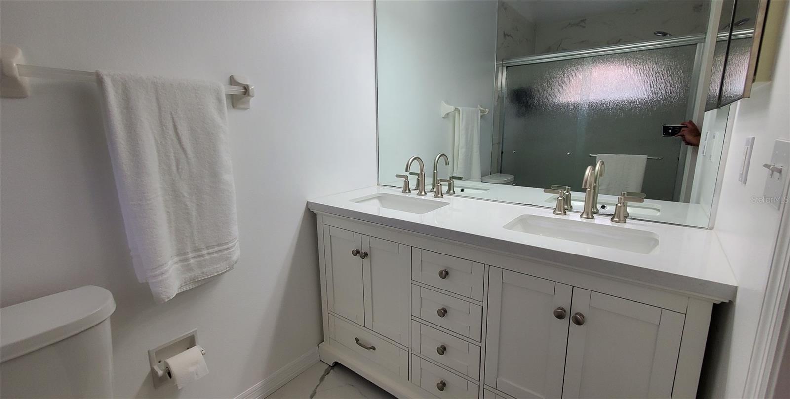 Welcome to this meticulously renovated 3 bedroom, 2.5 bath home located in a Palm-Aire subdivision. Beautifully updated throughout, this home combines modern upgrades with timeless style. This thoughtfully designed split floor plan offers both privacy and functionality. Upon entry you're greeted by an open-concept layout that seamlessly connects the kitchen, living and dining areas for everyday living and entertaining. The kitchen features soft close cabinets, quartz countertops, pantry and smart appliances. The kitchen effortlessly combines the dining & living area with sliders to the screened lanai. The primary bedroom offers superior privacy - features a walk-in closet, ancillary closet, sliders to the screened lanai & en-suite bath. The ample sized guest bedrooms are located on the opposite side of the home featuring an exclusive jack and jill style bathroom. Enjoy many upgrades which include high-end vanities, remote controlled/dimmable ceiling fans, updated electrical throughout, dual ionized HVAC system, laundry room, roof (2024), irrigation system and vinyl privacy fence. The south facing backyard offers beautiful sunrises and sunsets over a serene private setting. Located in the highly sought-after Rosewood at the Gardens subdivision which includes a private community pool exclusive to only 39 homeowners, a restroom facility and outdoor shower. Minutes from UTC, SRQ airport and so much more. Priced for quick sale and under recent appraised value !!!