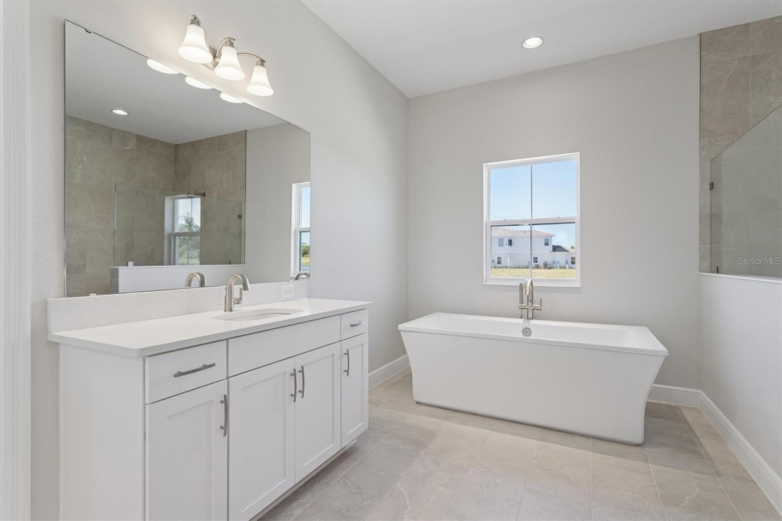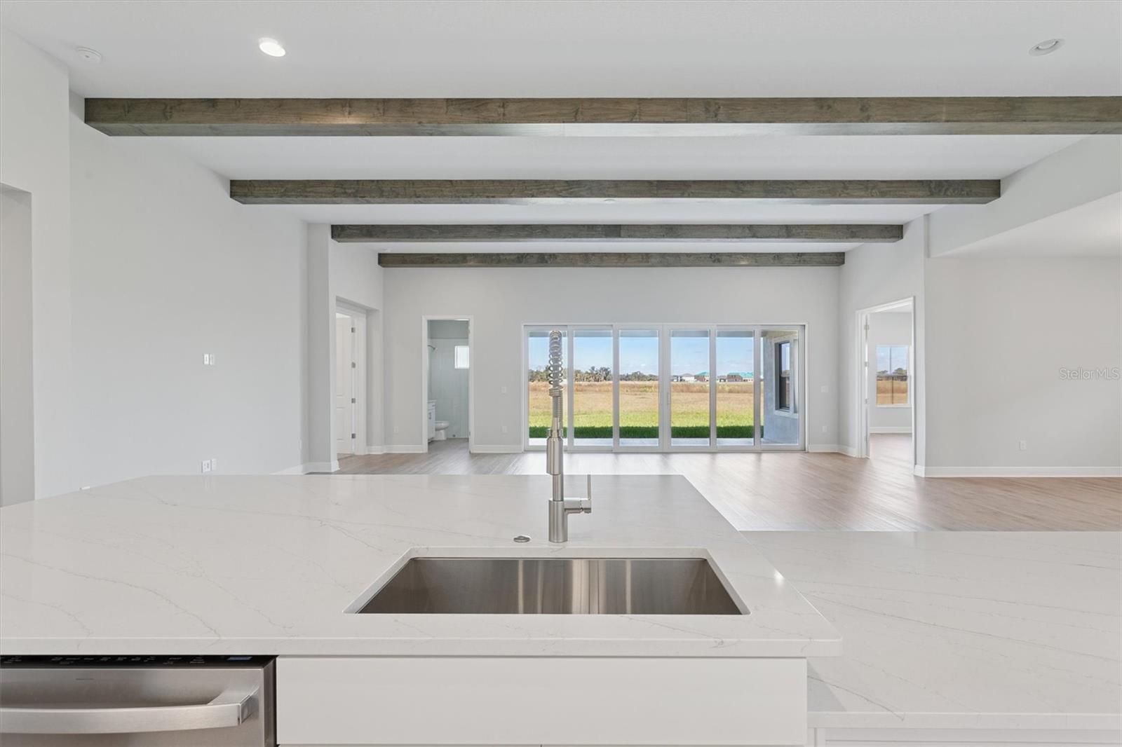 One or more photo(s) has been virtually staged. Key West II - This Key West II is Ready Now! Imagine moving into your stunning new home this fall, perfectly designed to embrace the Florida lifestyle. The Key West II is a beautifully bright and airy floor plan that welcomes you from the moment you enter, flowing seamlessly from the foyer through the expansive open living areas and extending right out to the oversized covered lanai, which is ready for extensive outdoor enjoyment. The common living areas truly impress with grand 12 foot ceilings in the extended foyer, dedicated den, generous grand room, and the incredible kitchen with its large central island, making this a spectacular space for entertaining and daily life. The separate dining room is equally perfect, whether you are hosting an elegant dinner or enjoying a casual meal. Your private sanctuary awaits on the lower level in the owner's retreat, complete with a large spa like bathroom and an oversized walk in closet. For ultimate convenience, two additional bedrooms and a full bathroom are also located downstairs, while a fourth bedroom, bathroom, and a flexible bonus room upstairs provide the perfect space for guests or a media room. Every detail has been carefully selected, including the elegant Sonoma Linen cabinets, gorgeous Frost Whte MSI Quartz countertops, and durable Pride Plus LVP flooring, ensuring a chic, high quality finish throughout your new home. Listing Price amount for this Pending Sale includes Design and Structural Options.