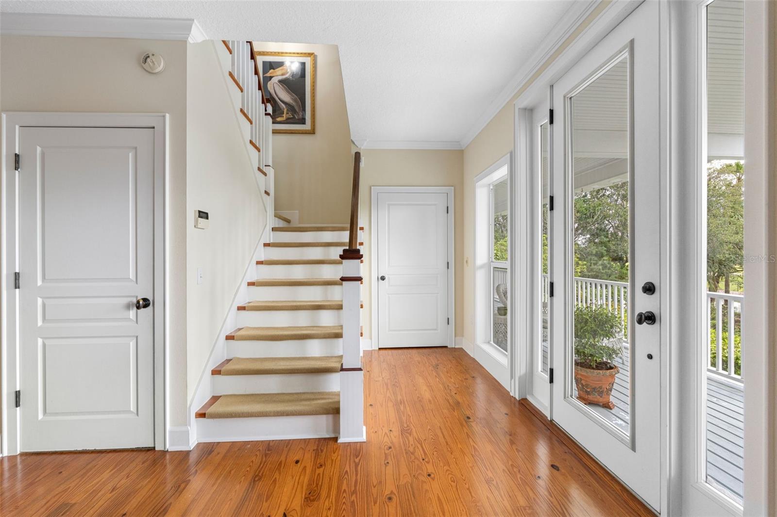 This remarkable Terra Ceia Island home stood strong through recent storms--Debby, Helene, and Milton--thanks to its elevated first floor, approximately 16 feet above ground level, providing lasting security and peace of mind. Embrace the charm of Old Florida living at 1215 Bayshore Drive, a custom waterfront residence built in 2000 featuring 4 bedrooms, 3.5 baths, and over 3,000 sq. ft. of beautifully crafted living space on 3.25 acres of serene waterfront property. A picturesque drive and lush landscaping lead to a welcoming front porch that highlights the home's quality construction. Inside, natural light and tranquil views fill the open floor plan, where the great room, dining room, and foyer open to a screened back porch through elegant French doors. A flexible bonus room serves perfectly as an office, playroom, or TV room, complemented by a convenient half bath. The chef's kitchen showcases custom wood cabinetry, granite counters, a gas range, stainless steel appliances, and a unique antique marble-topped oak island. A cozy breakfast nook and oversized laundry room--with a 1920s cast iron farm sink and walk-in pantry--add practicality and charm. A guest ensuite on the main level features a walk-in closet and stylish bath with beehive tile flooring and walk-in shower. Upstairs, the spacious primary suite offers a walk-in closet, updated spa bath with Jacuzzi tub, open shower, and dual vanities. Two additional bedrooms and a full bath complete the upper level. Notable features include custom millwork, ceiling fans throughout, a whole-house vacuum system, alarm system, and framed space for a future elevator. The ground level provides two covered parking spaces, a mudroom, and ample storage areas. Outdoors, enjoy a 23' x 24' air-conditioned workshop/studio with attic storage, a freshwater pond with artesian well, a fenced vegetable garden, solar-powered gate, and multiple parking options for vehicles or boats. Follow the 125-ft boardwalk to the observation deck for kayaking or fishing adventures. Ideally located near Sarasota, Bradenton, St. Petersburg, and Tampa--and minutes from the Gulf beaches--this property offers the perfect blend of tranquility, craftsmanship, and coastal accessibility. Experience the timeless appeal of Terra Ceia Island, home to Florida's oldest continuously operating civic association. For more information: https://www.terraceiavia.com