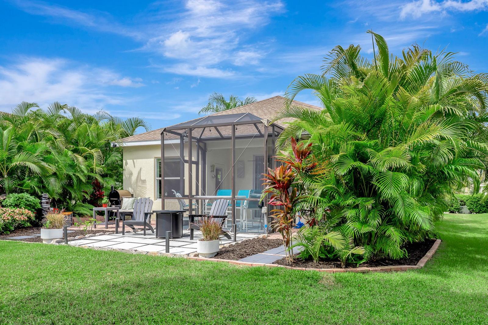 Welcome to your Cottage in the Park ! This beautifully maintained and professionally landscaped 2 bed/2 bath home is a gem. From the flower gardens that greet you and your guests at your front door to the secret garden that awaits in your back yard, you're going to love living here. The privacy of your east facing backyard paradise, not only faces a small lake, but also keeps you out of the harsh setting sun every afternoon. Built in 2012, here are the recent updates made to this beautiful property; Luxury vinyl plank flooring throughout all living areas and tile in both baths. Quartz counter top and glass tile backsplash in the kitchen. Granite counter tops, porcelain sinks, mirrors, lighting & faucets in both baths. York HVAC installed May 2021. All interior walls, doors and trim painted in late 2023. 12' x 12' porcelain block outdoor patio installed Oct. 2023. New Samsung W & gas D installed Jan. 2024. New Bradford-White gas HWH installed July 2024. New SS LG Refrigerator, full vent Microwave and gas range installed June 2025. Thru wall exterior kitchen vent installed June 2025. New LiftMaster Garage Door opener installed Oct. 2025. Landscaping enhancements w/timed lighting to enhance the garden elements. Double SS sink in garage. Hurricane shutters for every window.