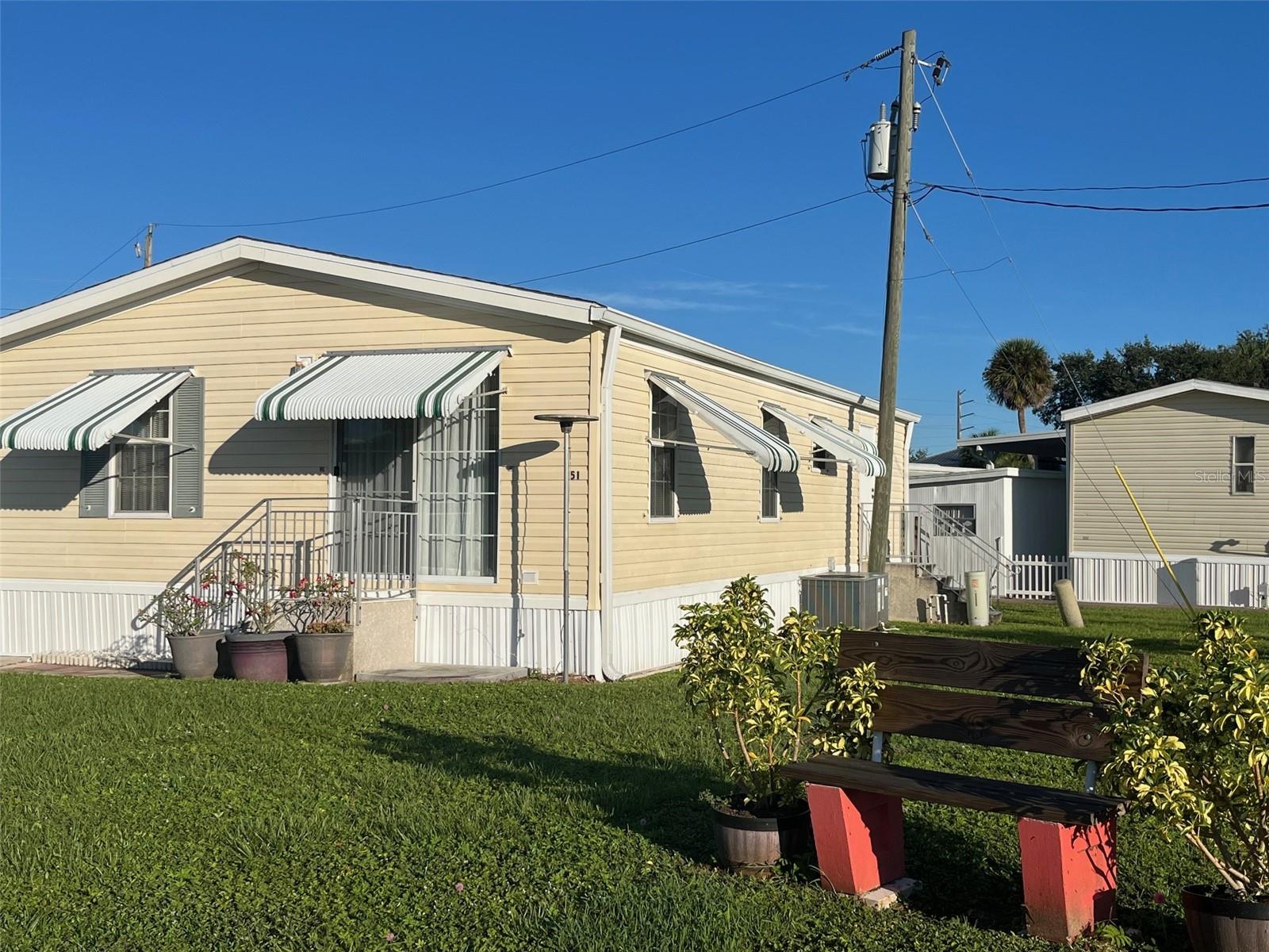 Welcome to your affordable Florida Living with all amenities for a fraction of the cost.Enjoy Florida's blue Skies and Sunshine in your own Mobile Home at Park Hill Estates a 55+ Community. Very beautifully maintained partially furnished 2 bedroom / 2 bath, 2005 Manufactured Home, New Roof 2017, New Water heater 2024, New Vinyl flooring in both bedrooms. Wooden Deck with seating area and beneath extra Storage for Canoes/Kayak or Paddle Boards. Large Free-standing Storage on the side of the home. Extra concrete seating area on the front side of the home. 2 car parking/ Carport.This is a very active community with Heated Community Pool, Club House, Aerobics, Shuffleboard Courts/League, Bocci League, Pinocle Euchre, Bingo, and of course Potluck Dinners Volunteer, Women's Club Crafts, Quilting Special Programs. Wi-Fi is available in the Clubhouse Lanai Area as well. A dock, with harbor access for your boat, can be purchased for an additional $2,000 and has an additional $100/year maintenance fee. Beautiful surroundings with canals and not to forget Golf Cart Friendly as well - just a few minutes ride from Publix. This is a Co-op and buyers must buy a minimum of 5 shares / $1000 each and Maximum of 16 shares. The more you own, the lower your HOA fees which are extremely reasonable. No Pets Allowed. No Rentals. Maintenance fees include water, sewer, trash pickup, lawn care, and use of common facilities. Welcome to Florida!
