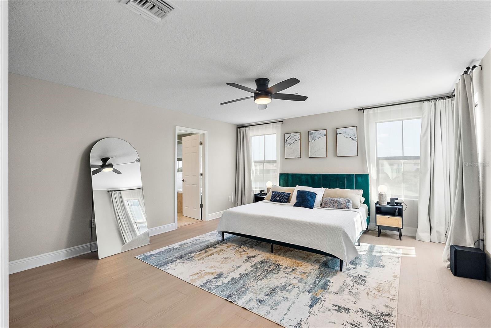 Spectacular Pelican model home perfectly situated on a premium lakefront lot in the highly desirable Crosswind Ranch community in the heart of Parrish. This stunning two-story residence offers nearly 3,400 square feet of beautifully designed living space, featuring 5 spacious bedrooms, 3 full bathrooms, and a versatile bonus loft perfect for a media room, home office, or play area. The gourmet kitchen is a chef's dream, complete with upgraded cabinetry, a large center island, stainless steel appliances, and elegant finishes throughout. The expansive open-concept layout flows seamlessly into the living and dining areas, making it ideal for entertaining or relaxing with family. The luxurious master suite provides a private retreat with a spa-inspired ensuite bath and generous walk-in closet. Step outside and enjoy serene lake views from your backyard, creating the perfect backdrop for morning coffee or relaxing in the evening. Residents of Crosswind Ranch enjoy exceptional amenities, including two resort-style community pools, walking and biking trails, pickleball courts, playgrounds, and more--all designed to enhance your Florida lifestyle. Don't miss the opportunity to make this spectacular lakefront home your own in one of Parrish's most sought-after communities!