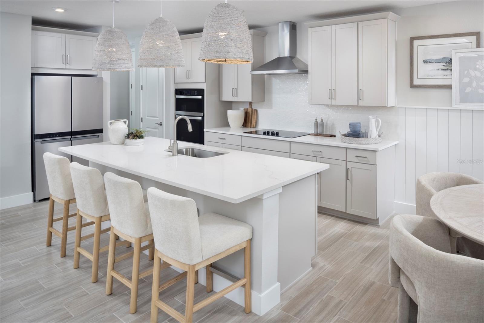 The Carmel II coach home is a first-floor end unit home that is designed to enhance your lifestyle. With 2 bedrooms, 2 baths, and a 2-car garage, this open and airy plan has a natural flow. A beautiful designer kitchen features quartz countertops, shaker style 42" upper wood cabinets and upgraded appliances with a cooktop, vent hood and a wall micro/oven. There is an island with breakfast bar that can seat up to 5, and an adjacent sunlit dining area. The kitchen overlooks the airy Great Room that is highlighted by expansive sliding glass doors that lead to the covered lanai. It has plentiful wall space that will accomidate a large screen TV. The primary suite is spacious with a relaxing primary bath featuring an oversized shower with glass enclosure, linen closet and walk-in closet. The 2nd bedroom and full bath is located on its own enclave off of the great room. The bath features a full glass enclosed shower. The bedroom also has a view of the conservation area. Screened lanai provides a view of the secluded, wooded space behind the home and lends itself to relaxing or extending the living space.Featuring Clare's Smart Home Technology package, this will make small conveniences in life even easier.*** Photos, renderings and plans are for illustrative purposes only and should never be relied upon and may vary from the actual home. Pricing, dimensions and features can change at any time without notice or obligation. The photos are from a furnished model home and not the home offered for sale.