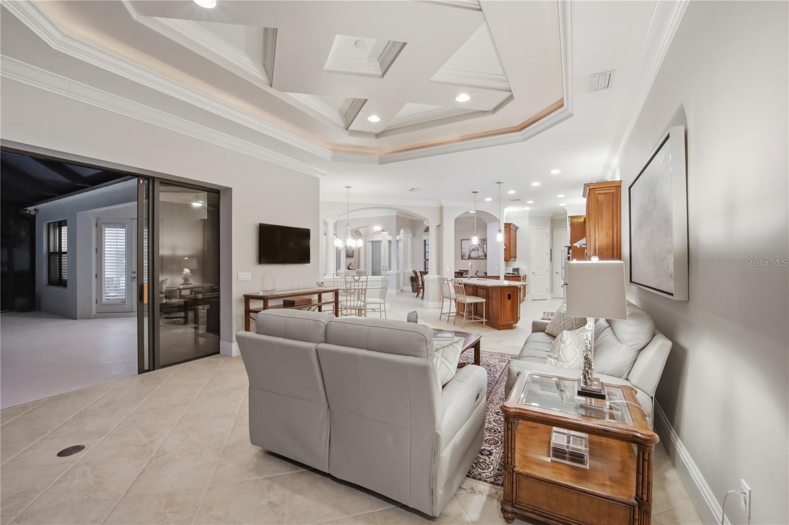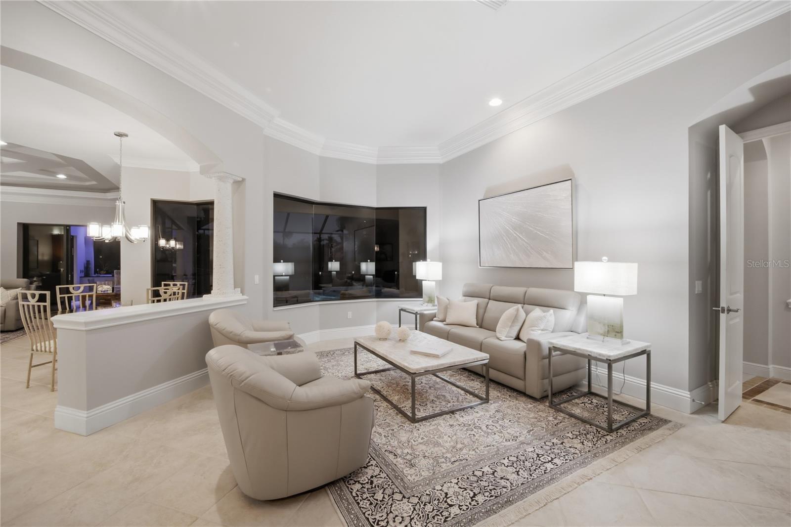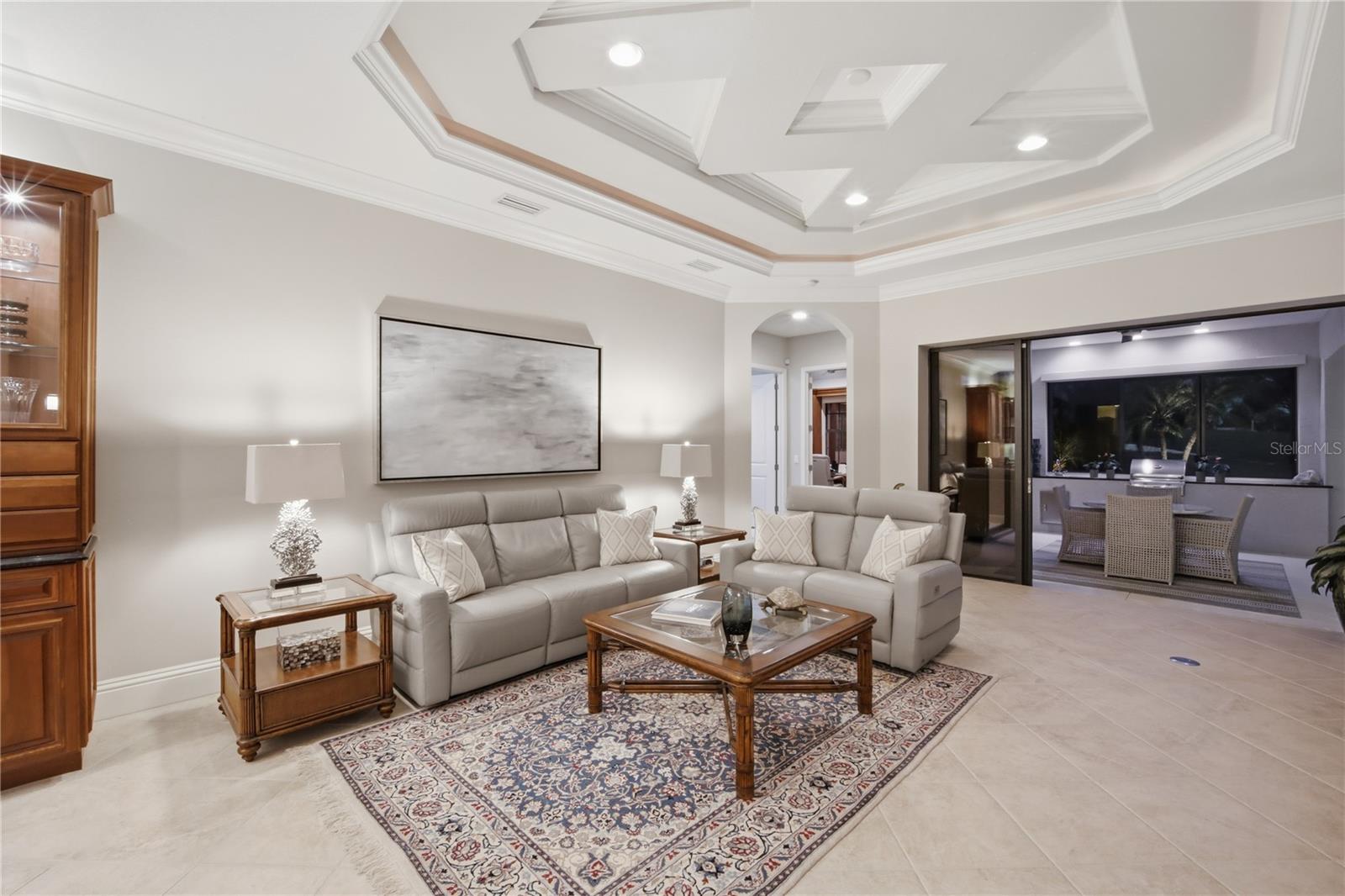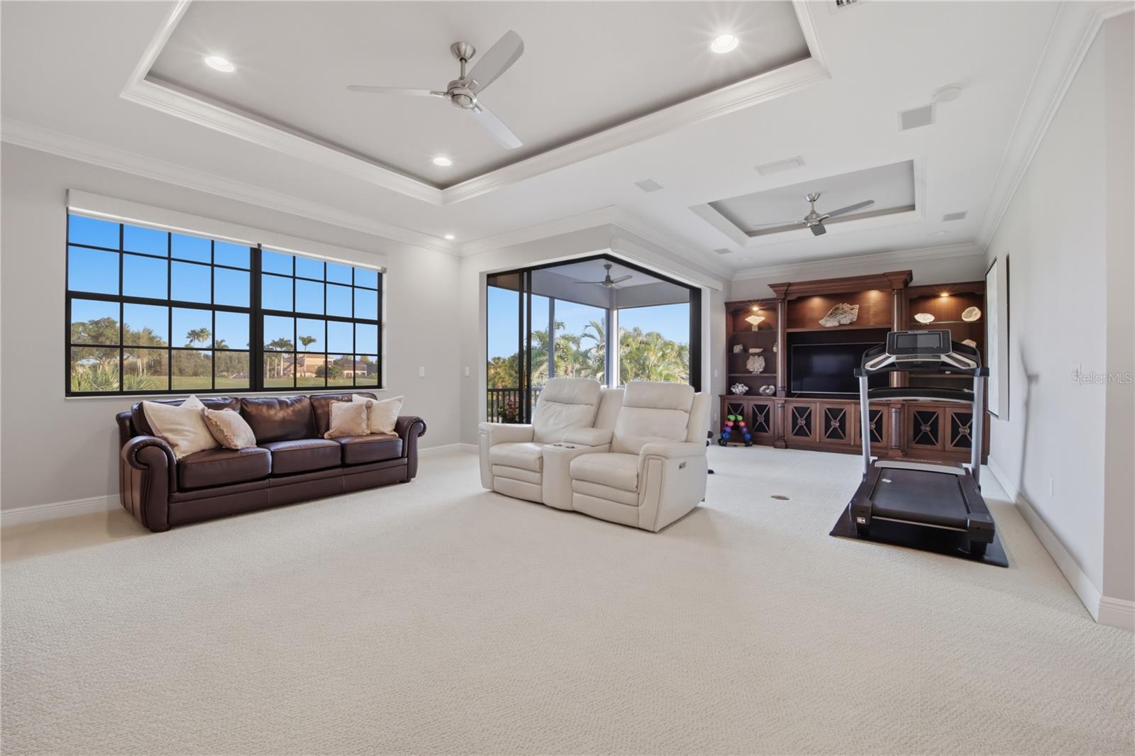 CASUAL ELEGANCE in this lovely home located on a premium Golf course lot, on a cul-de-sac in the impressive Lakewood Ranch Country Club. Custom-built home offers a panoramic view of the 13th green on the King's Dunes Championship Golf Course. Light and bright with an open-concept design flowing effortlessly from the light-filled living and dining areas to a gourmet kitchen featuring contrasting center island, granite countertops, breakfast nook, stainless appliances and large pantry. Continuing, is a large great room with "disappearing" corner sliding glass doors to a covered lanai that includes a summer kitchen, swimming pool, spa and large backyard. The owners suite includes two separate custom closets, lighted tray ceiling and access to deck and pool. Bath ensuite offers a Roman shower, relaxing soaking tub and separate granite vanities. There are two additional bedrooms plus a custom designed office with ample built-in storage and bookshelves, and serene views of the golf course and pool! Upstairs on the second-floor is a bonus room including a built-in entertainment center, half-bath and balcony overlooking the landscaped backyard and golf course. Numerous upgrades include a completely renovated pool and spa, new pool equipment with remote control, resurfaced deck, new garage floor epoxy finish and belt-driven doors, power blinds throughout and plantation shutters in all bedrooms and bathrooms. The Lakewood Ranch Country Club offers world-class amenities including: four championship golf courses, 18 Har-Tru tennis courts, 12 pickleball courts, fitness center, aquatic facilities, three well-appointed clubhouses and an active social calendar. Membership is optional. Beyond the gates, enjoy A-rated schools, top medical facilities, premier shopping and dining and easy access to the Gulf Coast's pristine beaches. Welcome to your year-round Florida Vacation! CALL TODAY!