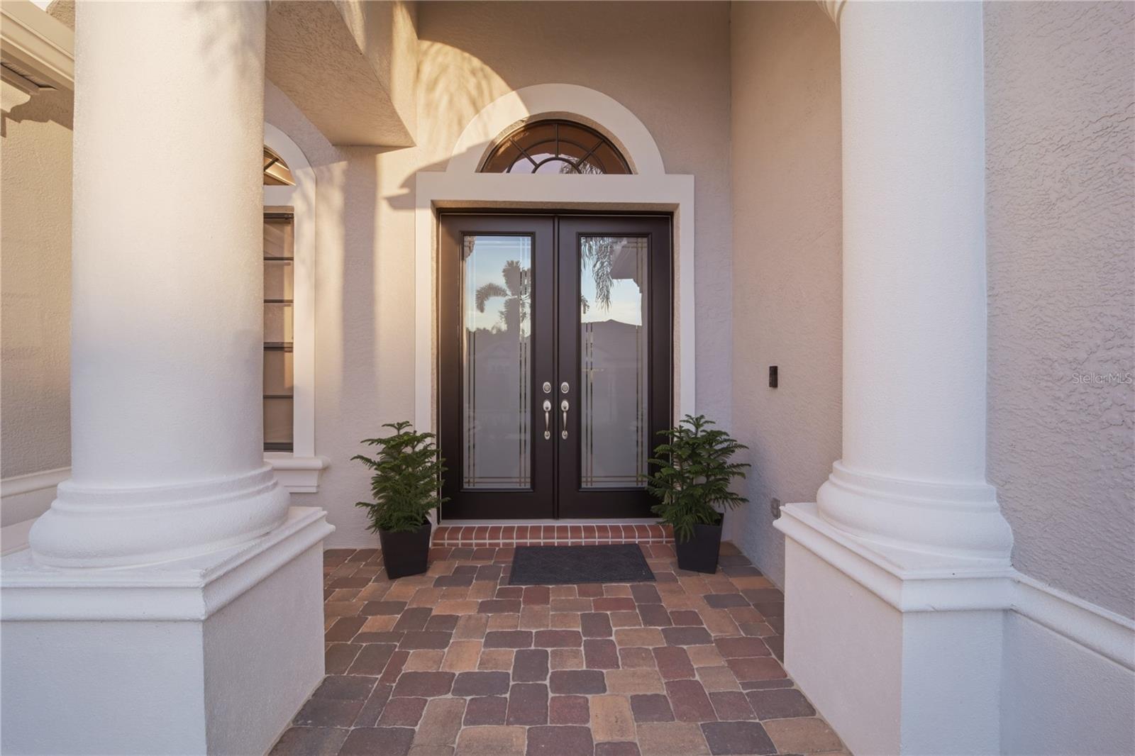 Exterior: Balcony, French Doors, Lighting, Outdoor Grill, Rain Gutters, Sidewalk, Sliding Doors, Sprinkler Metered