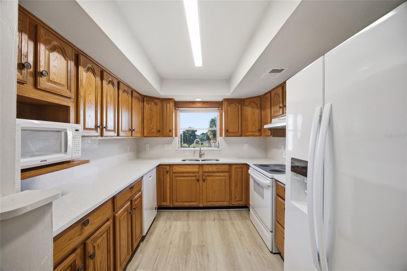 Welcome to your breezy Bradenton retreat in the desirable coastal community of Mount Vernon. This spacious two bedroom, two bathroom second floor condo offers relaxed Florida living with serene pond views and glimpses of Sarasota Bay. The home has been beautifully refreshed with brand new luxury vinyl flooring throughout, brand new quartz countertops, new fixtures, and fresh paint, creating a clean and modern move in ready feel.The former lanai has been enclosed to provide a bright and flexible bonus space that works well as a reading nook, office, hobby area, or morning coffee spot. The open floor plan brings in abundant natural light and creates an inviting flow for both daily living and entertaining. The community maintained roof was replaced in 2019 for added peace of mind.Mount Vernon offers an active lifestyle with a heated resort style pool, pickleball and tennis courts, shuffleboard, boat slips, a bayfront park, nature trails, a butterfly garden, kayak launch and storage, and a clubhouse with a library, game room, and banquet space. Your monthly fee includes cable, internet, water, sewer, trash, pest control, landscaping, and exterior maintenance, allowing for convenient and stress free living.The location is ideal, with a quick five minute drive or twenty minute bike ride to some of Florida's most beautiful beaches. Whether you are looking for a full time residence, a seasonal getaway, or a smart investment opportunity, this condo offers comfort, value, and a true coastal lifestyle. Come take a look and see why life at Mount Vernon feels like vacation every day.