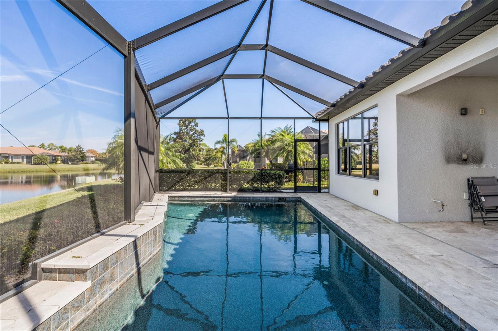 Discover the perfect blend of comfort and elegance in this stunning Arezzo floor plan, ideal for both seasonal escapes or full-time living. This meticulously maintained home features 3 spacious bedrooms, 2 baths, and a versatile den, offering ample space for both relaxation and productivity. The 2021-installed pool, complete with a screen enclosure, boasts cutting-edge features such as heating, air-conditioning, an auto-fill, and auto-drain system, all easily managed through an app that controls the waterfalls and lighting.Enhancing the home's security and efficiency, Hurricane Impact Windows and Doors provide peace of mind, while the extended garage, featuring a 4-foot extension and storage cabinets on two walls, offers ample space for vehicles and hobbies. The property is equipped with a Whole House Water Softener and Filtration System, a Natural Gas Instant Hot Water Heater, and is plumbed for an outdoor kitchen with a natural gas connection, perfect for entertaining and culinary adventures.The fenced-in side yard with synthetic turf provides a low-maintenance outdoor oasis, while the interior showcases exquisite details such as tray ceilings with crown molding, 10 foot ceilings, 8 foot doors, new LVT plank flooring, and fresh paint throughout. The kitchen is a chef's dream with a New Calcutta Gold Quartz countertop featuring an island extension and waterfall design. Additional conveniences include a well-appointed laundry room with upper and lower cabinets and a laundry sink, California closets in all bedrooms, and new blinds/roll shades throughout, including an electric blackout blind in the primary bedroom.This home is also wired with a home speaker system, including outdoor patio speakers, perfect for enjoying music and entertainment both indoors and out. Located in the desirable Esplanade at Artisan Lakes, residents enjoy resort-style amenities such as two luxurious pools, a state-of-the-art fitness center, tennis and pickleball courts, and a full calendar of social events, ensuring an active and vibrant lifestyle. Schedule your private tour today!