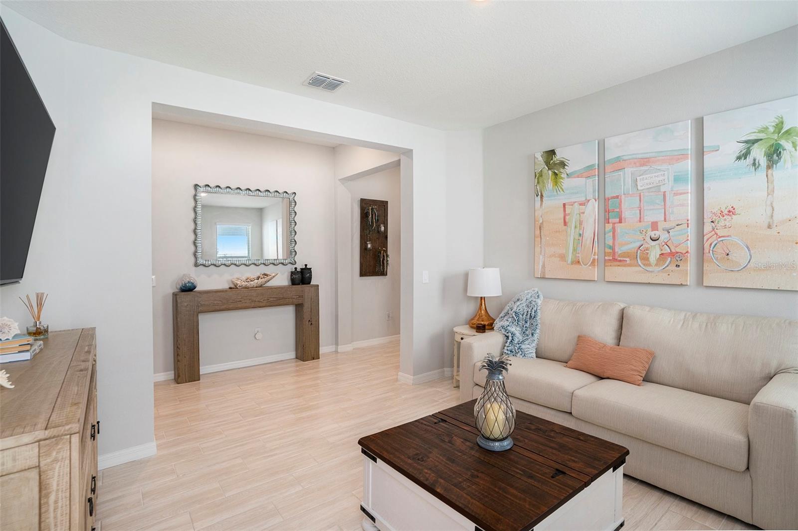 Welcome to 10914 Fieldstone Dr -- a beautifully upgraded Taylor Morrison Antigua model home filled with natural light and designed for modern living. Step inside to an open floor plan enhanced by 10-foot ceilings, upgraded tile flooring, and elegant fixtures that create a bright, airy, and sophisticated atmosphere throughout.The heart of the home is the open-concept Chef's kitchen, featuring stainless steel appliances, quartz countertops, a gas cooktop, and plenty of space for cooking, gathering, and entertaining. In addition to that, the kitchen features an oversized butler's pantry. The seamless flow from kitchen to living and dining areas makes everyday living effortless.All bedrooms are generously sized with expansive closet space, offering comfort and practicality. The large primary suite includes a spa-like ensuite bathroom with modern finishes and ample storage.Enjoy peaceful mornings and relaxing evenings on the spacious screened-in lanai featuring pocket sliders and overlooking a serene pond--your own private outdoor retreat. Additional upgrades include a tankless water heater, water softener, and newly installed gutters, and built-in garage storage racks providing efficiency and long-term value.Located in a quiet, well-maintained neighborhood just minutes from shopping, dining, and entertainment, this home perfectly blends comfort, convenience, and style. Property is also has easy access to I-75 and is in close proximity St.pete, Tampa, and Sarasota. The home is also close to the new construction of the long awaited Parrish hospital. Don't miss your chance to make this stunning property yours. Schedule your showing today!