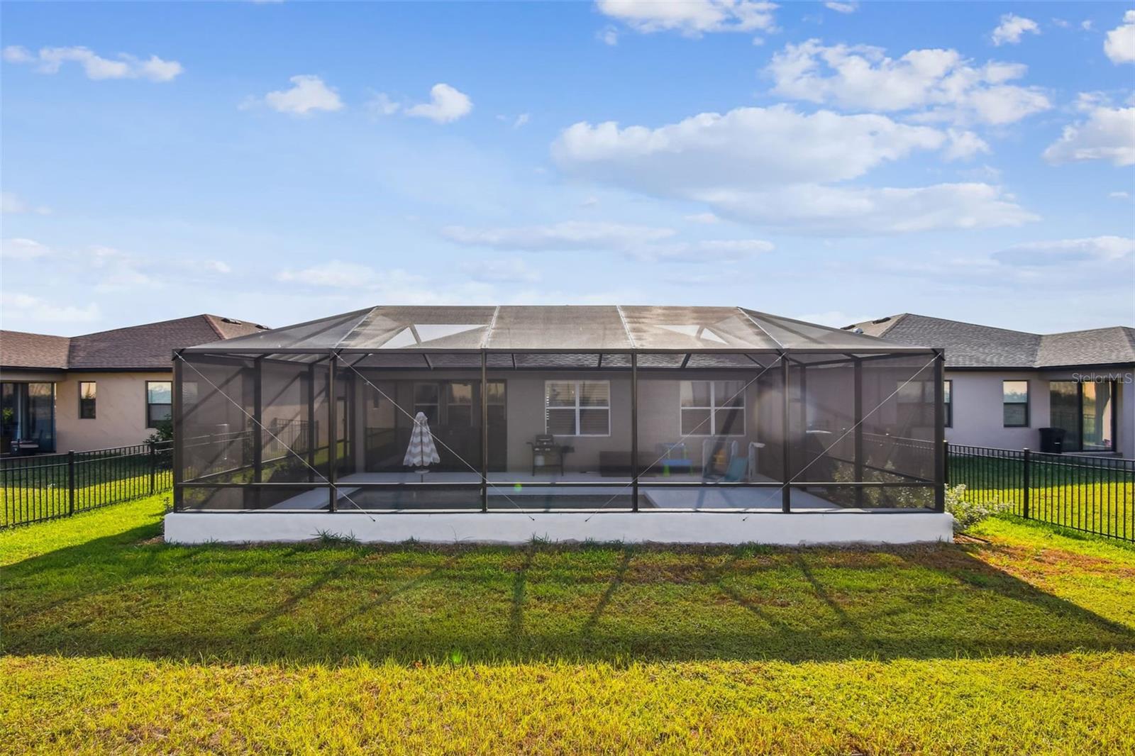 A Rare Opportunity -- Better Than New, 2024 built by Inland HomesWelcome to a residence that surpasses the appeal of new construction, with the exceptional benefit of a private pool from day one. Whether the air is crisp or the Florida sun is at its peak, the combination heater and chiller system ensures your pool is always the perfect temperature. With required safety alarms and gates already in place, peace of mind comes built in. The sundeck provides an inviting space for relaxation and play, making this outdoor retreat a true extension of the home.Inside, the attention to detail continues. The chef-inspired kitchen blends style and function with a generous walk-in pantry and an intuitive layout ideal for both everyday living and elevated entertaining. Enjoy memorable evenings in the screened-in lanai, perfectly suited for dining alfresco during the cooler months. The expansive open-concept living area effortlessly accommodates everything from casual gatherings to relaxing sit down dinner parties.Just off the main living space, a beautifully appointed pocket office offers an elegant solution for managing the household, organizing daily life, or creating a serene work-from-home environment.The primary suite is a luxurious sanctuary, featuring an ensuite bath with dual sinks, a dedicated vanity area, and an exceptionally spacious walk-in closet--large enough to rival a boutique dressing room.A thoughtfully designed split floor plan enhances privacy, placing the primary suite on one side of the home while guests or family enjoy their own wing, complete with a well-appointed full bath featuring a tub.Additional notable features and upgrades include: Interior laundry room for added convenience Water softener Expanded driveway offering graceful entry and practicality Light fixtures and ceiling fans that elevate each space Custom interior shutters in the living area for a refined, timeless aesthetic Generator transfer switch ensuring effortless preparednessThis exceptional residence offers the ease of a turnkey home with the elevated feel of a thoughtfully refined living experience. For buyers seeking comfort, beauty, and premium enhancements without the wait of new construction, this home stands in a class of its own.