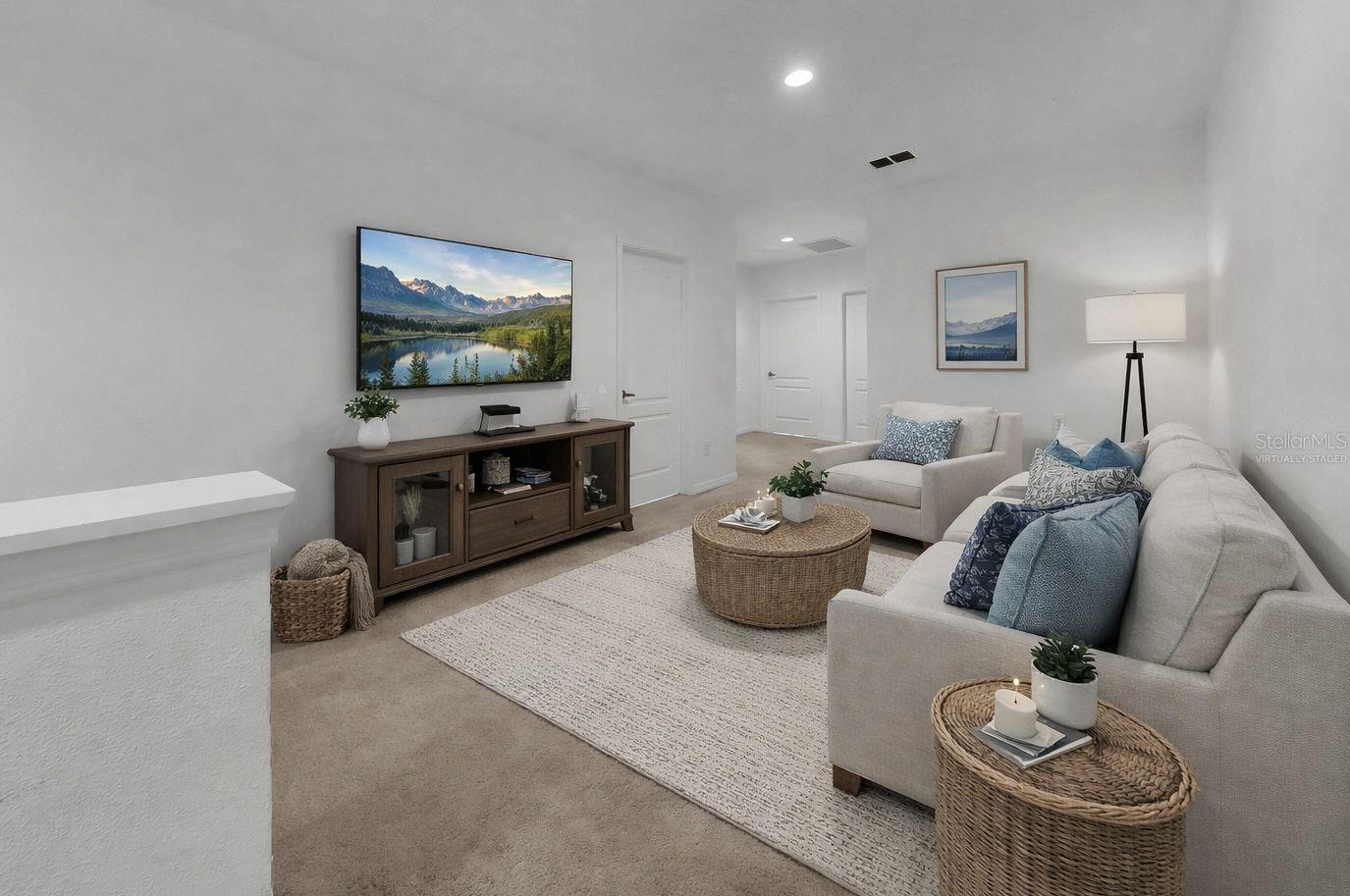 One or more photo(s) has been virtually staged. Welcome home to 8522 Canyon Creek Trail! This 3-bedroom, 2.5-bath home offers 1,822 square feet of comfortable living in the friendly, gated community of North River Ranch. Built in 2021, it's been thoughtfully designed with space and convenience in mind. As you step inside, you'll love the open floor plan that connects the living room, kitchen, and dining room--perfect for relaxing or entertaining. The kitchen features a large pantry and easy access to a convenient half bath. Just beyond the dining area, sliding doors open to a screened-in, covered lanai where you can unwind while taking in peaceful water views. There's even an extra storage unit off the lanai to keep outdoor items tidy and within reach. Upstairs, a spacious bonus loft offers a flexible space for a playroom, home office, or cozy reading corner. All three bedrooms are located on the second floor, including a generous primary suite with a large walk-in closet and a private bathroom featuring a double vanity and linen closet. The upstairs laundry room and additional storage closet off the loft make daily living simple and organized. Living in North River Ranch means you'll also enjoy access to multiple community amenity centers--including the highly sought-after Camp Creek, featuring a sparkling resort-style pool, double loop water slides, cabanas, and plenty of opportunities for fun and connection with neighbors. Continue your outdoor activities at the Pickleball courts, the Bike Pump Park, and the Great Lawn--which is perfect for picnicking, yoga, or playing catch. Camp Creek's Clubhouse also includes a lounge area, a grab-and-go cafe, a business center, and individual workspaces. Just across the Great Lawn is the Outpost Activity Center for after-school games, family nights, birthday parties, and more. From the relaxing water view to the modern layout and amazing community amenities, this home truly has it all--a perfect mix of comfort, convenience, and resort-style living.
