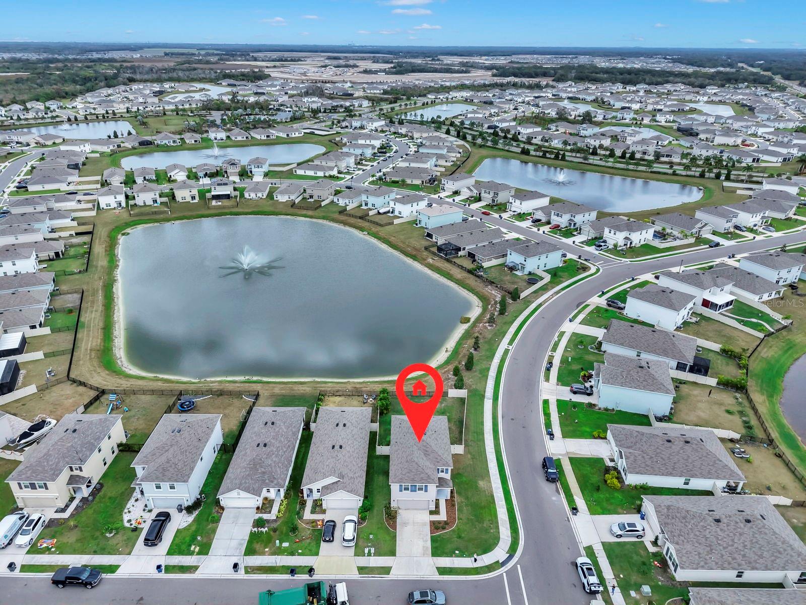 One or more photo(s) has been virtually staged. Welcome home to this beautifully updated family retreat! This 4-bedroom, 2.5-bath home sits on a large corner lot with a peaceful water view and plenty of upgrades throughout. Inside, you'll find new light fixtures, ceiling fans, and updated door handles--plus a bright, open layout perfect for family living and entertaining. The kitchen offers a large island, granite countertops, white cabinetry, an extra-large pantry with under-stair storage, and a second pantry off the dining area. The dining area also features a stylish new accent wall and a secluded half bath off to the side for added convenience. Upstairs, brand new carpeting adds comfort and peace of mind. The primary suite features another accent wall, a large walk-in closet with an added window, and an en-suite bathroom with a double vanity, a standing shower, a linen closet, and a secondary closet with a built-in shelving unit. Enjoy a renovated laundry room complete with extra cabinetry, shelving, and a hanging rod--designed for both beauty and function. You'll also love the cozy bonus loft with its own storage closet--perfect for a playroom, home office, or reading nook! Enjoy outdoor living with sliding doors that lead you outside to your private, fenced-in yard. The combination fence includes solid privacy fencing on the sides and elegant black wrought iron along the back to preserve your peaceful water view--plus privacy palms for extra seclusion and a lush oasis. Located within the sought-after Bella Lago community, you'll enjoy wonderful amenities including two resort-style pools, a fitness center, and a playground--ideal for family fun and relaxation. If you're looking for a home that blends function, comfort, and family-friendly design in a stunning setting, this is the one you've been waiting for!