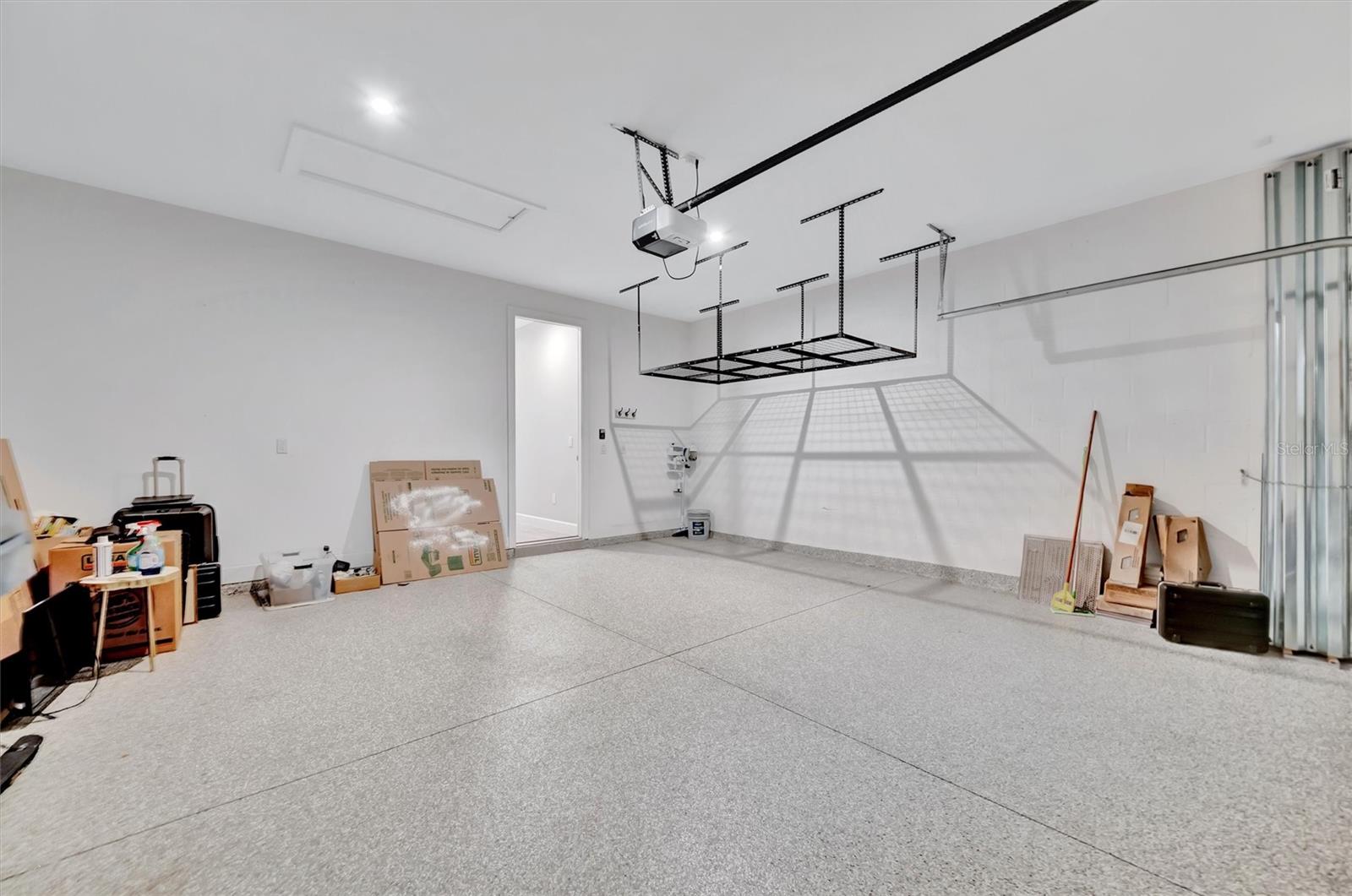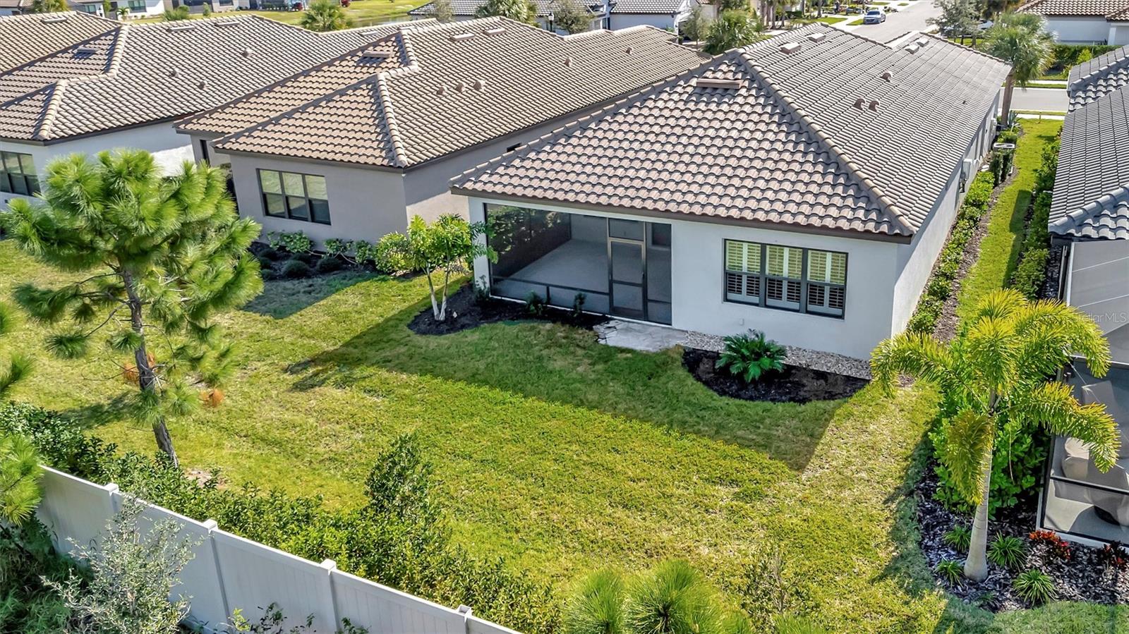 Welcome to refined Florida living in this beautifully appointed Matera model, built in 2022 and located in the highly sought-after Esplanade at Artisan Lakes. This thoughtfully designed 3-bedroom, 2.5-bath residence blends timeless elegance with modern comfort, beginning with an inviting entryway and striking front door that set the tone upon arrival. Wood-look tile flooring flows seamlessly throughout the main living areas, creating warmth and continuity. The chef's kitchen serves as a true centerpiece, featuring quartz countertops, a walk-in pantry with custom built-ins, an upgraded kitchen faucet, and a whole-home water filtration system, ideal for both everyday living and entertaining. Plantation shutters throughout the home and an electric shade on the sliding doors add style and privacy, while the oversized lanai offers a serene, peaceful view perfect for morning coffee or evening relaxation. The owner's suite is a private retreat with dual sinks, a spacious walk-in shower, and a custom-designed walk-in closet. Ceiling fans enhance comfort in both the owner's suite and living area. Additional highlights include a 2-car garage with epoxy flooring and overhead storage, beautifully landscaped surroundings, and exceptional attention to detail throughout. Homeownership includes access to Esplanade's resort-style amenities, including a state-of-the-art fitness center, lifestyle director, event spaces, tennis, pickleball, bocce, walking trails, dog parks, playgrounds, multiple pools, cabanas, fire pits, and The Venue amenity center. HOA services include cable, internet, lawn maintenance, and irrigation. Ideally located near shopping, dining, healthcare, and major highways, with easy access to Sarasota, St. Petersburg, and Tampa, this home offers exceptional value in one of the area's premier lifestyle communities. An exceptional opportunity within Esplanade at Artisan Lakes, offered for private tour by appointment.