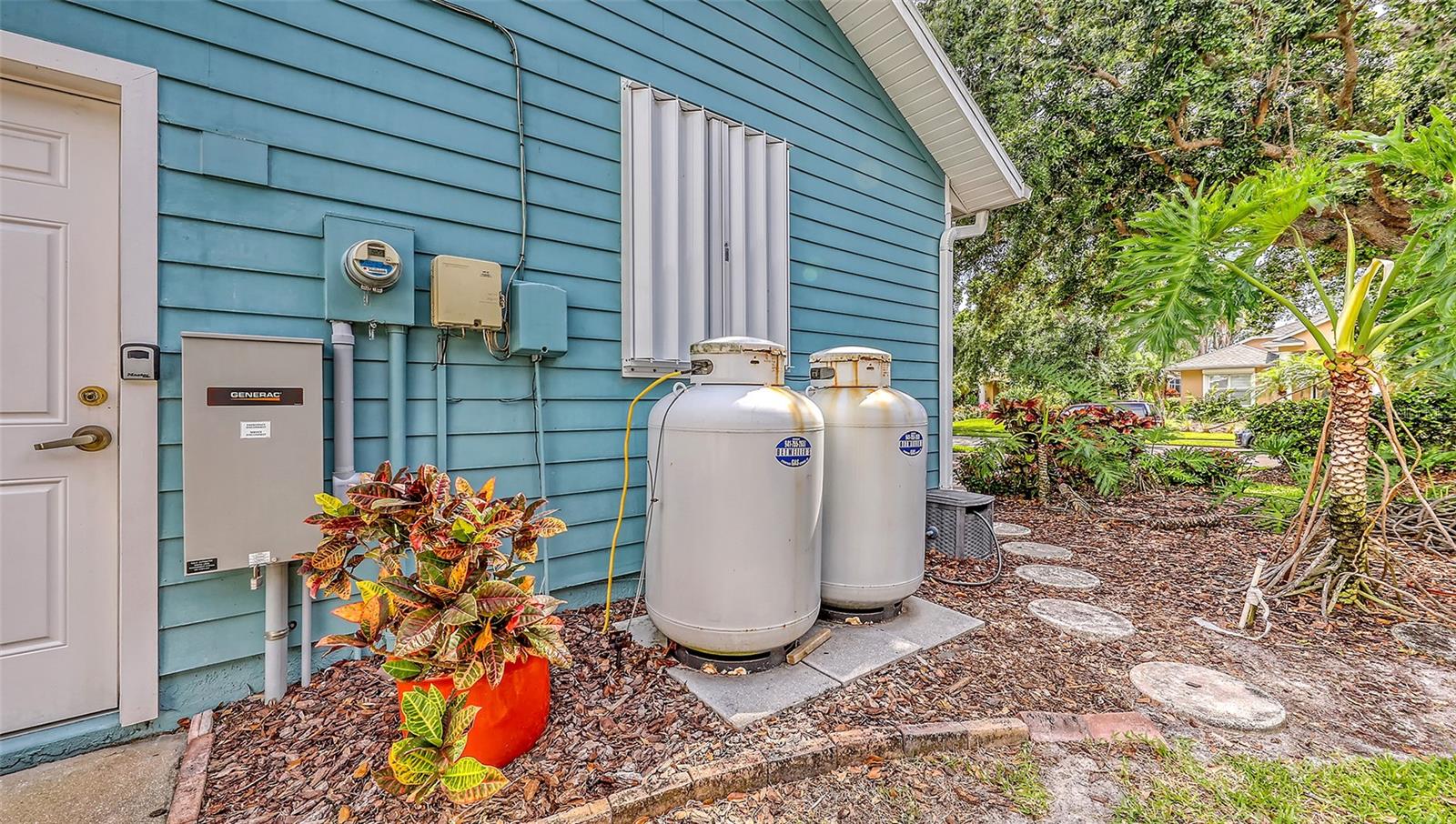 Exterior: Fire Pit, French Doors, Garden, Hurricane Shutters, Lighting, Private Mailbox