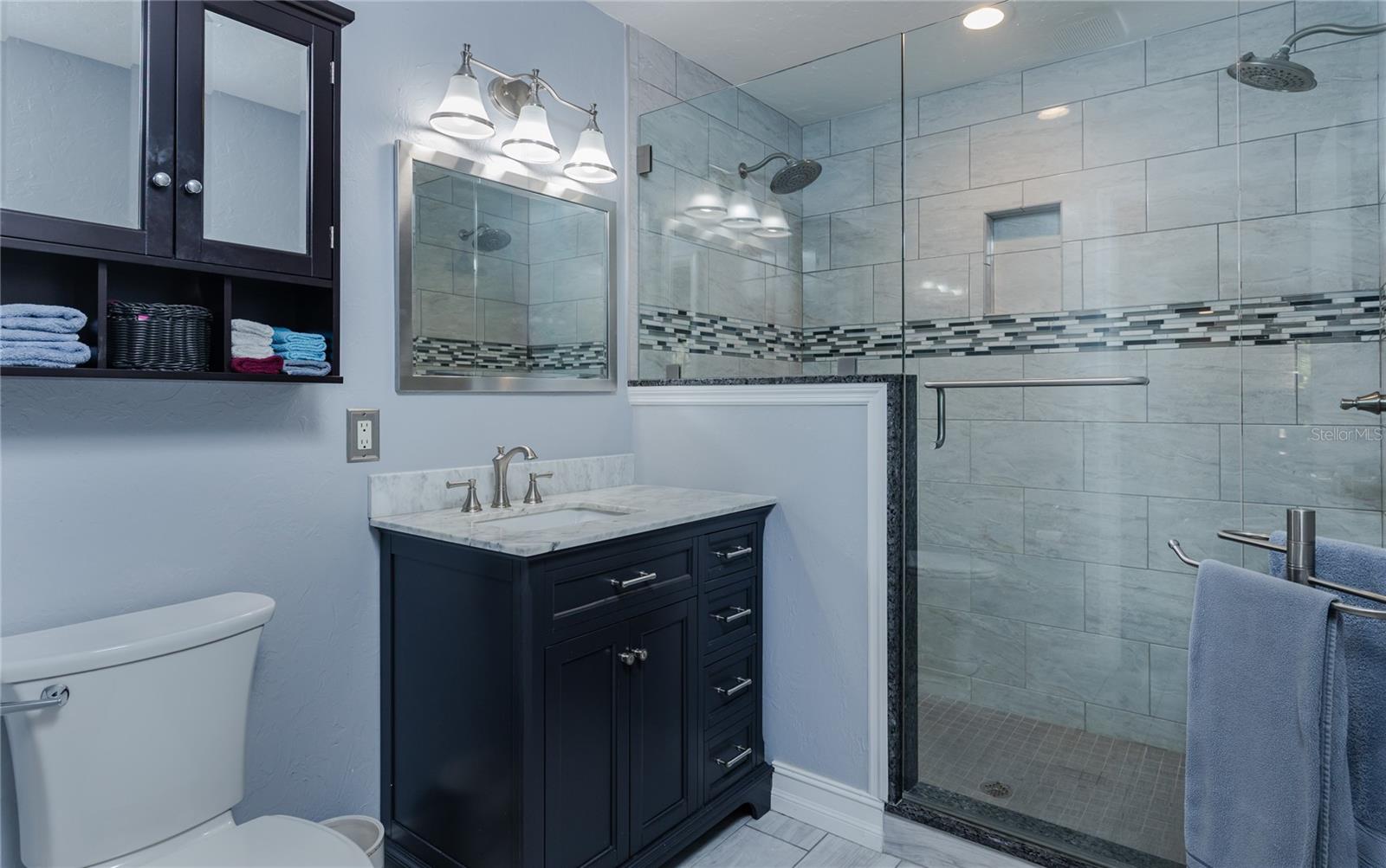 THIS UNIQUE AND RARE PROPERTY PRESENTS AN EXCEPTIONAL OPPORTUNITY for car enthusiasts, collectors, or anyone in need of additional storage or enclosed space. Situated on 3/4 ACRE, this 3-bedroom, 2-bathroom residence features a substantial 2,400 SQ. FT. (40x60) OUTBUILDING that is fully UNDER AIR. The structure includes FOUR GARAGE DOORS, with one bay designed for DRIVE-THROUGH ACCESS, all situated on a 10-inch thick concrete slab. The expansive backyard serves as an entertainment haven, complete with a WOODEN DECK, wood-burning STONE GRILL, and an enclosed/screened Bullfrog HOT TUB. The home boasts a fully REMODELED KITCHEN equipped with newer stainless steel appliances, updated bathrooms, and TILE FLOORING throughout. Additionally, it features a CENTRAL VAC system for both the house and outbuilding. Other notable attributes include a newer ROOF (installed in 2017), an A/C (updated in 2019), RV PARKING with a 30-amp plug, and privacy fencing. The property is located NOT IN A FLOOD ZONE and is equipped with HURRICANE SHUTTERS, ensuring peace of mind. Conveniently situated near shopping, dining, and beaches, this property truly represents a win-win opportunity.