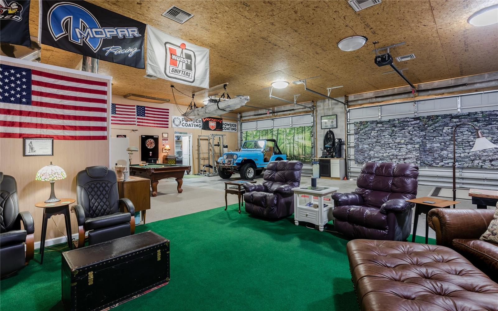 Garage Features: Covered, Driveway, Garage Door Opener, Golf Cart Garage, Golf Cart Parking, Ground Level, Other, Oversized, Parking Pad, RV Access/Parking, Garage, Workshop in Garage