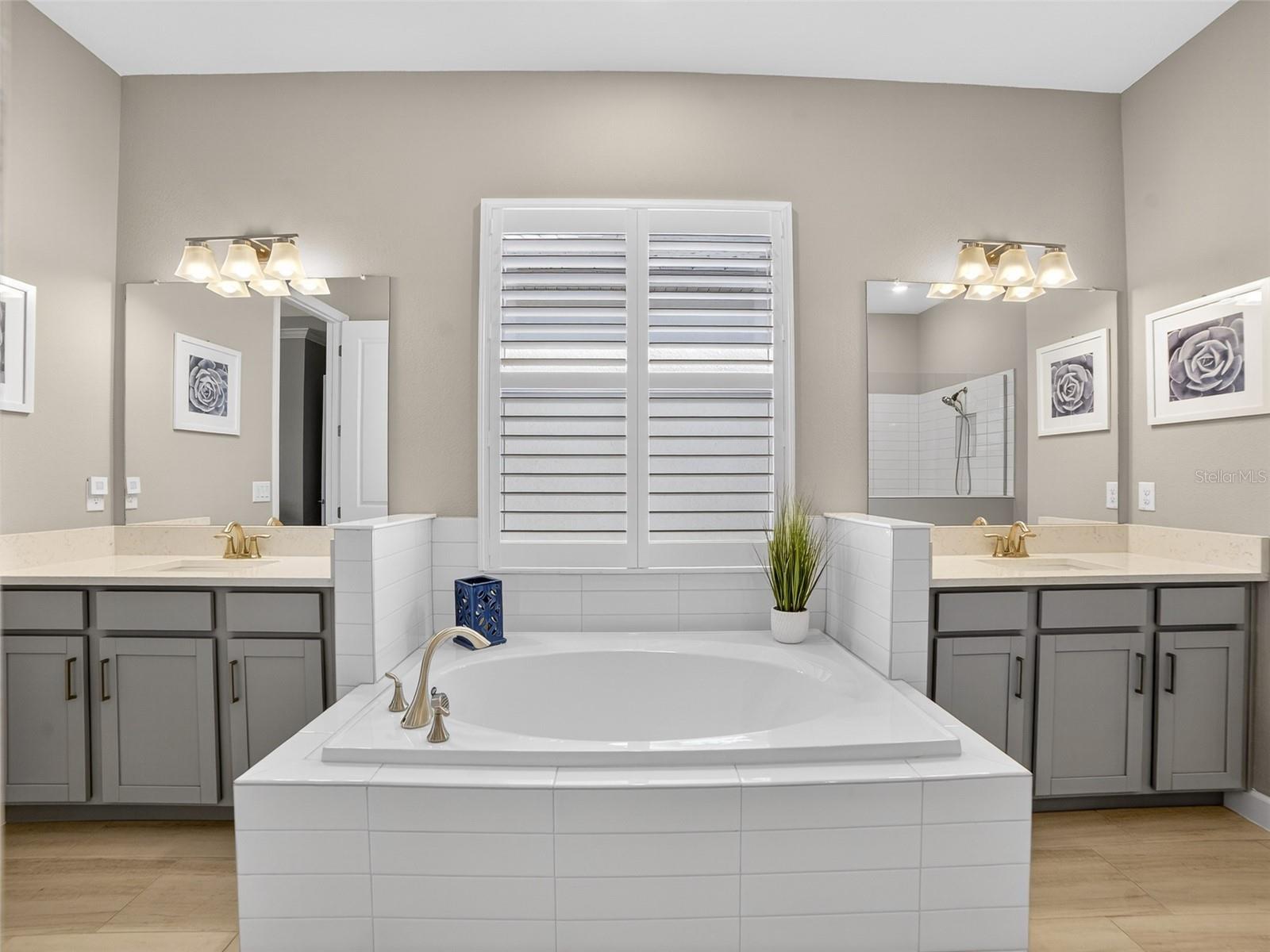 Welcome to refined Florida living in this better-than-new Lennar Daybreak residence, where timeless elegance meets modern sophistication. Thoughtfully designed for both gracious entertaining and effortless everyday living, the open-concept floor plan seamlessly unites the living room, dining area, and chef's kitchen into a light-filled, inviting space accented by crown molding and recessed lighting.The chef-inspired kitchen is a true showpiece, featuring quartz countertops, a generous center island, soft gray cabinetry with crown molding, premium stainless steel appliances--including a GE Advantium oven/microwave, gas cooktop, range hood, and dishwasher--and a striking Italian glass tile backsplash. A stylish coffee bar just off the kitchen adds both function and charm, perfect for morning rituals or entertaining guests.The private living quarters offer three spacious bedroom suites and 3.5 baths, each providing comfort, privacy, and a retreat-like atmosphere. The owner's suite is a serene sanctuary with tranquil water views, a spa-inspired bath with walk-in shower, soaking garden tub, quartz countertops, gray cabinetry, and a custom walk-in closet. Two additional guest suites each feature private en suite baths--one with a walk-in shower and the other with a tub/shower combination--ideal for hosting family and friends.Outdoor living shines on the extended, screened lanai with epoxy flooring, where peaceful water views create the perfect setting for morning coffee or sunset relaxation. Curb appeal is enhanced by a tile roof, Bahama-style exterior, and brick paver driveway, while the three-car garage offers epoxy flooring and additional overhead storage.Notable upgrades include custom interior paint, plantation shutters throughout, designer lighting and ceiling fans in all living areas and bedrooms, a well-appointed laundry room with custom cabinetry, hurricane-rated glass front door, gas tankless hot water heater, whole-house water softener with micron sediment filter, Sentricon termite system, exterior gutters, water softener, custom landscaping with low-voltage lighting, and fresh interior paint.Located in Prosperity Lakes, a premier resort-style 55+ master-planned community in Parrish, residents enjoy future access to a clubhouse, resort pool, fitness center, pickleball courts, and an active social calendar. Convenient to the Little Manatee River, Gateway Commons shopping and dining, and I-75 and I-275, offering easy access to Tampa Bay, Bradenton, Sarasota, and St. Petersburg.This is more than a home--it's a luxury Florida lifestyle designed for beauty, comfort, and effortless living.