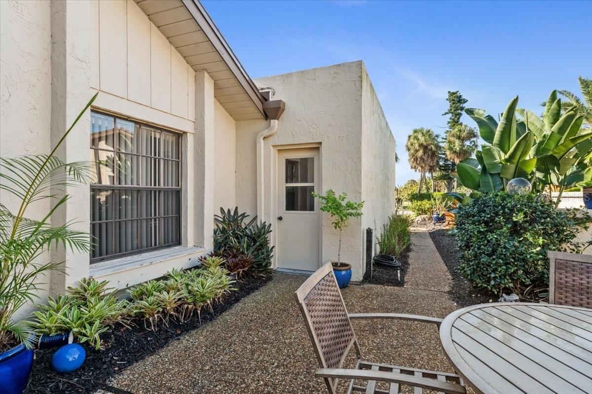 Exterior: Courtyard, Private Entrance, Rain Gutters, Sliding Doors