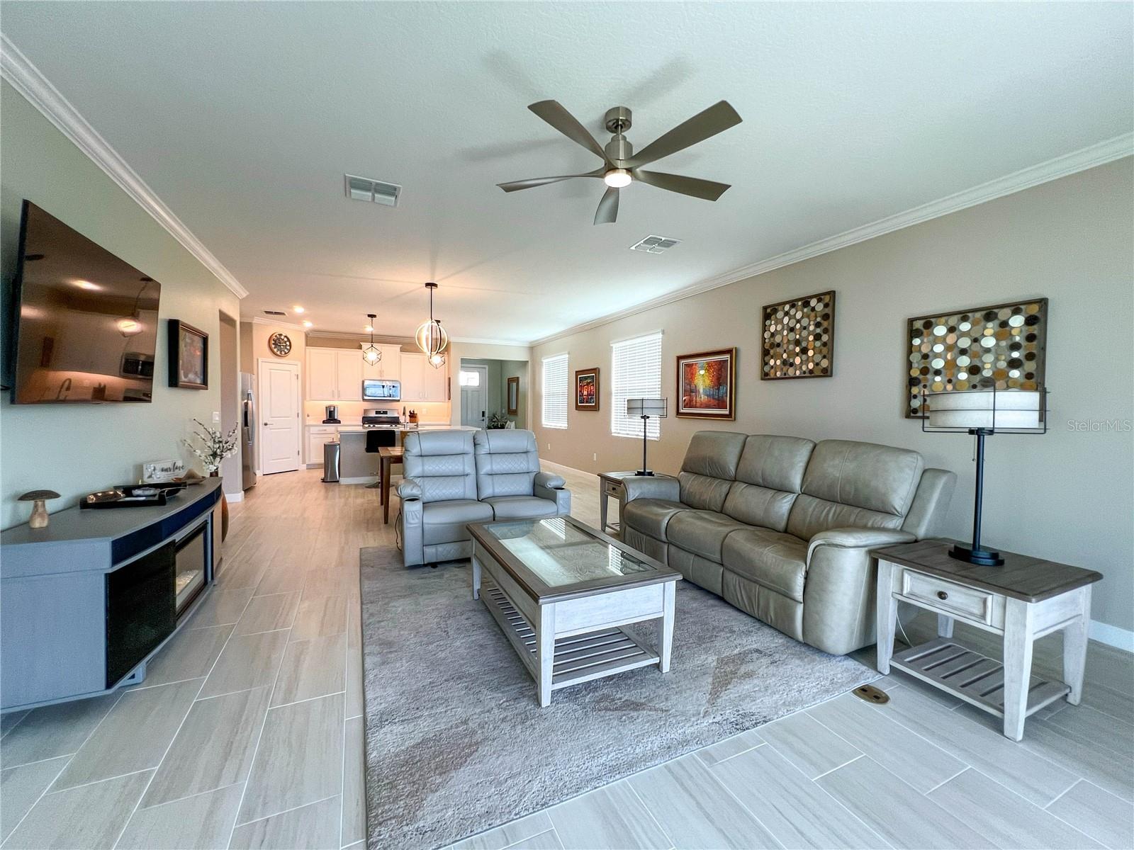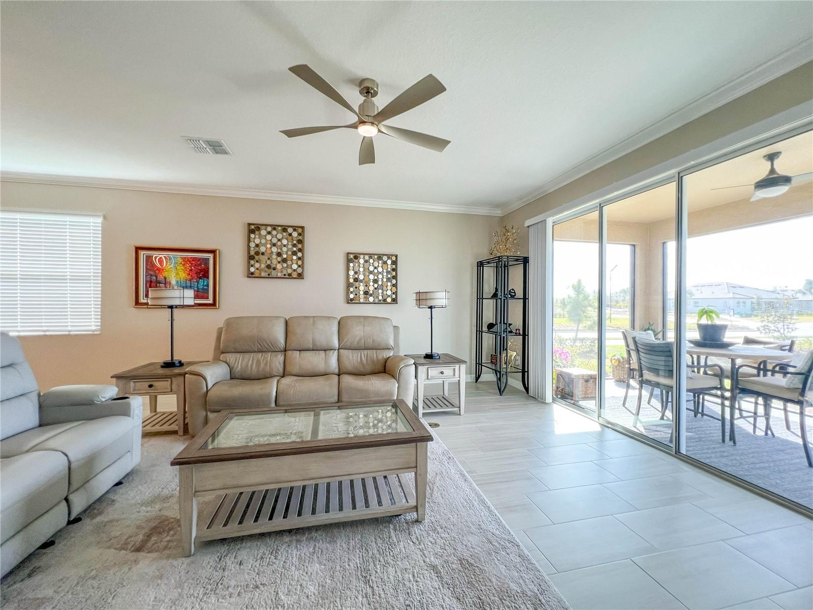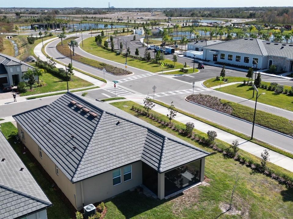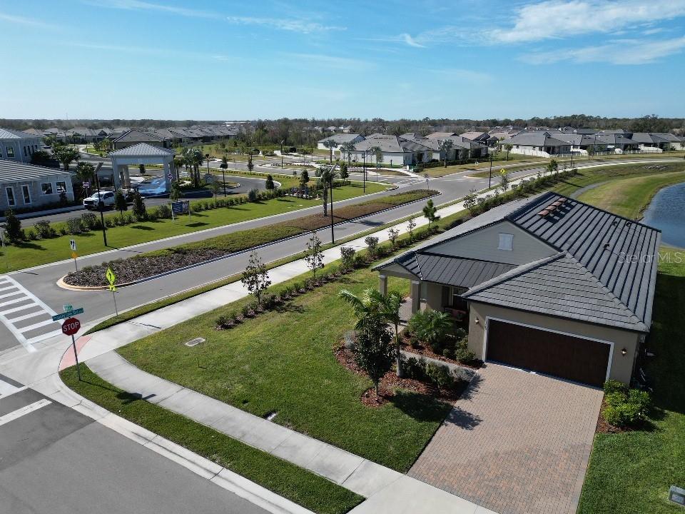Enjoy refined, low-maintenance living in this beautifully appointed 2-bedroom, 2-bath home with a versatile den/office, perfectly situated on a premium corner lot within a vibrant 55+ community. The open-concept design and desirable split-bedroom floorplan create an ideal balance of comfort and privacy, whether hosting guests or enjoying quiet everyday living. Ceramic tile throughout and plush carpet in the bedrooms add warmth and continuity in the home. The thoughtfully designed kitchen is both elegant and functional, featuring stainless steel appliances, quartz countertops, a spacious walk-in pantry, and a large island with sink and dishwasher--perfectly positioned to capture peaceful pond views while cooking and entertaining. The kitchen flows seamlessly into the living and dining areas, enhancing the home's inviting atmosphere. A dedicated indoor laundry room with space for a full-size washer and dryer adds everyday convenience. The primary suite offers a tranquil retreat, showcasing calming water views through expansive windows, a generous walk-in closet, and a private en suite bathroom complete with a walk-in shower, dual-sink vanity and a separate water closet. Both bathrooms feature quartz countertops, adding a touch of luxury and cohesion throughout the home. Step outside to the screened-in patio and unwind while overlooking the serene pond, an ideal setting for morning coffee or evening relaxation. An oversized two-car garage provides ample room for vehicles and additional space for a golf cart, supporting an active and social lifestyle. Located directly across the street is an impressive lineup of resort-style amenities, including a beautiful clubhouse for gatherings and events, a modern fitness center, 4 pickleball courts, bocce ball court, children's playground, tennis court, and a luxurious pool featuring a zero entry walk-in, sun shelf, plenty of private lounging areas, hammocks, and a grill area all featuring waterfront views. Ideally located near the Little Manatee River and Gateway Commons--offering upscale shopping, dining, and entertainment--this home delivers the perfect blend of comfort, convenience, and active-adult living.