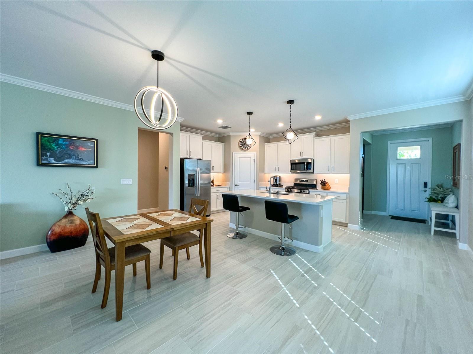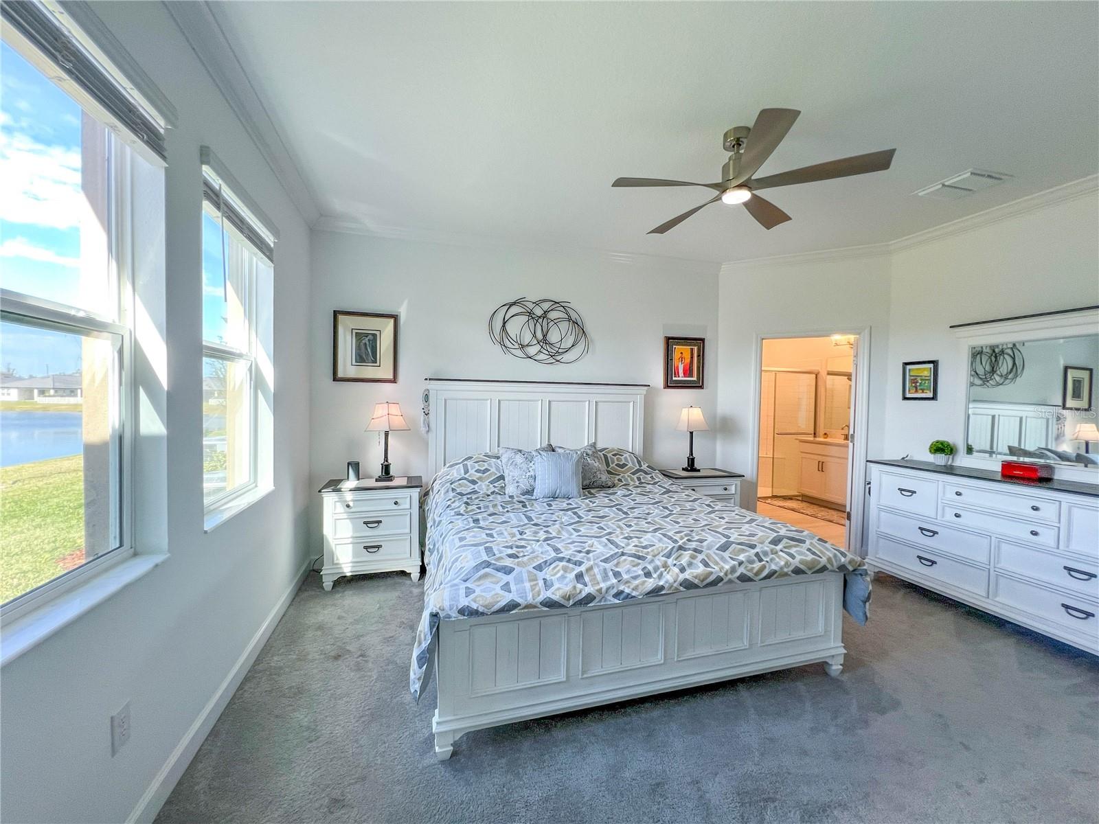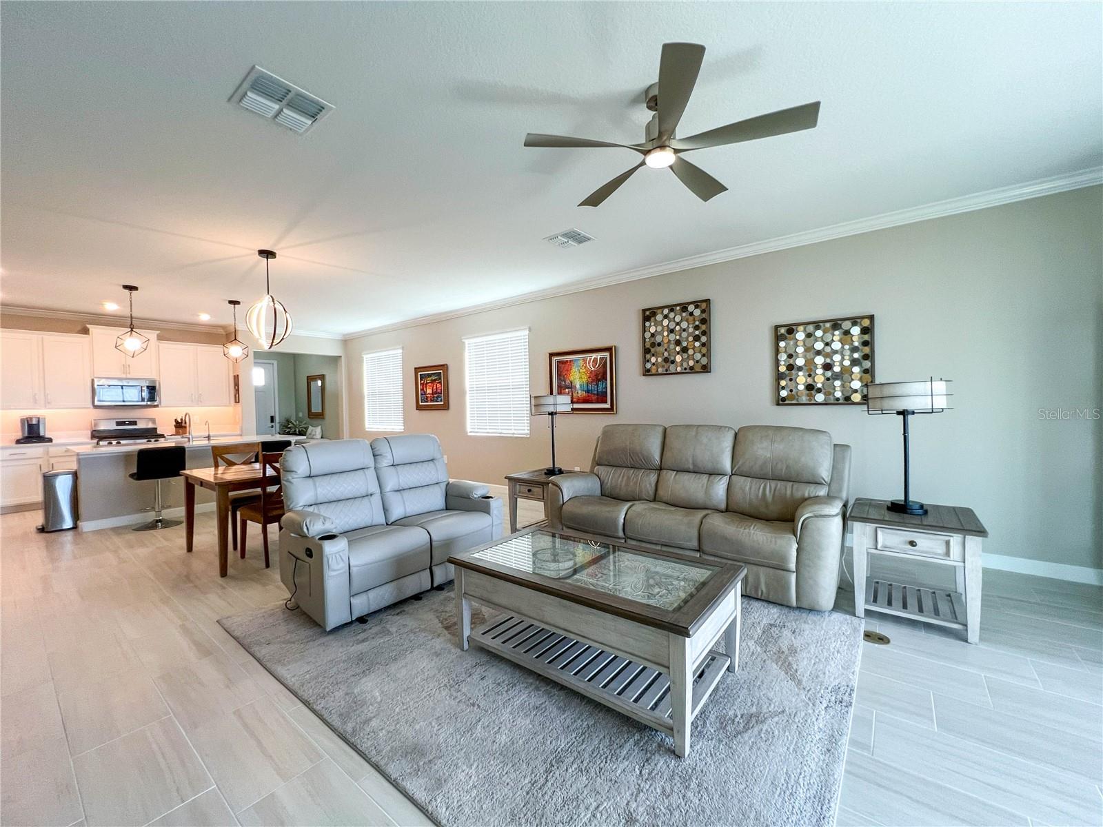 Enjoy refined, low-maintenance living in this beautifully appointed 2-bedroom, 2-bath home with a versatile den/office, perfectly situated on a premium corner lot within a vibrant 55+ community. The open-concept design and desirable split-bedroom floorplan create an ideal balance of comfort and privacy, whether hosting guests or enjoying quiet everyday living. Ceramic tile throughout and plush carpet in the bedrooms add warmth and continuity in the home. The thoughtfully designed kitchen is both elegant and functional, featuring stainless steel appliances, quartz countertops, a spacious walk-in pantry, and a large island with sink and dishwasher--perfectly positioned to capture peaceful pond views while cooking and entertaining. The kitchen flows seamlessly into the living and dining areas, enhancing the home's inviting atmosphere. A dedicated indoor laundry room with space for a full-size washer and dryer adds everyday convenience. The primary suite offers a tranquil retreat, showcasing calming water views through expansive windows, a generous walk-in closet, and a private en suite bathroom complete with a walk-in shower, dual-sink vanity and a separate water closet. Both bathrooms feature quartz countertops, adding a touch of luxury and cohesion throughout the home. Step outside to the screened-in patio and unwind while overlooking the serene pond, an ideal setting for morning coffee or evening relaxation. An oversized two-car garage provides ample room for vehicles and additional space for a golf cart, supporting an active and social lifestyle. Located directly across the street is an impressive lineup of resort-style amenities, including a beautiful clubhouse for gatherings and events, a modern fitness center, 4 pickleball courts, bocce ball court, children's playground, tennis court, and a luxurious pool featuring a zero entry walk-in, sun shelf, plenty of private lounging areas, hammocks, and a grill area all featuring waterfront views. Ideally located near the Little Manatee River and Gateway Commons--offering upscale shopping, dining, and entertainment--this home delivers the perfect blend of comfort, convenience, and active-adult living.