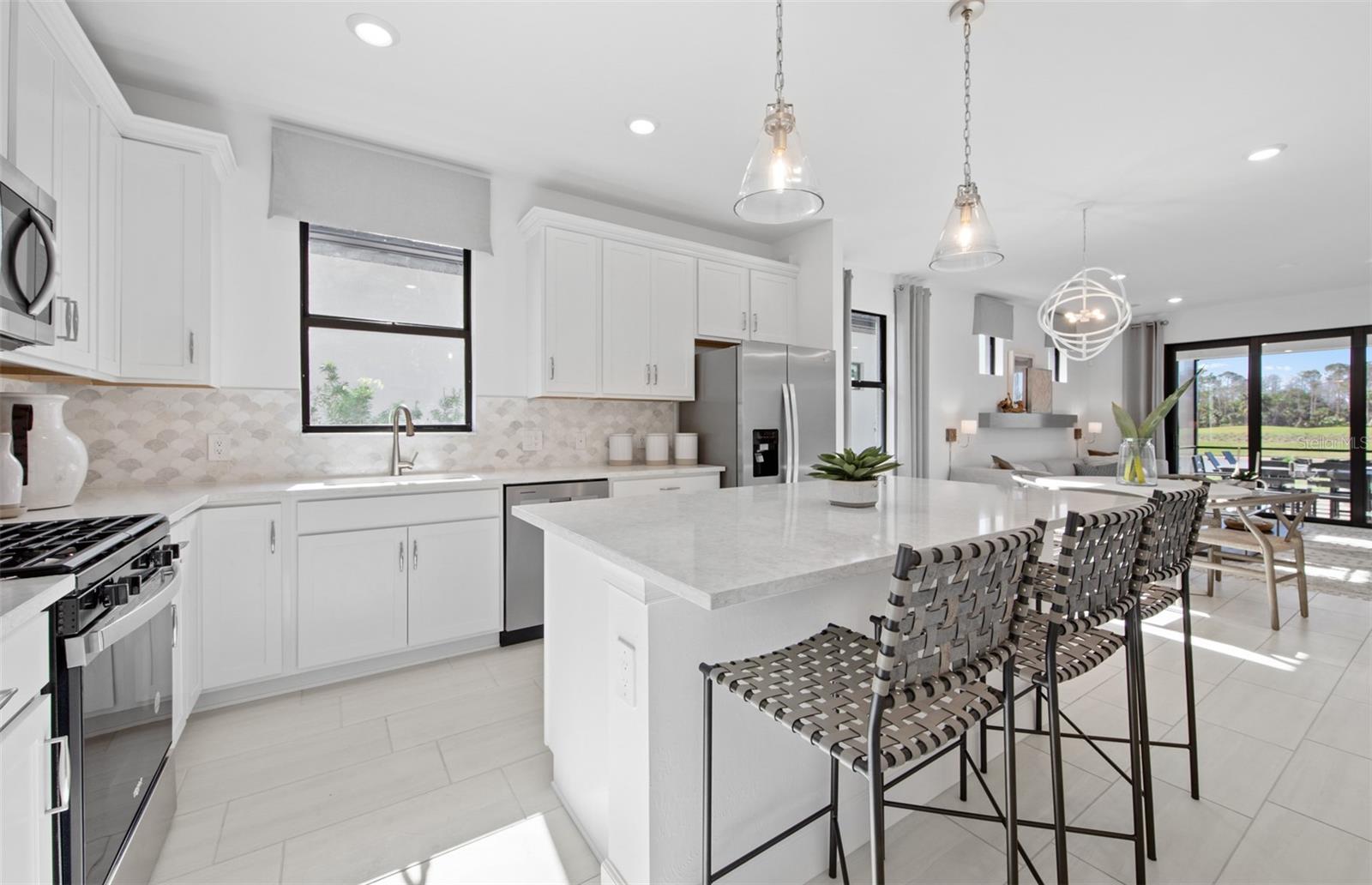 Under Construction. This stylish Contour home in Bradenton's Seaflower community offers modern coastal living with tile flooring, 8' interior doors, a bright open layout, and a gourmet kitchen featuring built-in appliances, white cabinetry, and quartz countertops. With 2 bedrooms, 2 bathrooms, and a versatile flex room ideal for work or hobbies, the home blends comfort and functionality in a prime location close to shopping, dining, and Gulf Coast beaches.