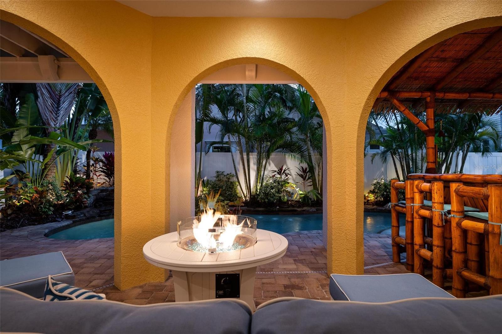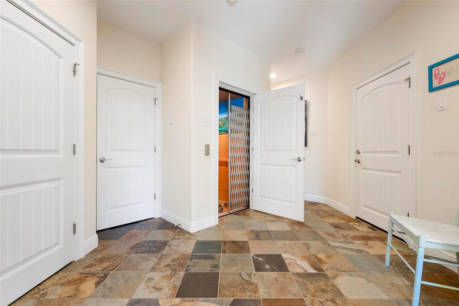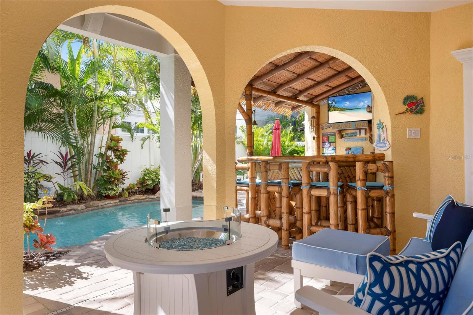 From sunrise to sunset, stunning Gulf views throughout the house. One of the most outstanding features of this property is the expansive rooftop deck--an irreplaceable amenity due to current height restrictions. From this vantage point, take in breathtaking Gulf sunsets, views of the Sunshine Skyway Bridge, and sweeping 360-degree panoramas of the island and surrounding waters. The elevated position of the street further enhances views and peace of mind. The home was thoughtfully designed by award winning architect Emily Anne Smith. The floor plan with four bedrooms, including two luxurious primary suites. Every bedroom features a private en-suite bathroom, complemented by two additional half bathrooms for a total of six bathrooms. A separate washer and dryer add convenience. The layout is designed to maximize natural light and capture views from sunrise to sunset. Both living levels feature wrap around decks with large seating and lounging areas. The second living level hosts a spacious primary suite with heated bathroom floors, a jacuzzi-style soaking tub, largeshower, and dual vanities. This level also includes two additional en-suite bedrooms, plus a comfortable living area with a half kitchen featuring a sink, refrigerator, microwave, toaster oven, ample cabinetry, and a 48-bottle wine cooler--perfect for guests and family seeking privacy and independence. The third living level showcases an open-concept design with soaring ceilings, where the main kitchen, dining, and living areas all face the Gulf. Enjoy spectacular sunset and skyline views from nearly every angle. This level also features a second primary suite with a king bed and spa-like en-suite bathroom, a separate half bathroom, office workspace, and direct access to the rooftop deck. Outdoor living is equally impressive, highlighted by a resort-style pool with rock waterfall, jet stream fountain, jacuzzi jets, auto-fill system and mature tropical landscaping. A six-foot privacy fence surrounds the property. Entertain with ease at the covered tiki bar equipped with sink, refrigerator, TV, stereo, plus multiple shaded and sun-soaked seating areas. Additional features include a large garage accommodating 2-3 vehicles with 9-foot ceilings, extensive storage, workbenches, elevator, impact-rated PGT windows and doors, metal roof, low-maintenance stucco and Hardie plank exterior, heated slate kitchen floors, plus slate in entrance and storage room, bamboo flooring throughout the rest of the house, Hunter Douglas blinds, and the home is offered fully furnished and move-in ready. The home also features a monitored security system, smart thermostats and an Artificial Intelligence (AI) Camera System with DVR. Never rented, yet zoned for weekly rentals. No hurricane water intrusion in 2024. A truly rare offering on Anna Maria Island on one of the highest elevation and quietest streets with a deeded beach access.