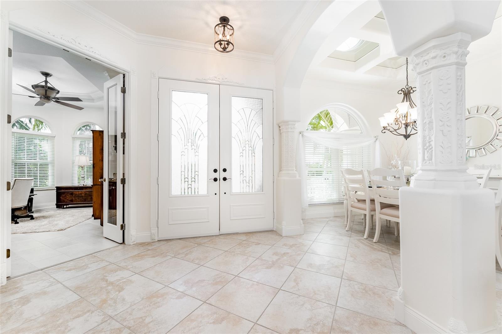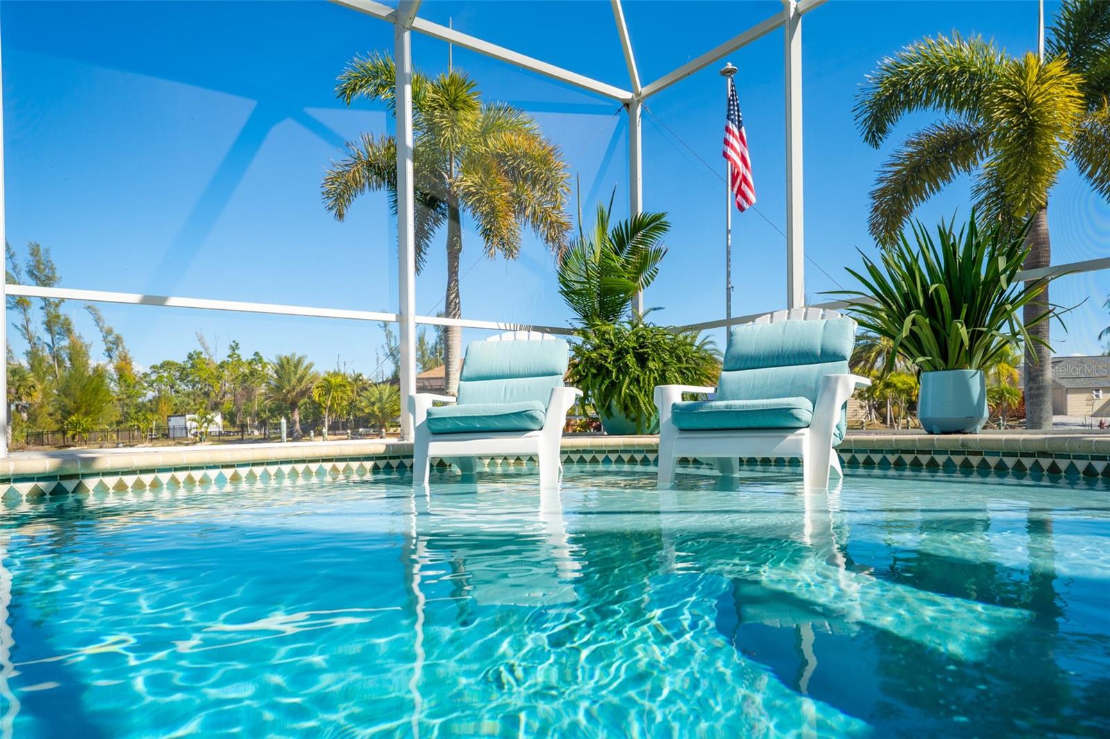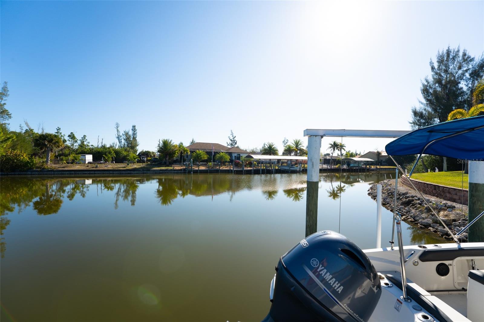 Where your backyard is the water and your garage can hold your vacation home on wheels! This isn't your typical waterfront home--this one is made for boaters, RV owners, and toy collectors.The property offers deep water access (no bridges) to Port Charlotte's boating destinations and open water, substantial garage capacity, and a layout suited for buyers who need space for vehicles, equipment, and family/guests. Situated on a tip lot just under half an acre, the property offers 168 feet of deep waterfront on a wide canal with no bridges, complete with a composite dock with water, electric, and a 10,000-lb boat lift. With a garage built to match your lifestyle and room to entertain or unwind by the water, this is waterfront living done the right way. Starting with the 1,298 sq ft RV-capable garage featuring a 14x16 RV door (13' 8.5" clearance), 41.2 ft in length, a 50-amp RV outlet, pre-wired generator connection, epoxy floor, and interior paint updated in 2025, the property also includes a long brick-paver driveway that provides additional space for vehicle and trailer parking. Inside, the home features an open layout with high ceilings and water views visible from several rooms. The main floor includes three bedrooms--the primary suite and two guest bedrooms with baths--along with a private office, two separate living areas, and a dining space suited for both daily living and entertaining. Custom millwork is featured throughout the home, adding detail and definition to the living areas. The family room includes a built-in wet bar, providing added convenience for gatherings and everyday use. The kitchen serves as a central workspace and gathering area, offering soft-close cabinetry, a large granite island, a custom walk-in pantry, built-in oven, microwave, warming drawer, smooth-top five-burner range, custom hood and stone backsplash. Upstairs, a second primary suite offers additional privacy and flexibility, complete with a bedroom, full bathroom with walk-in shower, kitchenette, living area, and a private balcony overlooking the water--ideal for guests or multigenerational living. The home opens to a backyard designed for both relaxation and entertaining. Outdoor living includes a heated swimming pool with spa, a covered seating area with fireplace, and paver walkways that provide easy access around the yard. Recent updates include impact windows and doors installed in 2023, a tile roof completed in 2022 with additional tiles available, interior and exterior paint 2023, and pool heater 2024. Special features include a whole-house powered attic ventilation fan and a central vacuum system. Schedule your appointment to view this unique home offering superior waterfront access and a full size RV garage.