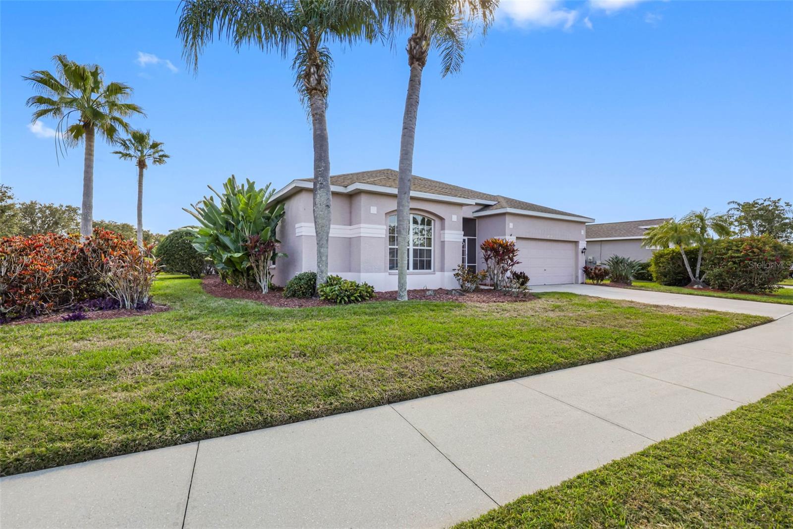 Exterior: Hurricane Shutters, Lighting, Rain Gutters, Sidewalk, Sliding Doors