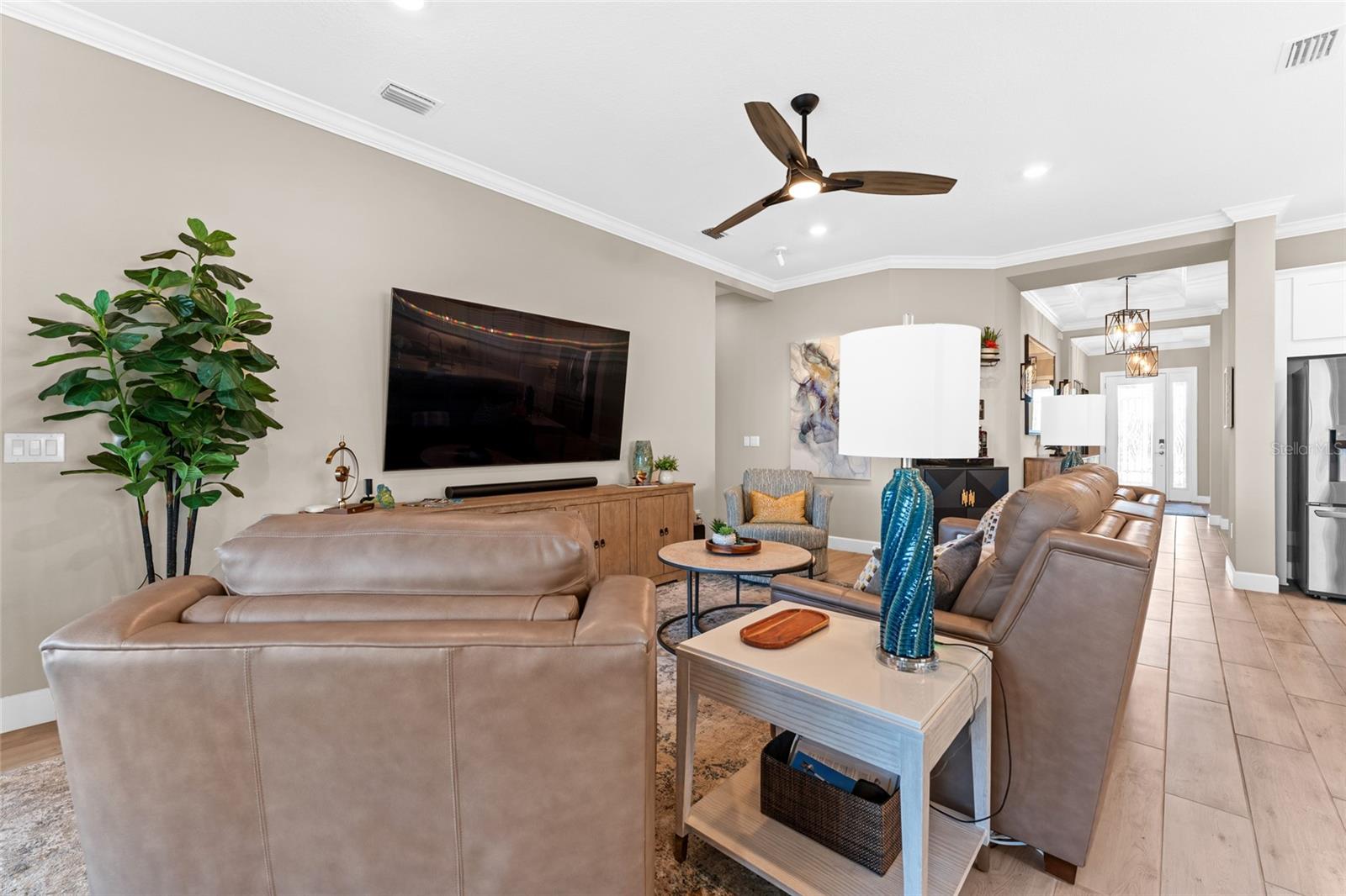 Vacation-style living meets refined design in this extensively upgraded Farnese floor plan--far from builder-grade and thoughtfully enhanced throughout. The open-concept layout is both inviting and highly functional, centered around a beautifully appointed kitchen with an expansive island ideal for everyday meal prep, casual dining, and effortless entertaining. The kitchen flows seamlessly into the light-filled gathering room and adjacent dining space, creating a connected living experience. Pocket sliding glass doors extend the living area to a serene, covered lanai featuring durable polyaspartic flooring--perfect for sunset dinners, weekend gatherings, or quiet mornings with coffee.The primary suite is a tranquil retreat, highlighted by triple windows that flood the space with natural light and frame peaceful water views. The spa-inspired en-suite bath offers dual vanities, a spacious walk-in shower, and a custom walk-in closet designed for both comfort and organization. Guest bedrooms are thoughtfully positioned, each with access to its own full bath--ideal for hosting family and visitors with privacy in mind. The well-appointed laundry room adds exceptional functionality with extensive cabinetry, quartz countertops, and a dedicated utility sink.An impressive list of structural and cosmetic upgrades enhances the home's comfort, style, and efficiency. Features include 10-foot ceilings, 8-foot interior doors, pocket sliding glass doors, and a 2+ tandem garage with polyaspartic flooring. Outdoor living is prepped for customization with outdoor kitchen and fireplace rough-ins, while a widened driveway adds an additional three feet for convenience. Additional upgrades include high-end Minka smart fans throughout, a brand-new never-used smart washer and gas dryer, re-cemented and sealed roof tiles (May 2025), enhanced landscape and lanai lighting (see twilight photos), and added insulation in both the garage door and attic.Located within Esplanade at Artisan Lakes, residents enjoy a true resort-style lifestyle centered around an expansive Amenity Center. Offerings include a 6,000-square-foot facility with a state-of-the-art fitness center, aerobics studio, spa and wellness services, caf, gathering spaces, scenic walking trails, firepit lounges, tennis, pickleball, and bocce courts, along with a resort-style pool and hot tub. Residents also enjoy access to The Venue, featuring an additional pool, a larger hot tub, cornhole courts, and dedicated spaces for outdoor socializing and events. A full-time lifestyle manager curates an active social calendar filled with wellness programs, community events, and culinary experiences--making it easy to stay engaged while still enjoying a relaxed pace of life.Perfectly positioned just off I-75, the community offers convenient access to shopping, dining, medical facilities, golf, parks, and entertainment throughout Palmetto and the greater Tampa Bay area. Travel is effortless with access to three international airports--St. Pete-Clearwater, Tampa, and Sarasota--all within easy reach. Sarasota, St. Petersburg and Tampa offer pristine beaches, professional sporting events, and cultural attractions. Whether you're seeking a full-time residence or a seasonal retreat, this exceptional home--and its vibrant community--offer the very best of Florida living.