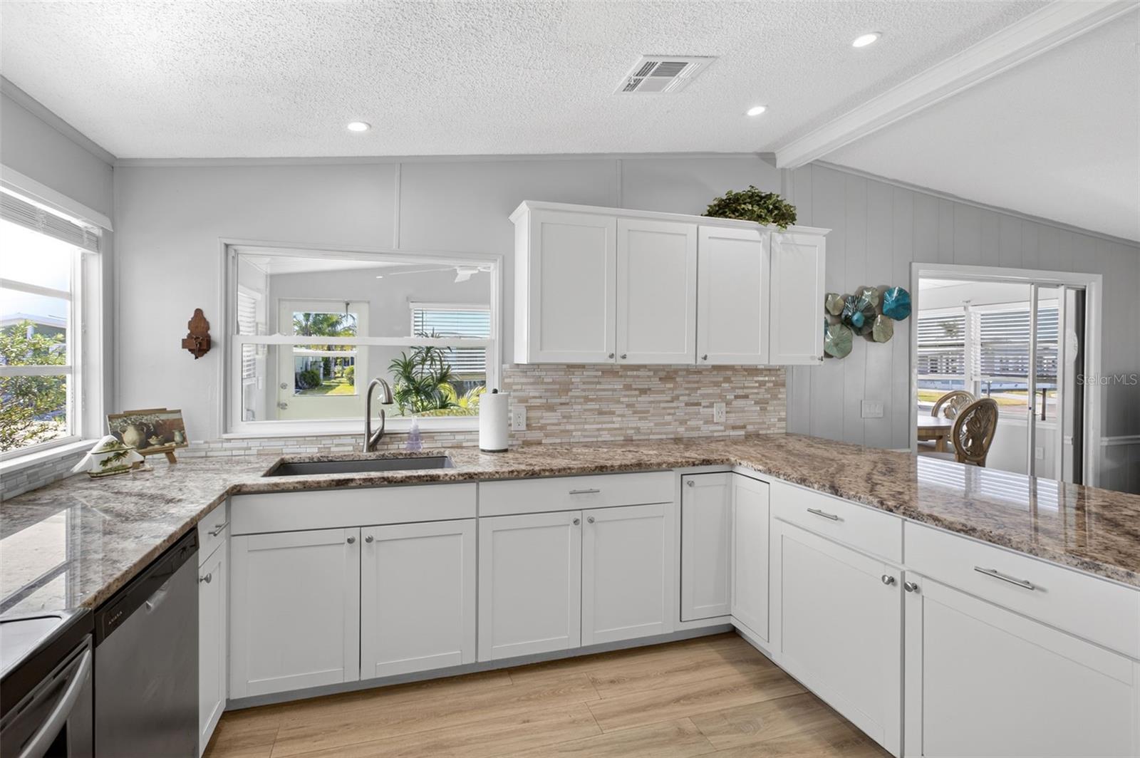 The freshly painted carport leads you to the repainted screened lanai with new lanai furniture. From here, step into the utility room, which features a washer, a dryer, a deep sink, and ample storage. Off the entryway, upper cabinets provide even more storage. Moving further inside, the open concept kitchen, dining room, and living room draw you into this bright space. The remodeled kitchen boasts new cabinets, granite countertops, stainless steel appliances, and a tile backsplash. In the dining area, a wall-to-wall bank of cabinets offers loads of storage. The light-filled living room opens to a front, glass-enclosed Florida room--an ideal spot to enjoy your morning coffee. The Florida room is heated and cooled by a wall A/C unit and includes a door to the front walkway and carport. Nearby, the guest bedroom features a double closet, while the guest bath includes a tub/shower, linen chest, corner vanity, and hi-boy commode. An additional double closet in the hallway grants even more storage space. The primary bedroom, brightened by corner windows, offers a dressing area with a vanity and an en suite bath featuring a walk-in shower, linen chest, and hi-boy commode. Completing the home are many upgrades, including new luxury vinyl flooring throughout, vaulted ceilings, chair rail, a new A/C unit (2023) with a 10-year warranty, humidistat, and ceiling fans. Come and enjoy the Florida lifestyle in this lovely La Casa home.Welcome to La Casa providing the ultimate lifestyle on Florida's Gulf Coast. We are convenient for shopping, sightseeing, golfing, fishing, and boating, as well as the culture and elegance for which Southwest Florida is noted. Residents and visitors enjoy the warmth of Southwest Florida winters in a relaxed and unhurried environment far removed from the hustle of Florida's east coast. You'll be surrounded by hundreds of palms reaching for the sky and beautiful mature lush landscaping which demonstrates the utmost level of care our property receives from residents and management. Wireless Internet (Wi-Fi) is available at the Clubhouse, Activity Building, and Recreation Hall area where our pools & spas are located, so you can catch some rays while you catch up on your email. Sound enticing? La Casa is a friendly, family community. You will be away from the hustle and bustle except when you want to be part of it. When you leave our gates, North Port is only 1.5 miles from the city center, where you will find every kind of retail store and service you could need. Come for a visit to this self-contained oasis and see for yourself why La Casa is the ultimate destination for both snowbirds and year-round residents.