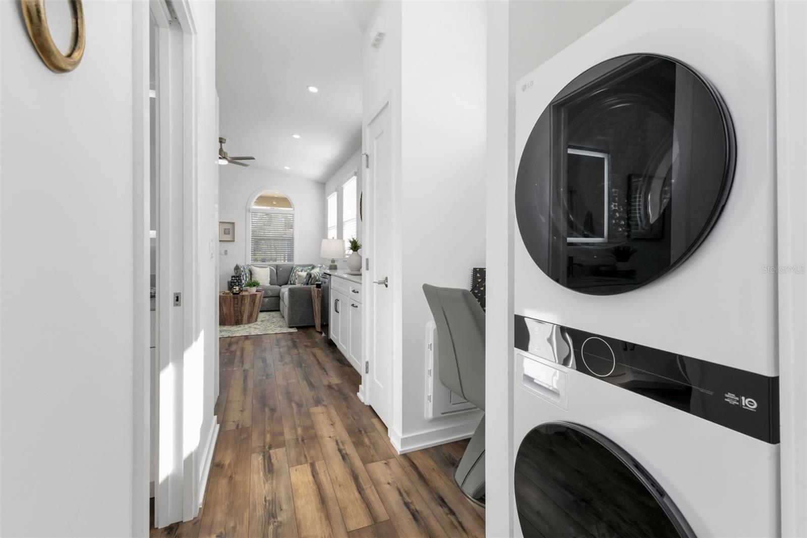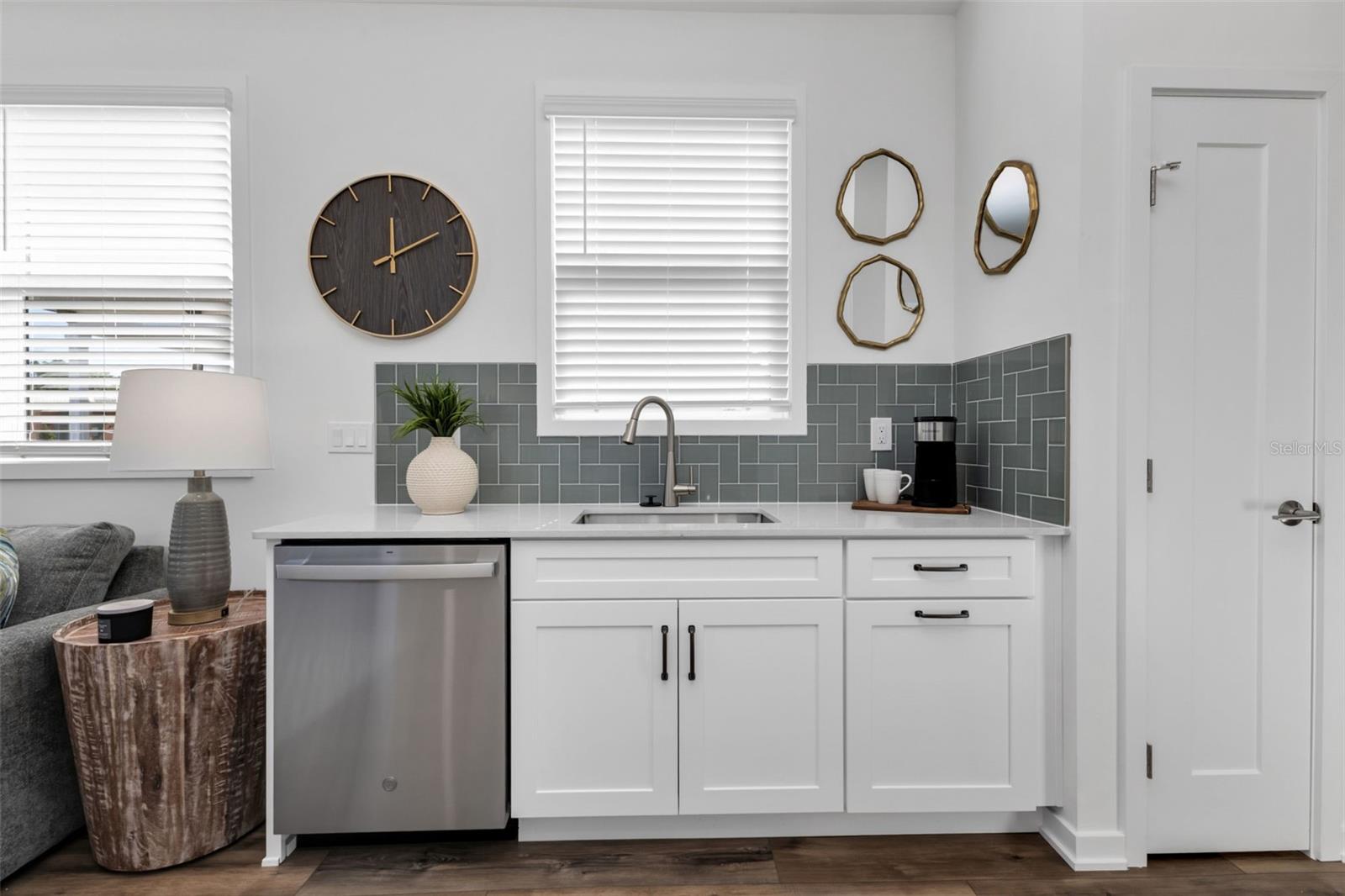 Welcome to this 55+ community - where a lifestyle of distinction and comfort, delivers every cottage thoughtfully designed to meet the needs of modern living. Whether relaxing, entertaining, or working from home at the desk area, these exceptional spaces blend sophistication with functionality. The seamless indoor-outdoor living permits enjoying tropical-inspired dining and entertainment with porches that flow into expansive paver patios featuring unobstructed views ... perfect for gatherings under the sun or stars. Open-plan with kitchen that strikes the ideal balance between indulgence and harmony, boasting sleek soft close cabinetry and energy- efficient appliances. The cozy living room offers the perfect retreat for movie nights or quiet moments , while the en-suite bedroom ensures privacy of owners and guests. Owners suite features dual closets, built-in drawer space and zen-style bathroom, creating a serene retreat within the home. Every detail has been designed with beauty, comfort, and modern sophistication in mind ... because after all, living well is living beautifully. Interior includes baseboards and window casings throughout, faux wood cordless blinds, Cable Jack and CAT6 in Living Room and Bedroom. Kitchen has quartz countertops and shaker panel cabinetry with soft close hinges and drawers. GE appliances, Moen pull down spray kitchen faucet, stainless steel 16 guage under-mount kitchen sink, and full height tiled backsplash. Bathroom has Acrylic shower surround walls and shower pan . Clear glass shower door, quartz countertop, Moen bathroom accessories, TOTO Drake elongated toilet, and white porcelain under-mount sink. Inside laundry includes Washer and Dryer. Construction meets Florida Modular Certification, TRA Green Certified, and Built to Florida Wind Zone 3. Property has Extended Warranty. The gated community has on-site management, a dog park, curbside trash pickup, landscape trimming of trees and shrubs, lawn mowing, edging and blowing, and irrigation. For your enjoyment, there is an outdoor pavilion, saltwater pool and spa, grill station, social spaces with seating and TV's, Fire Pit, Corn-hole, and mail station. There are five different floor plans from which to choose and call home . Don't miss this opportunity to have a new style of life, a "get away" property or a investment for rentals. Storage Unit can be added for additional cost. NOTE: Waterfront Lots $850.00/month. PLEASE NOTE: THERE ARE NO PROPERTY TAXES ON THIS PROPERTY.