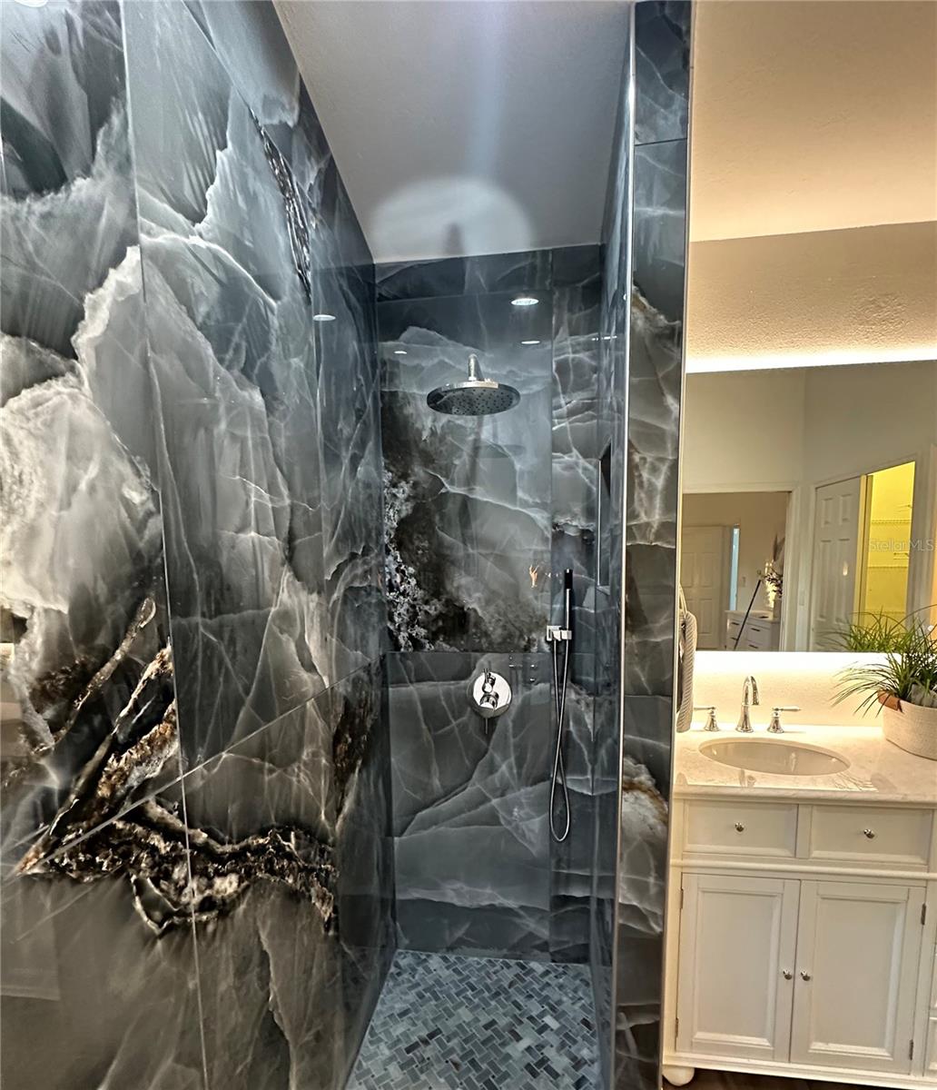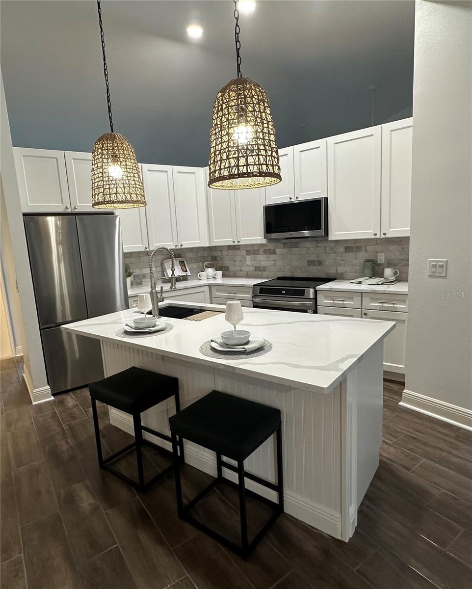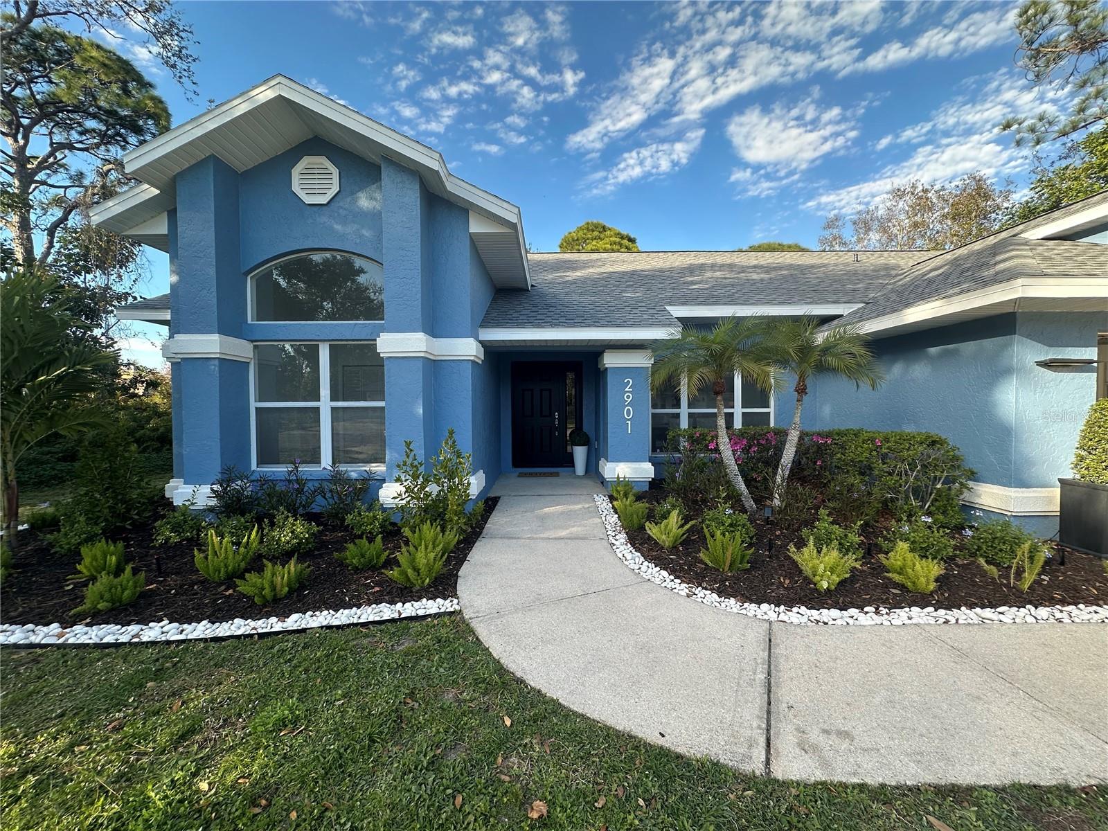 Welcome to 2901 50th Pl E in Bradenton, a fully renovated four-bedroom, two-bath pool home offering modern finishes, architectural impact, and true move-in-ready living. Located in the Candlewood subdivision with nearly 1/3 acre of land. This 2,198 sq ft home features a brand-new kitchen with all-new cabinetry, quartz countertops, and new ceramic tile flooring throughout, creating a clean, cohesive interior. The primary suite includes a dramatic, spa-inspired bathroom highlighted by a floor-to-ceiling large-format accent wall in a deep midnight blue, extending to the vaulted ceiling at its highest point. A soaking tub, new vanity, and modern finishes complete this striking and serene retreat. The second bathroom is fully updated with new shower tile, a new vanity, and updated fixtures.Major improvements include a new roof, all-new lighting fixtures throughout, a brand-new front door, and fresh interior and exterior paint. A two-car garage provides convenient storage and parking. A/C is 2021. Outdoors, enjoy a fully refurbished pool with a newly painted deck, all enclosed within a screened pool cage -- ideal for year-round Florida living. New landscaping and a new mailbox enhance curb appeal and complete the property.Designed for comfort, entertaining, and peace of mind, this turnkey home offers style, functionality, and immediate livability -- simply unpack and enjoy.