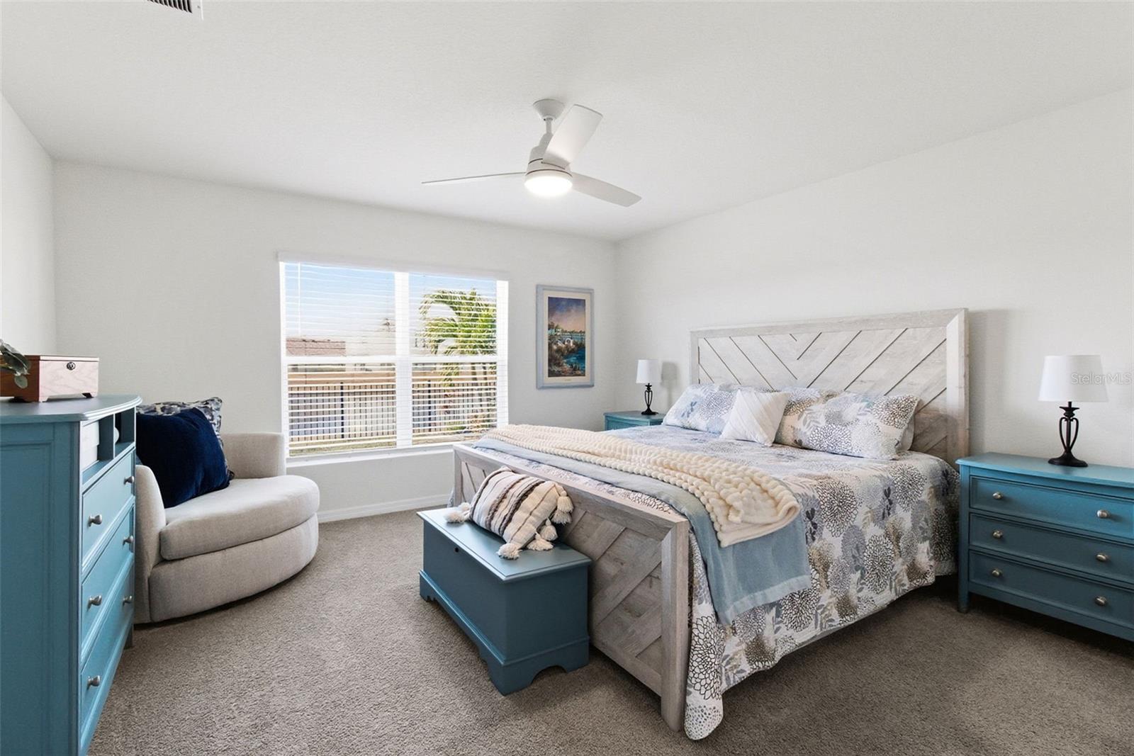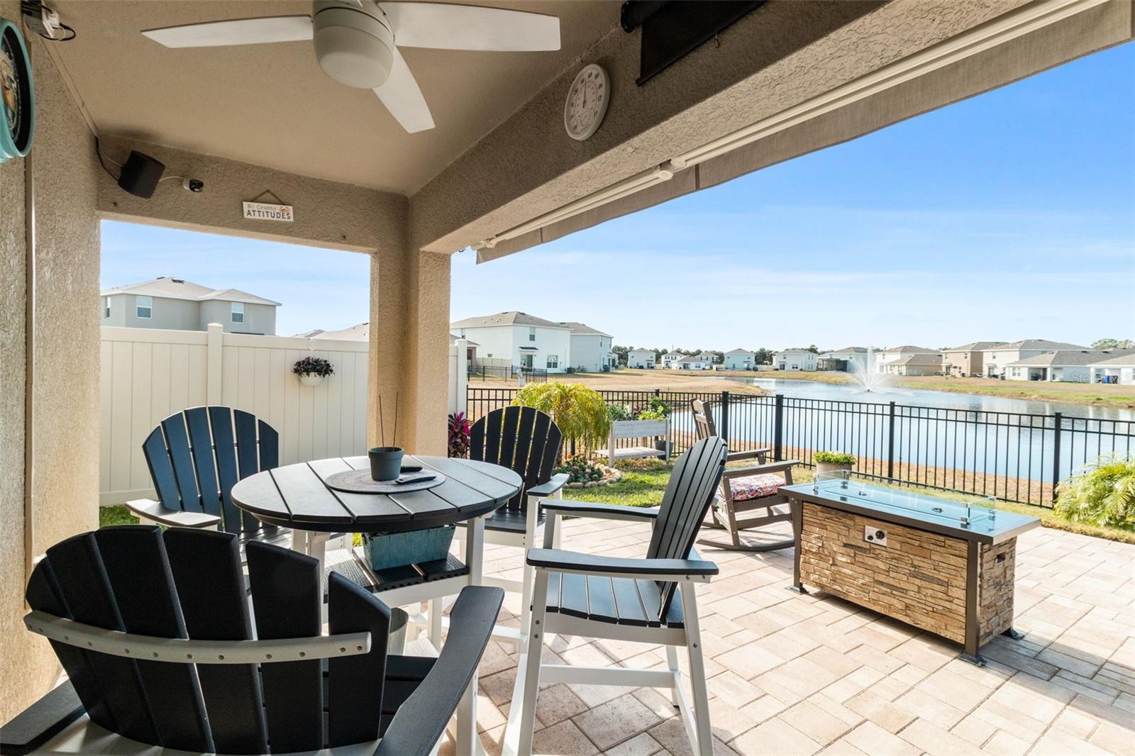 Welcome to this beautifully landscaped and upgraded home in the Evergreen community of Bradenton, where outdoor living and peaceful water views take center stage. From the fully fenced backyard to the tranquil pond setting, this home is designed to enjoy Florida's relaxed lifestyle both inside and out. Inside, you'll find a well-appointed split floor plan with a spacious living room that flows seamlessly into the kitchen and dining areas. The kitchen features granite countertops, stainless steel appliances, added cabinetry, and opens directly to a formal dining area, creating an ideal setup for both everyday living and entertaining. Additional interior upgrades include stylish paint, tasteful shiplap accents, all-new ceiling fans throughout, a whole house TV antenna for local channels, and a whole-house water purification system. The home is smart-home equipped and includes security lights and cameras. The primary suite offers an en-suite bathroom and a walk-in closet, while two additional bedrooms share a well-designed bathroom, providing comfort and flexibility for family or guests. Stepping back outside, the beautifully landscaped and fully fenced backyard is the true highlight of the property. Designed for entertaining and everyday enjoyment, it features two separate paver patios, pond-fed irrigation, and serene pond, wildlife, and sunset views. Additional upgrades include a SunSetter electric awning, outdoor TV and speakers, and extra paver areas ideal for grilling or added storage. The home also features a 2-car garage with epoxy flooring. Evergreen offers a low HOA community with a pool and community center, and is ideally situated to a variety of public and charter schools, nearby restaurants, golf courses, and is just a short drive to Florida's beautiful Gulf Coast beaches.