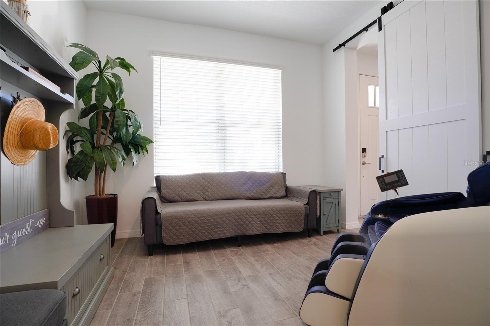 Welcome to this stunning 4-bedroom, 3.5-bath home located in the sought-after Eaves Bend at Artisan Lakes community. Designed for comfort and versatility, the home features wood-look tile throughout the main living areas, an open-concept kitchen with quartz countertops and stainless steel appliances, and inviting spaces ideal for both entertaining and everyday living. A dedicated office provides the perfect work-from-home setup, while a spacious loft offers flexibility for a media room, game room, or additional living area. The private primary suite is a true retreat, featuring a luxurious en-suite bathroom with a soaking bathtub and a separate standing shower. Outdoor living is enhanced by a charming front porch and a fully equipped outdoor kitchen, perfect for hosting gatherings. Additional highlights include an epoxy-finished garage, no backyard neighbors for added privacy, and a desirable location on a quiet cul-de-sac road, all within the beautifully maintained Artisan Lakes community.