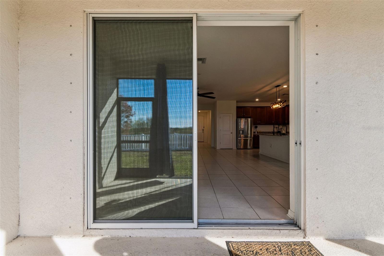 Exterior: Hurricane Shutters, Rain Gutters, Sidewalk, Sliding Doors