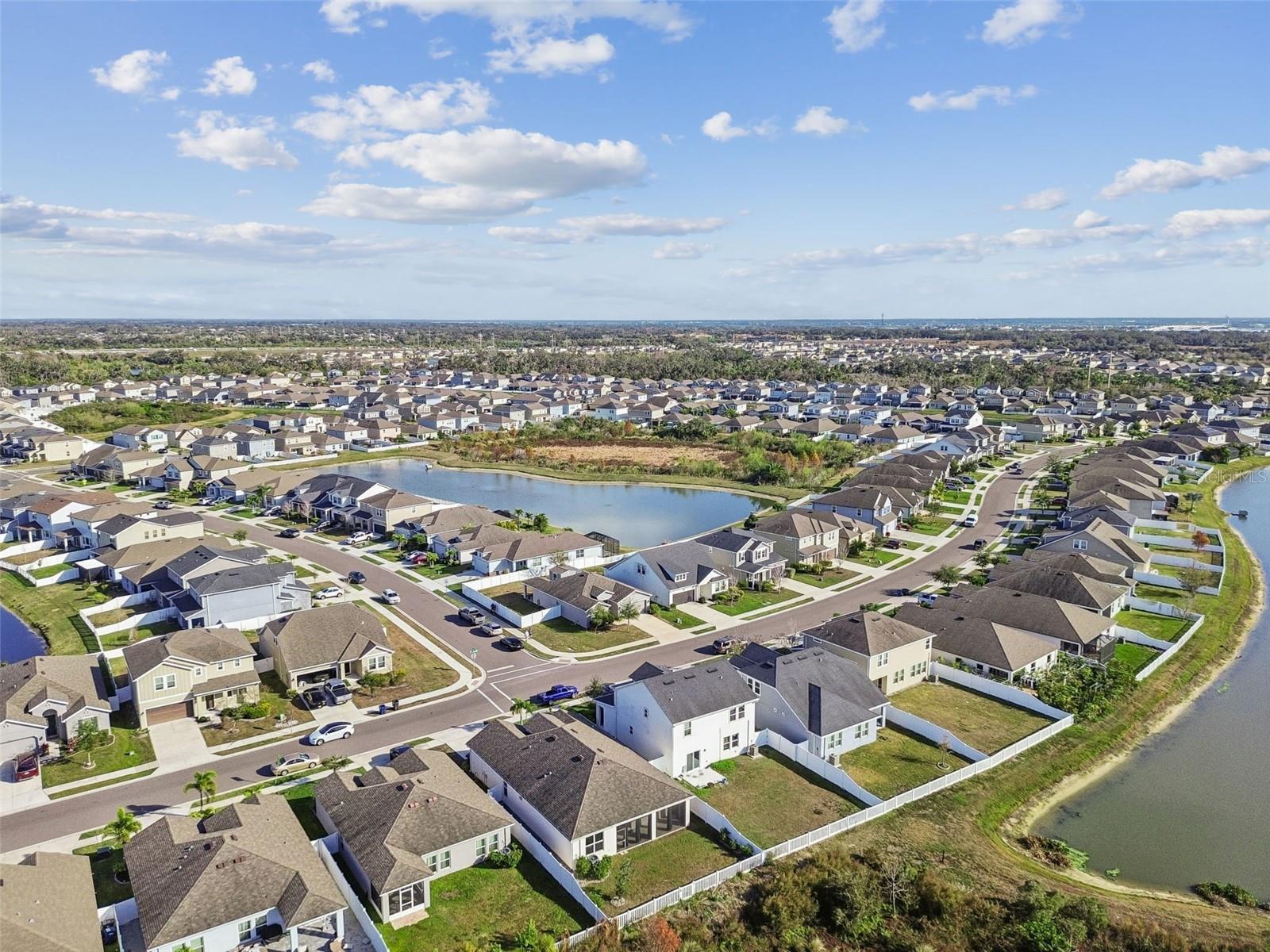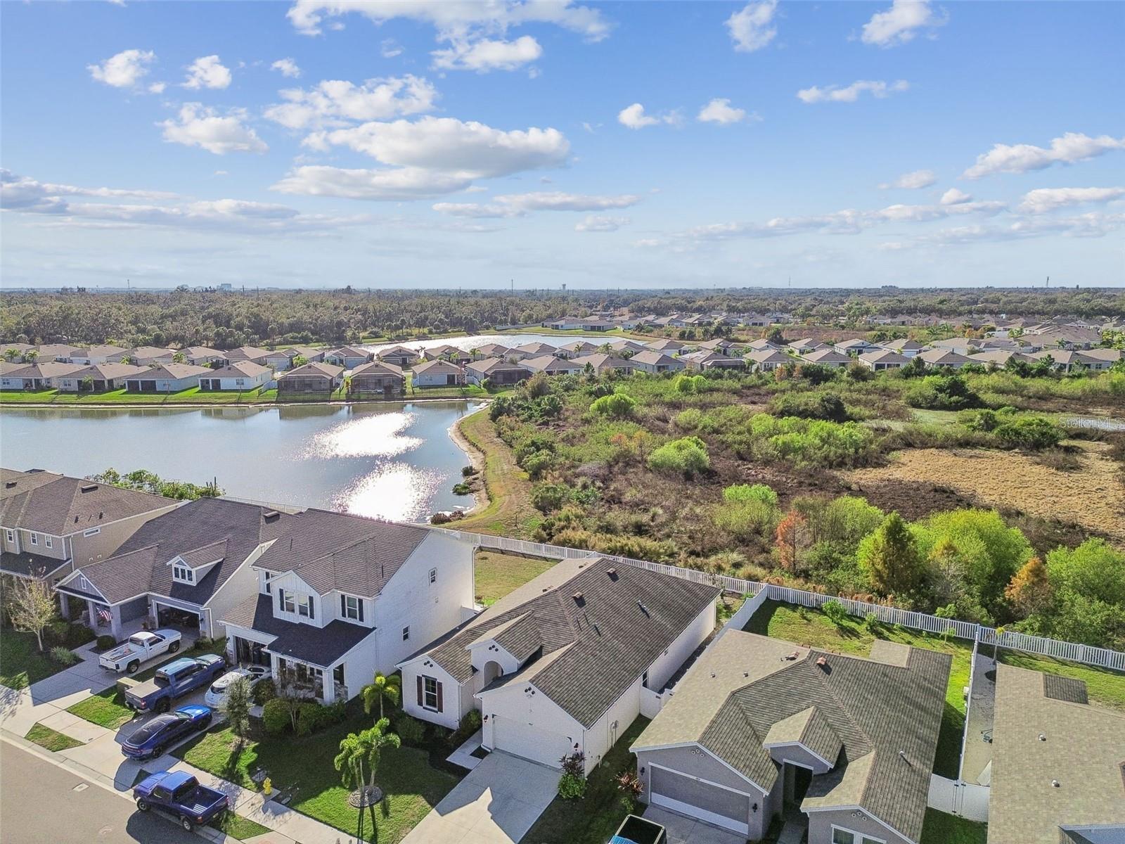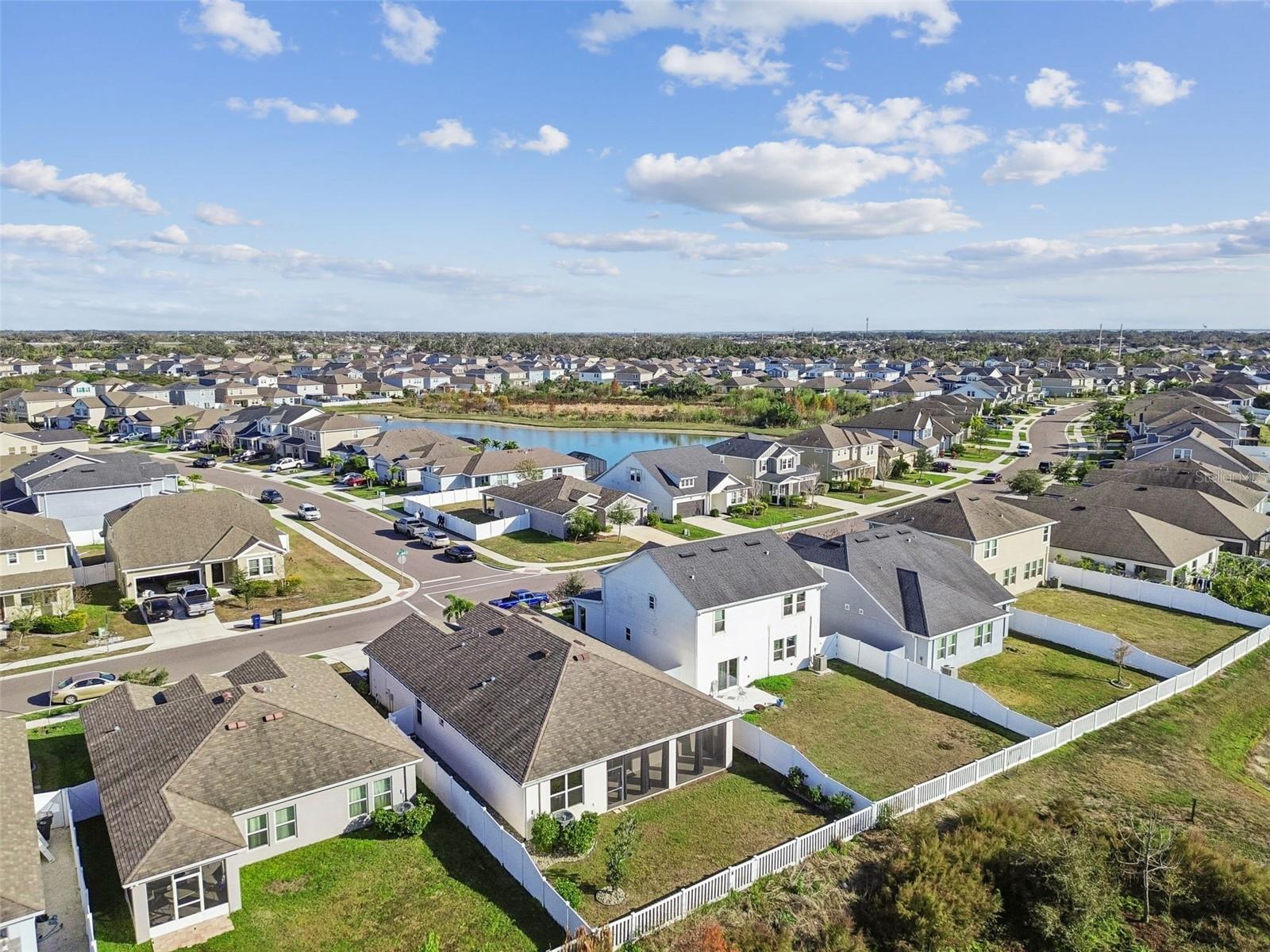 One or more photo(s) has been virtually staged. Welcome to 4807 Windy Hammock, a beautifully maintained 2020 inland-built home offering 2,004 square feet of thoughtfully designed living space with peaceful pond views. This 4-bedroom, 2-bath residence with a 2-car garage features neutral tile flooring throughout the main living areas, kitchen, bathrooms, and laundry room, with two bedrooms offering luxury vinyl plank flooring and the remaining two comfortably carpeted. The spacious primary suite is a true retreat, complete with two walk-in closets and an en-suite bathroom featuring dual sinks, a separate water closet, and a large walk-in shower. The kitchen is ideal for both everyday living and entertaining, offering abundant cabinetry, a very large center island, stainless steel appliances, and a pantry. Enjoy Florida living year-round on the large screened lanai, overlooking the fully fenced backyard and tranquil pond, perfect for relaxing or hosting guests. Additional features include a whole-home water filtration system, adding extra comfort and value. Conveniently located near shopping, dining, and major roadways and just a 20 minute drive over the scenic skyway bridge to St Pete Beach and only 30 minutes to Sarasota Siesta Keys Beach. This home blends space, functionality, and serene Florida living.